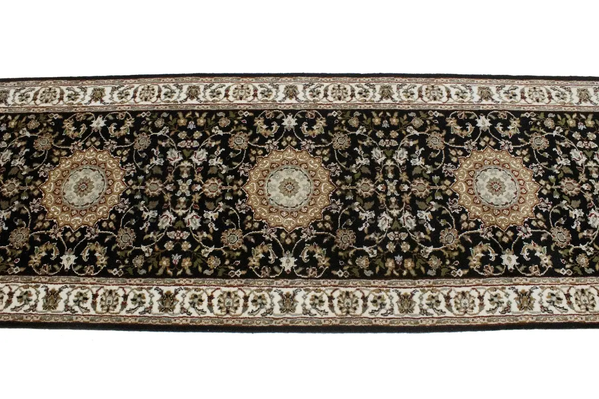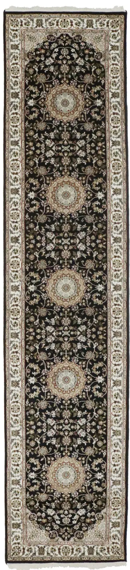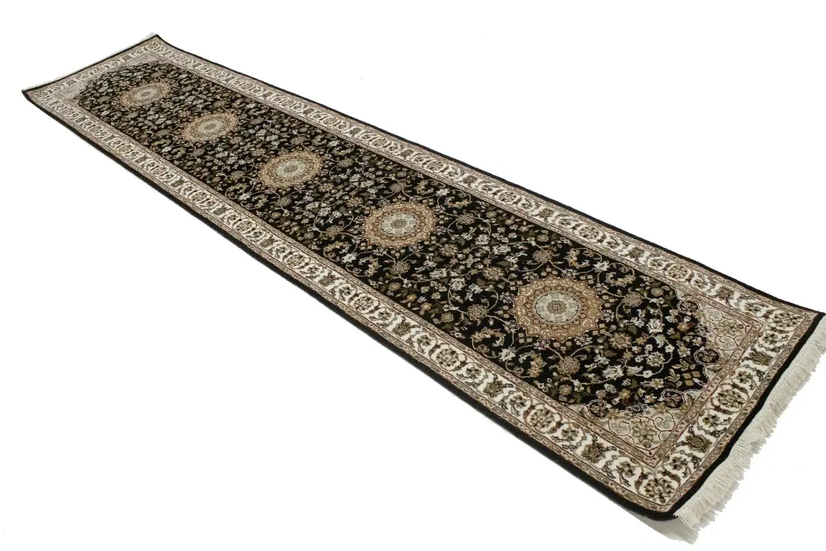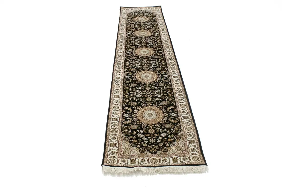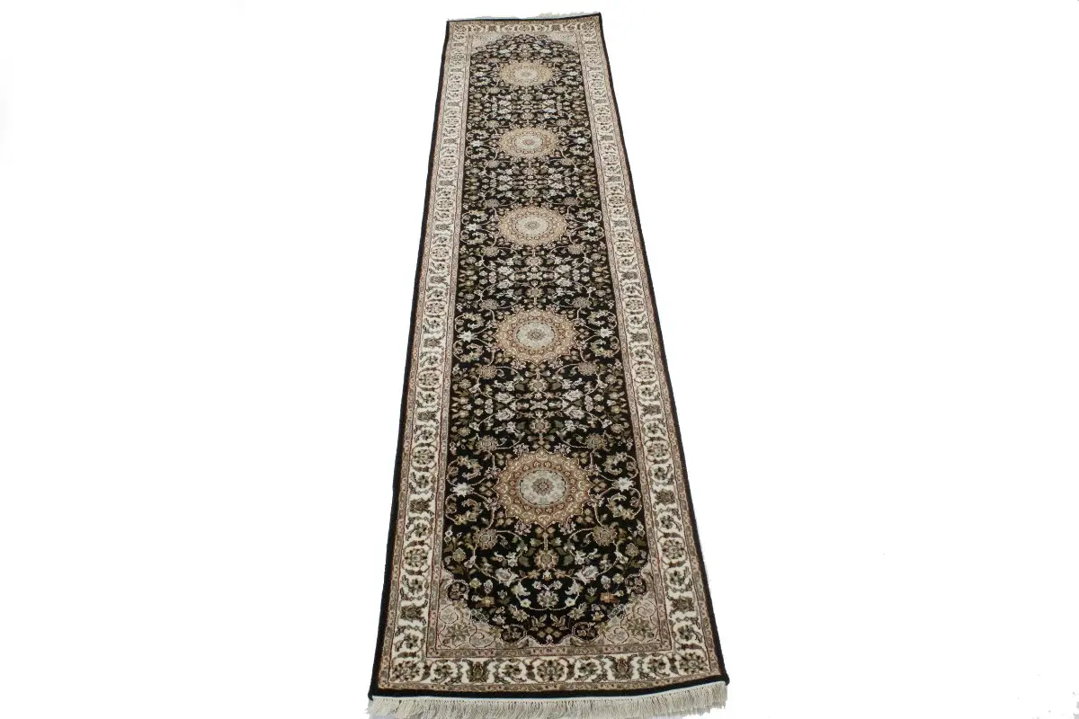 Black Floral 3X12 Indo-Nain Oriental Runner Rug