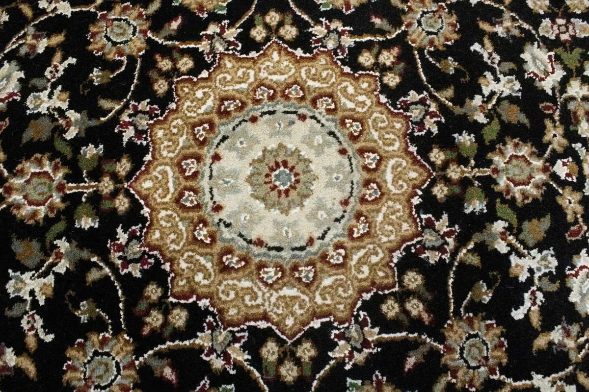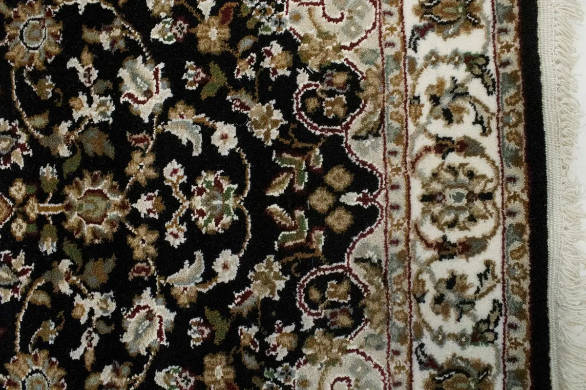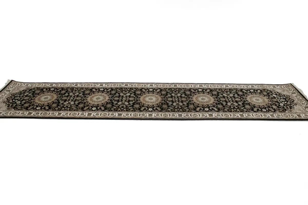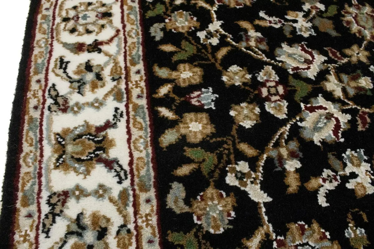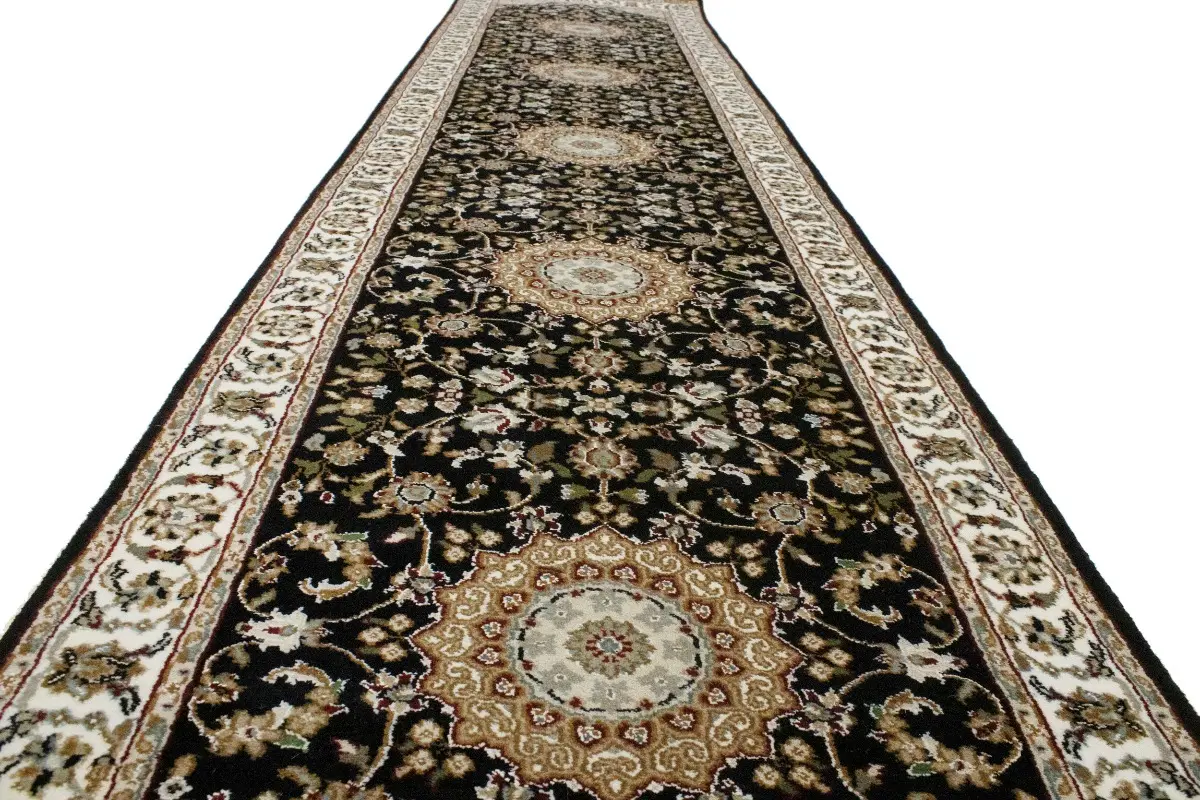 Black Floral 3X12 Indo-Nain Oriental Runner Rug