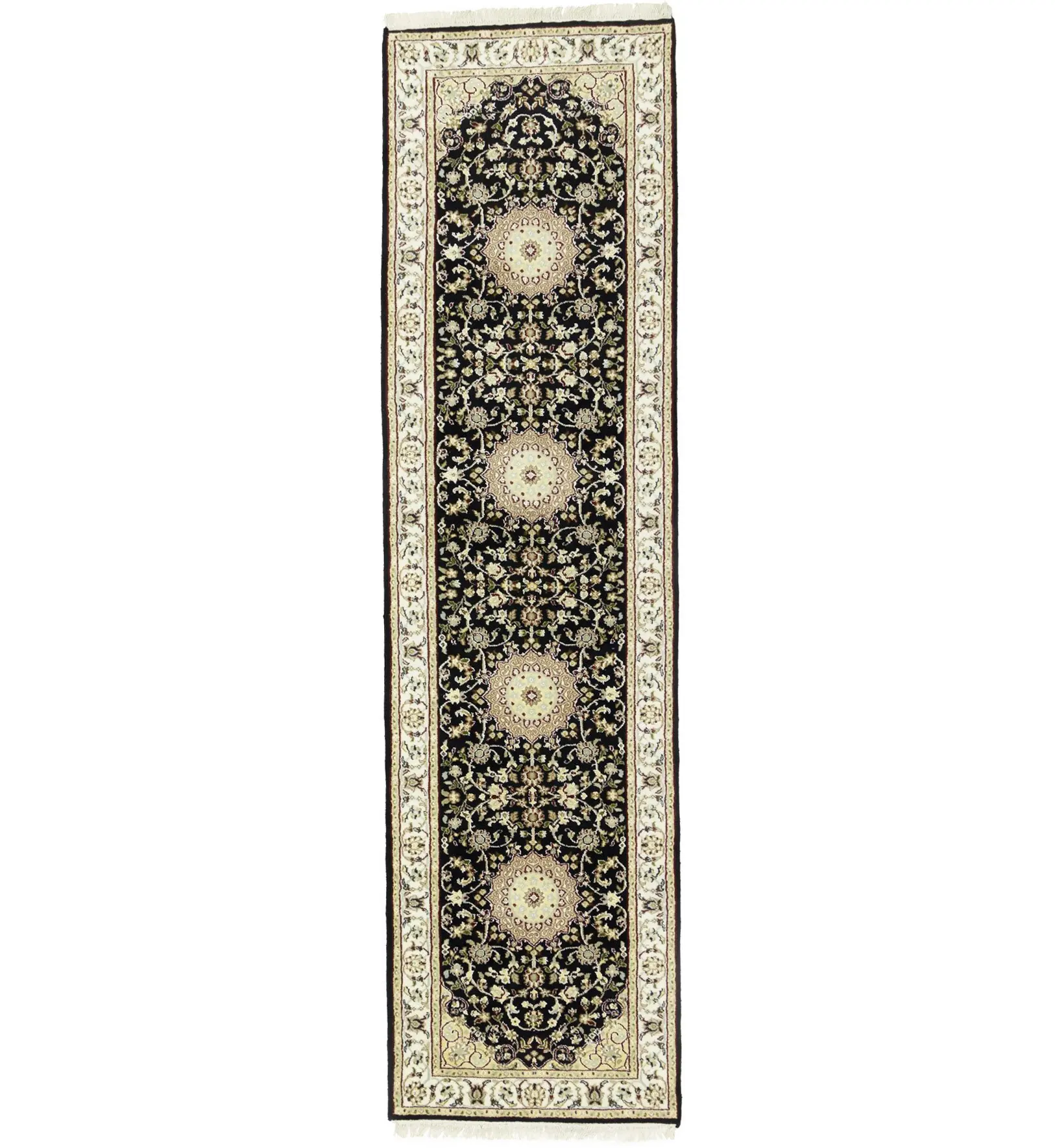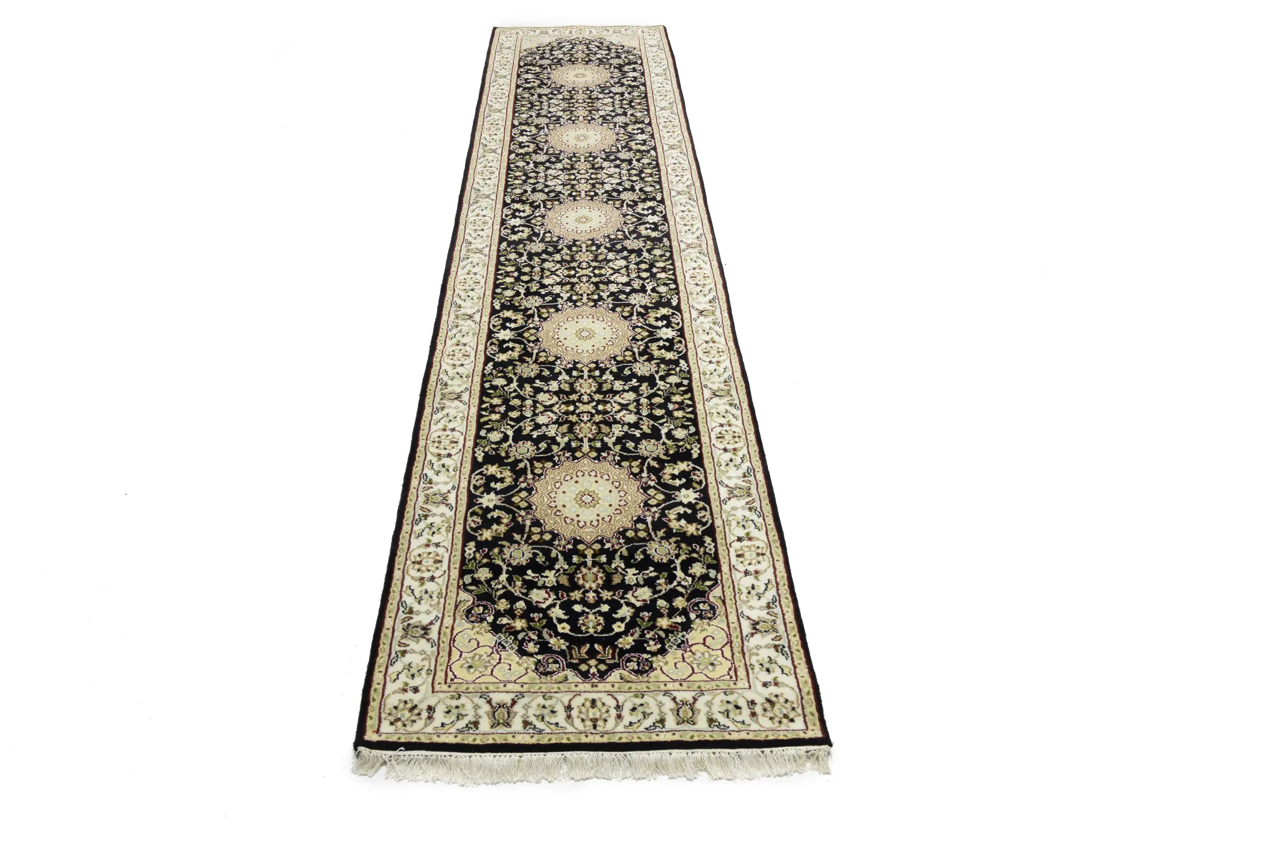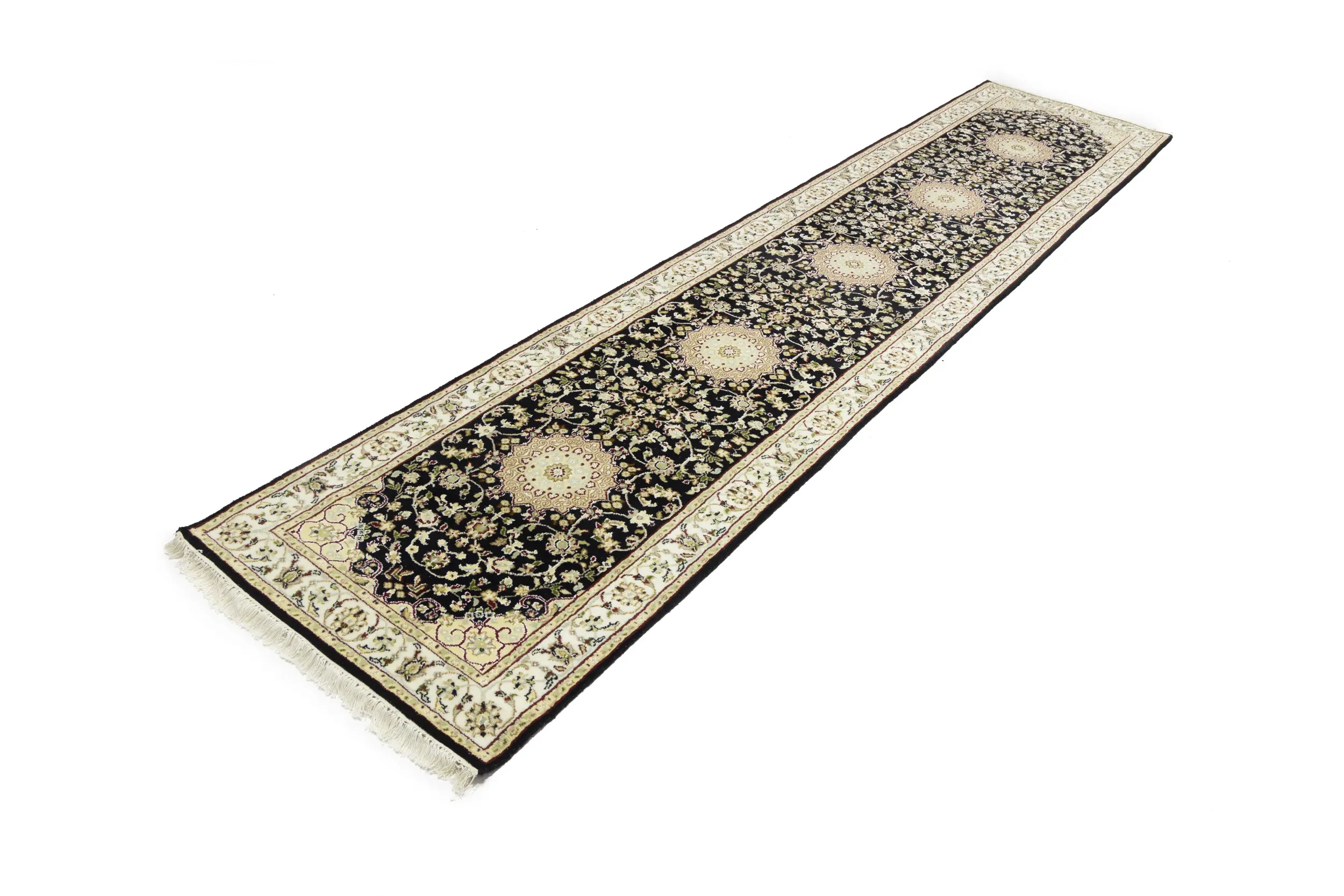 Black Floral 3X12 Indo-Nain Oriental Runner Rug