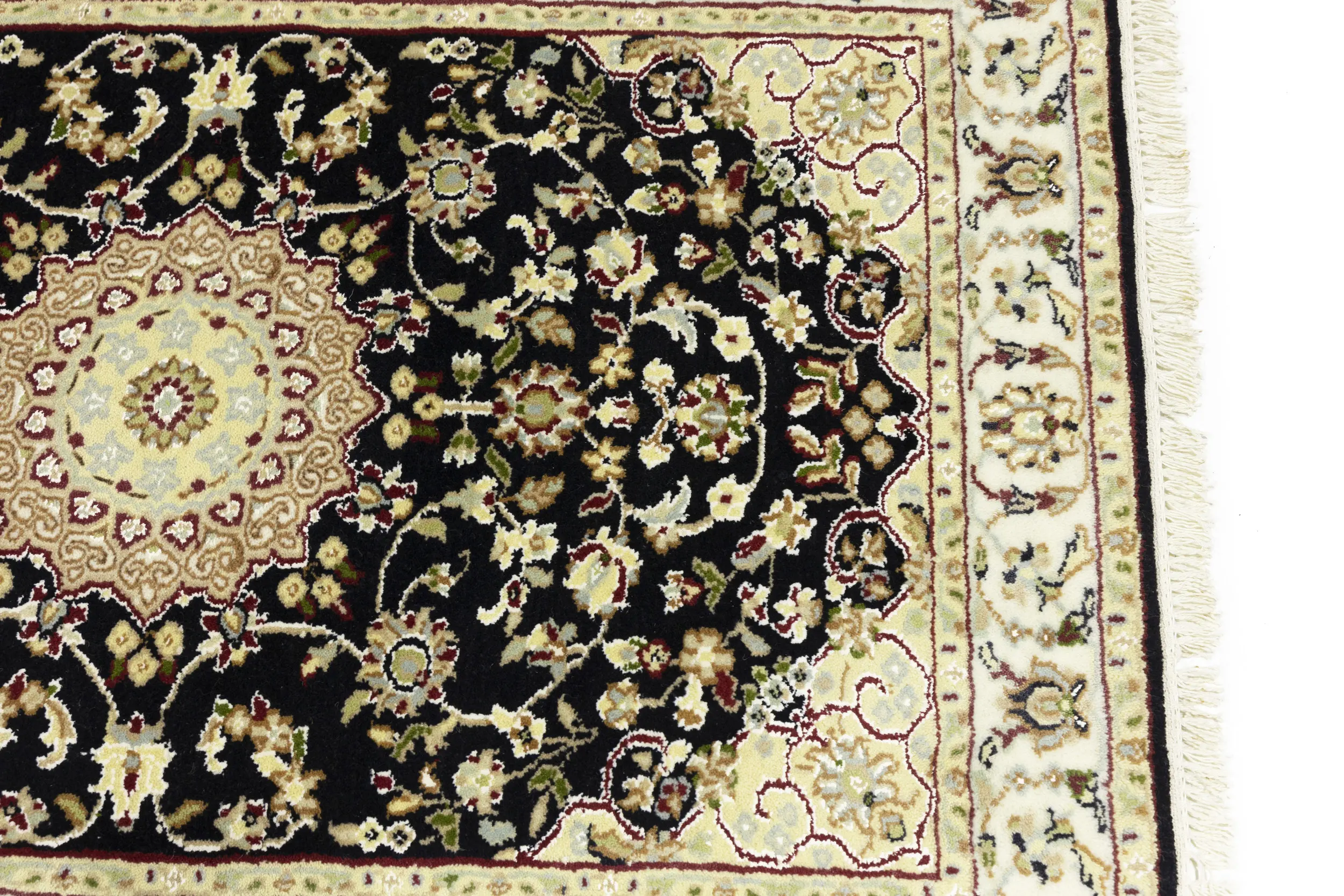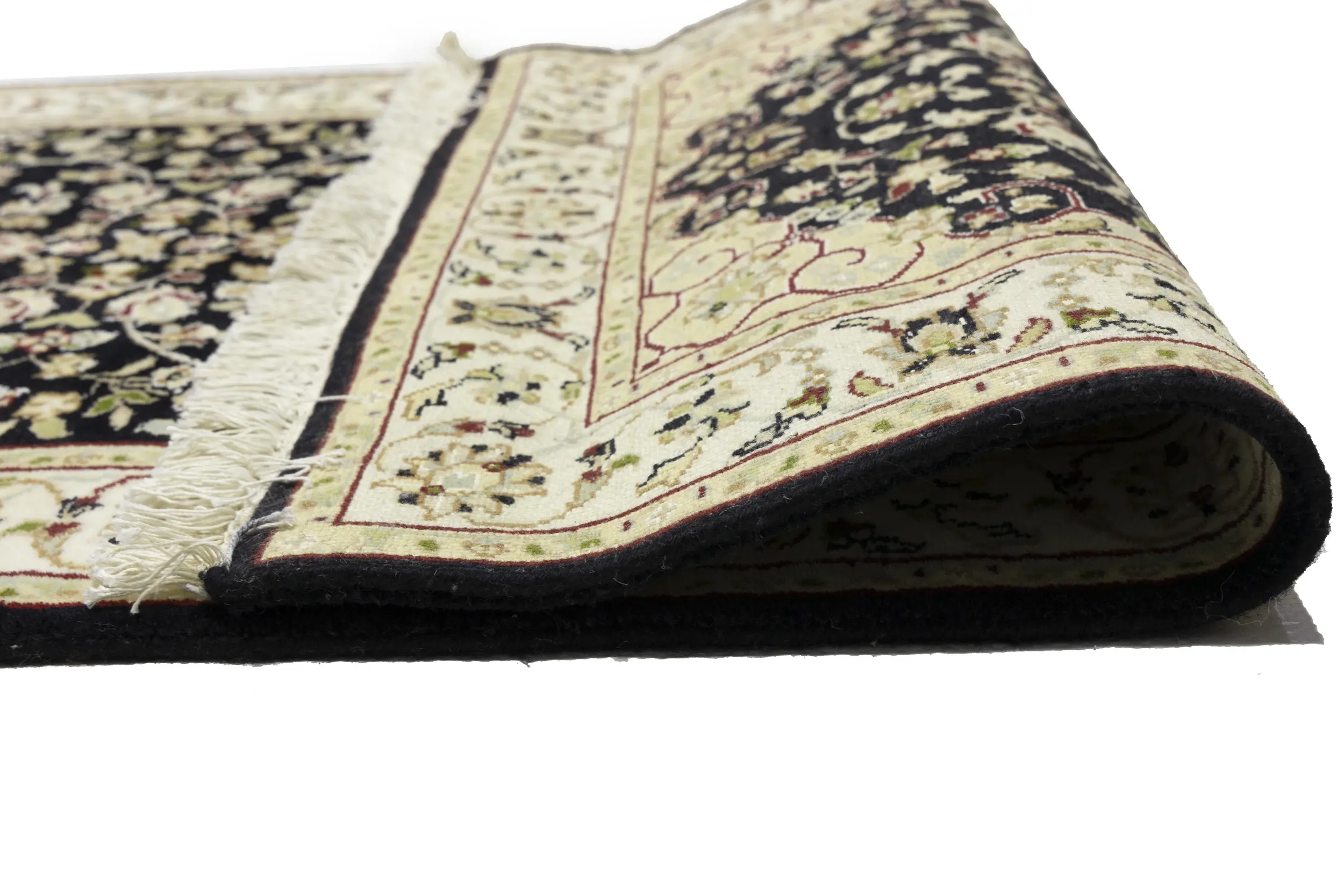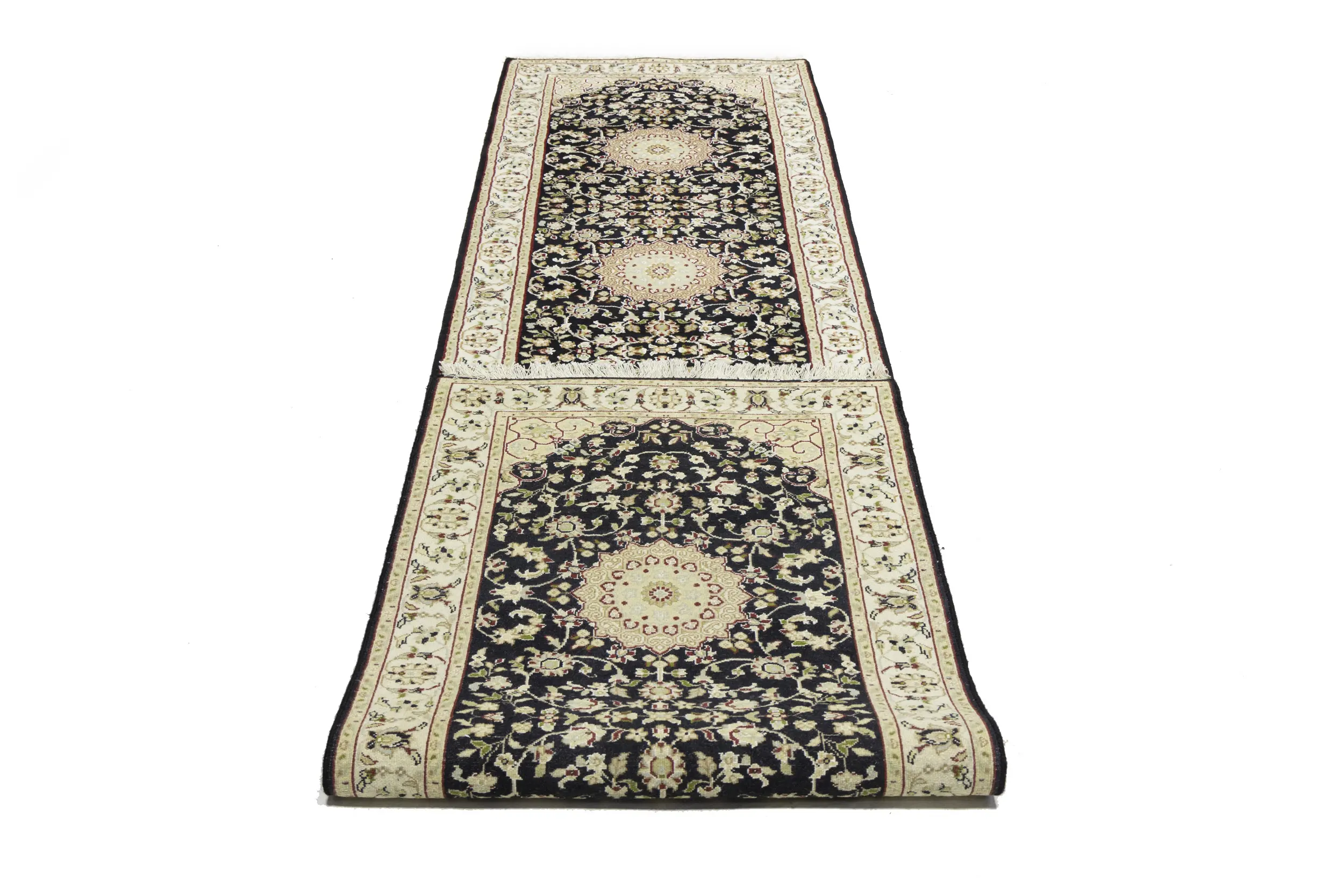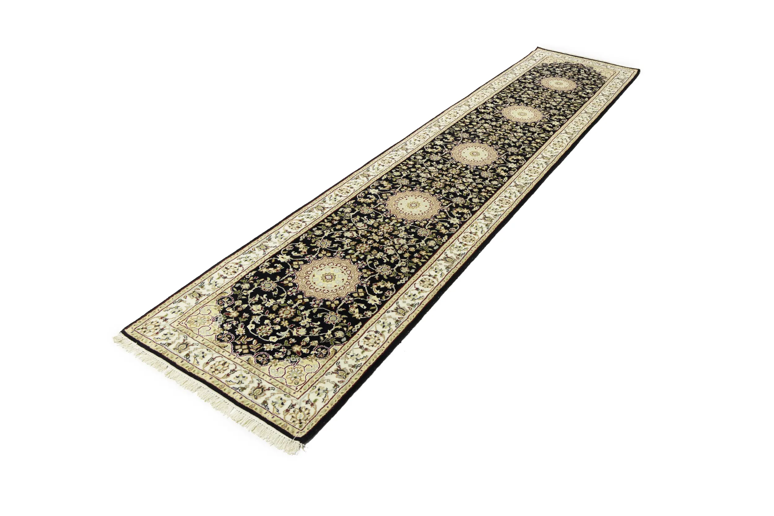 Black Floral 3X12 Indo-Nain Oriental Runner Rug