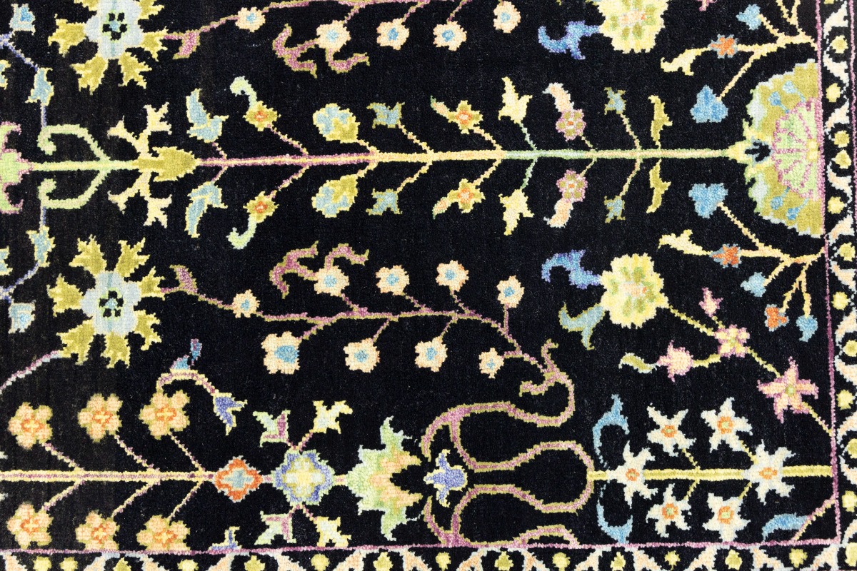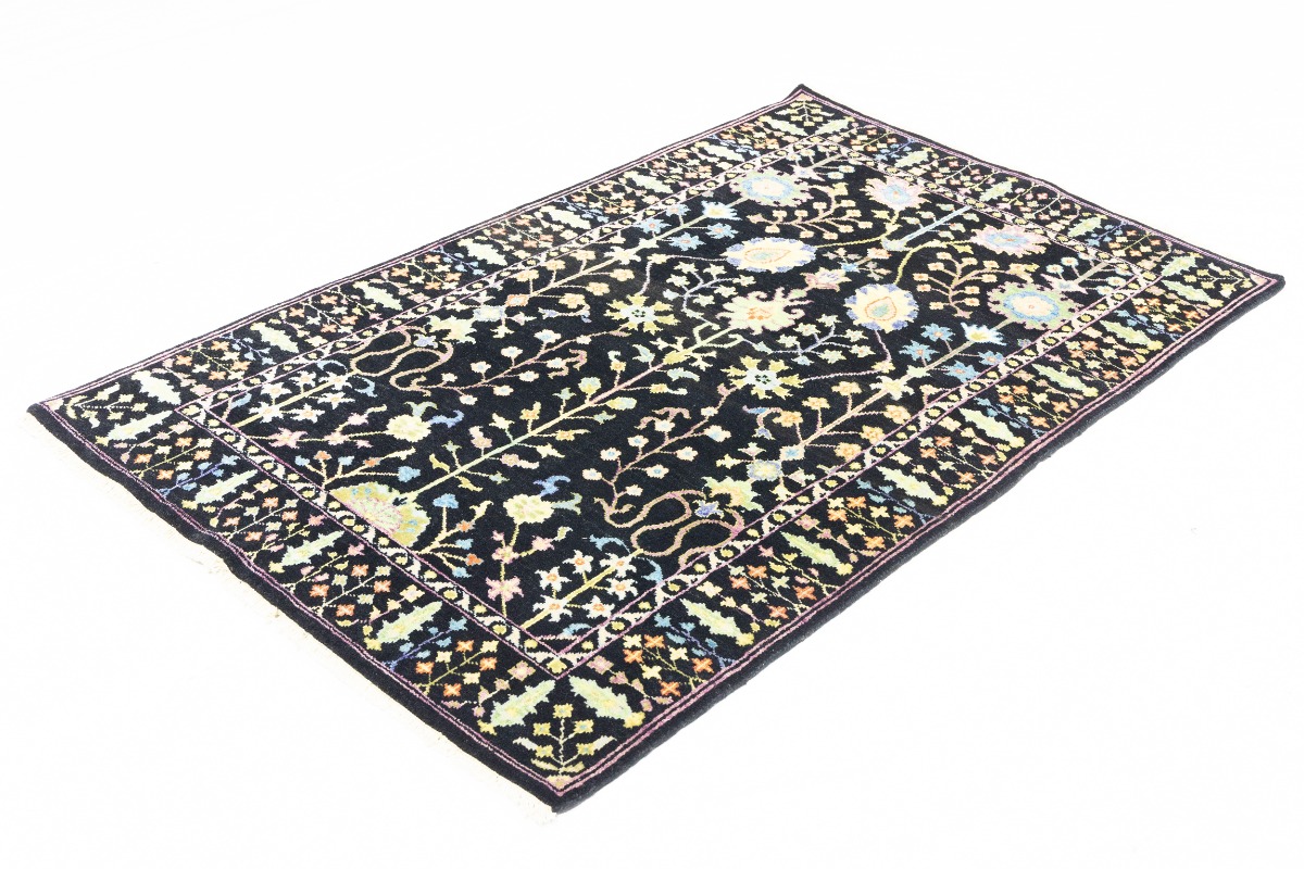 Hand Knotted 4X6 black oriental rug made with vegetable dyes (fine wool pile and cotton foundation), exceptional knot count, and appealing ancient designs. This Oriental rug never will go out of style and would be among your most valuable treasures.