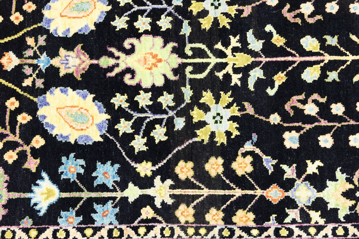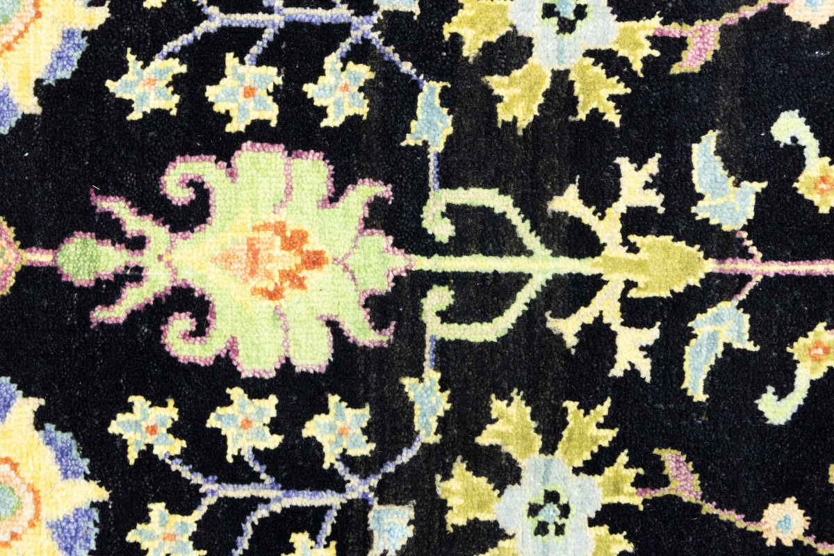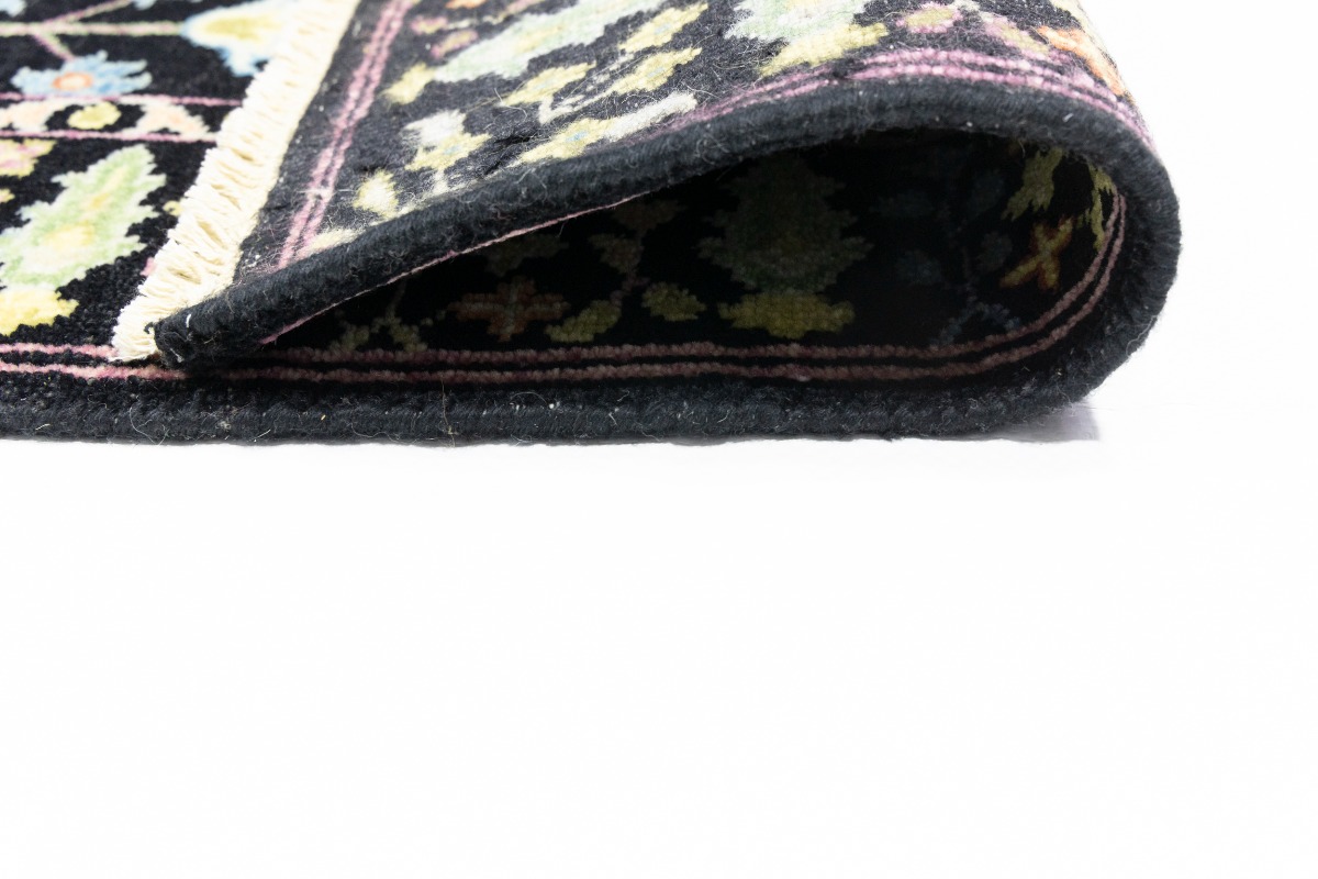 This original 4X6 black new Oriental rug was made by the hands of talented weavers influenced by a variety of gorgeous symmetrical artistic designs, to recreate the aged look of the unique piece with a richness of color and very balanced background field. What set this vintage style Oriental area rug from the others are the material and dye used (wool pile and cotton foundation), knot count, antique designs, fantastic grades, and its regional historical connection: it has deep roots, from the story of the people who produced it to the meaning of the symbols and colors displayed across its canvas that have been praised for centuries. This Indian home décor carpet will be completely cozy and inviting that never will go out of style! Also, this Oriental rug would be among your most valuable treasures, it is a great investment that accrues value over time, and it will last a lifetime because was woven with high-quality, all-natural wool. Eco-friendly, opulent yet affordable; this rug will give you an extra pop of character to help define your home environment with sophistication and warmth that will capture the eyes and attention of your audience (homeowners, designers, decorators, family and friends). OT-9017