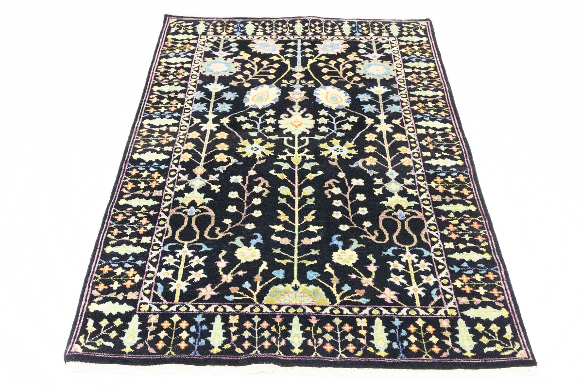Black Floral 4X6 Osh Chobi Oriental Rug
