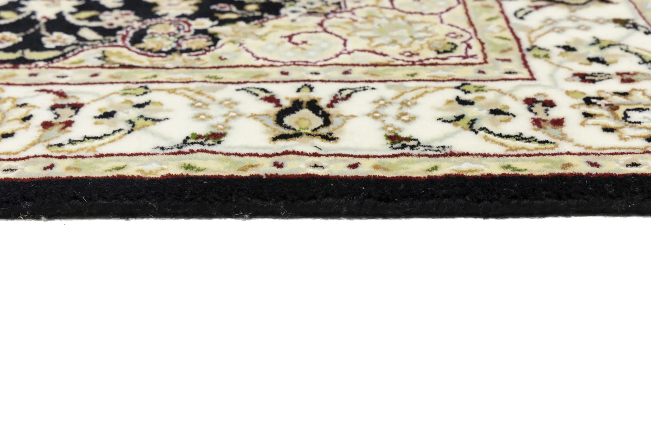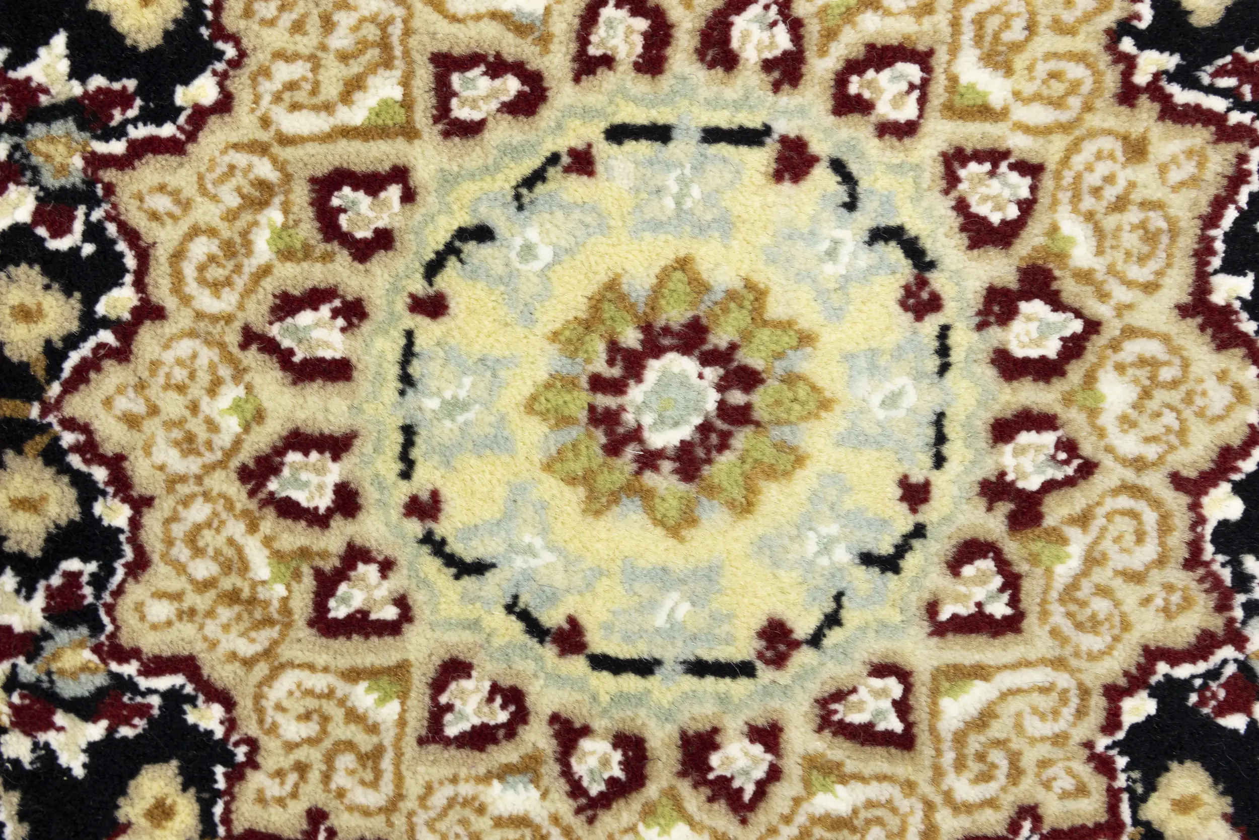 Handmade 5X5 black Oriental rug made with vegetable dyes (fine wool pile and cotton foundation), exceptional knot count, and appealing ancient designs. This Oriental rug never will go out of style and would be among your most valuable treasures.