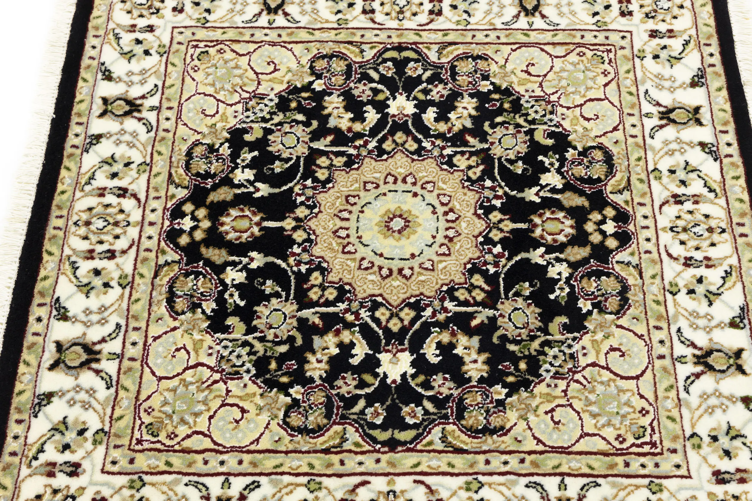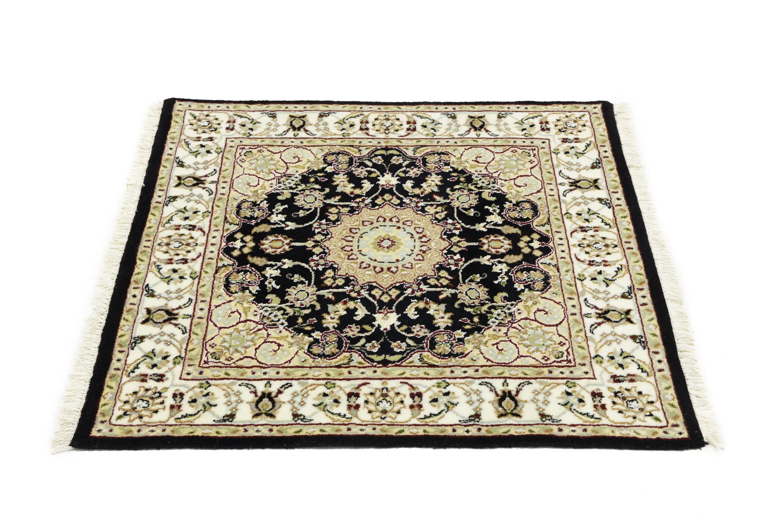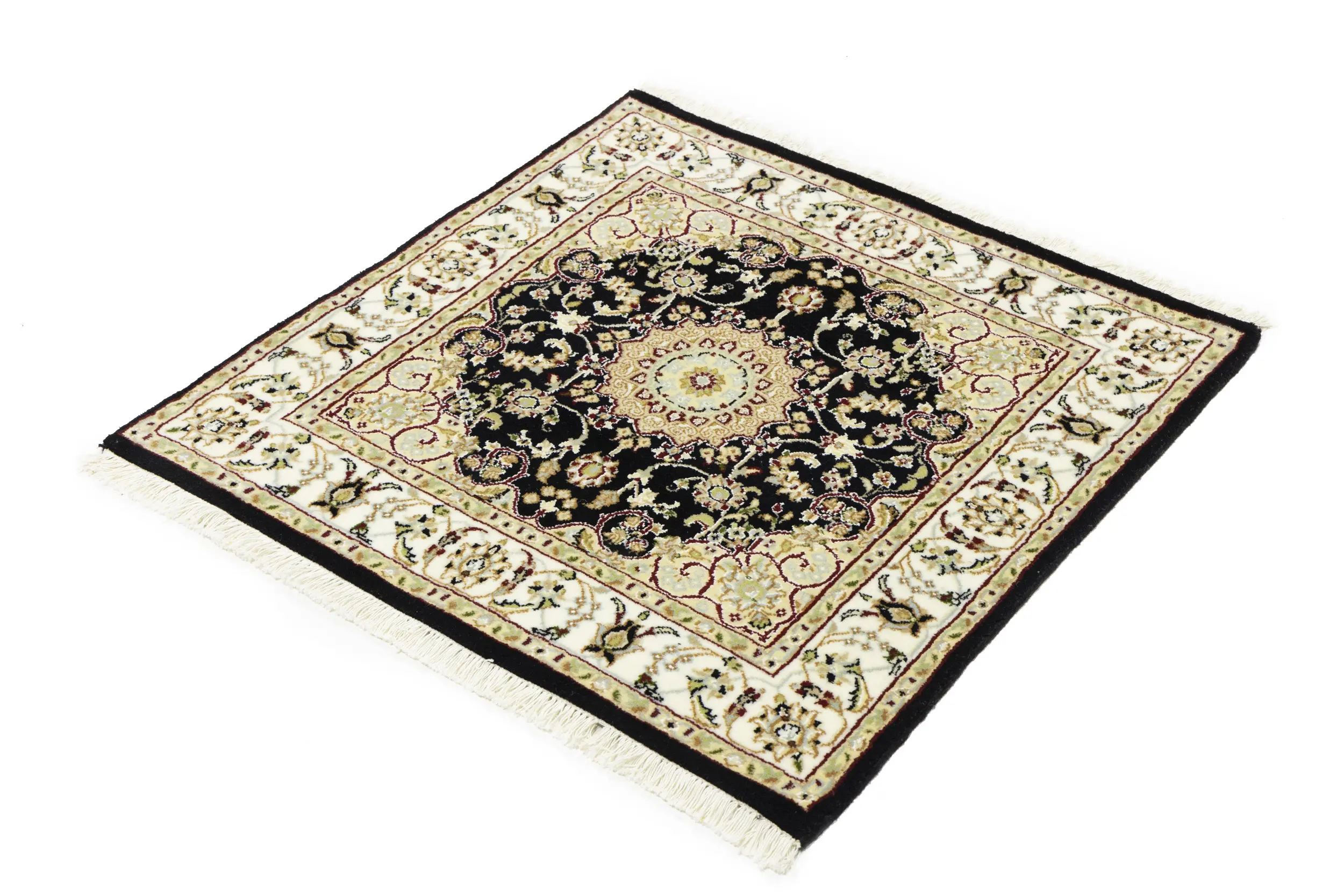 Black Floral 5X5 Indo-Nain Oriental Square Rug