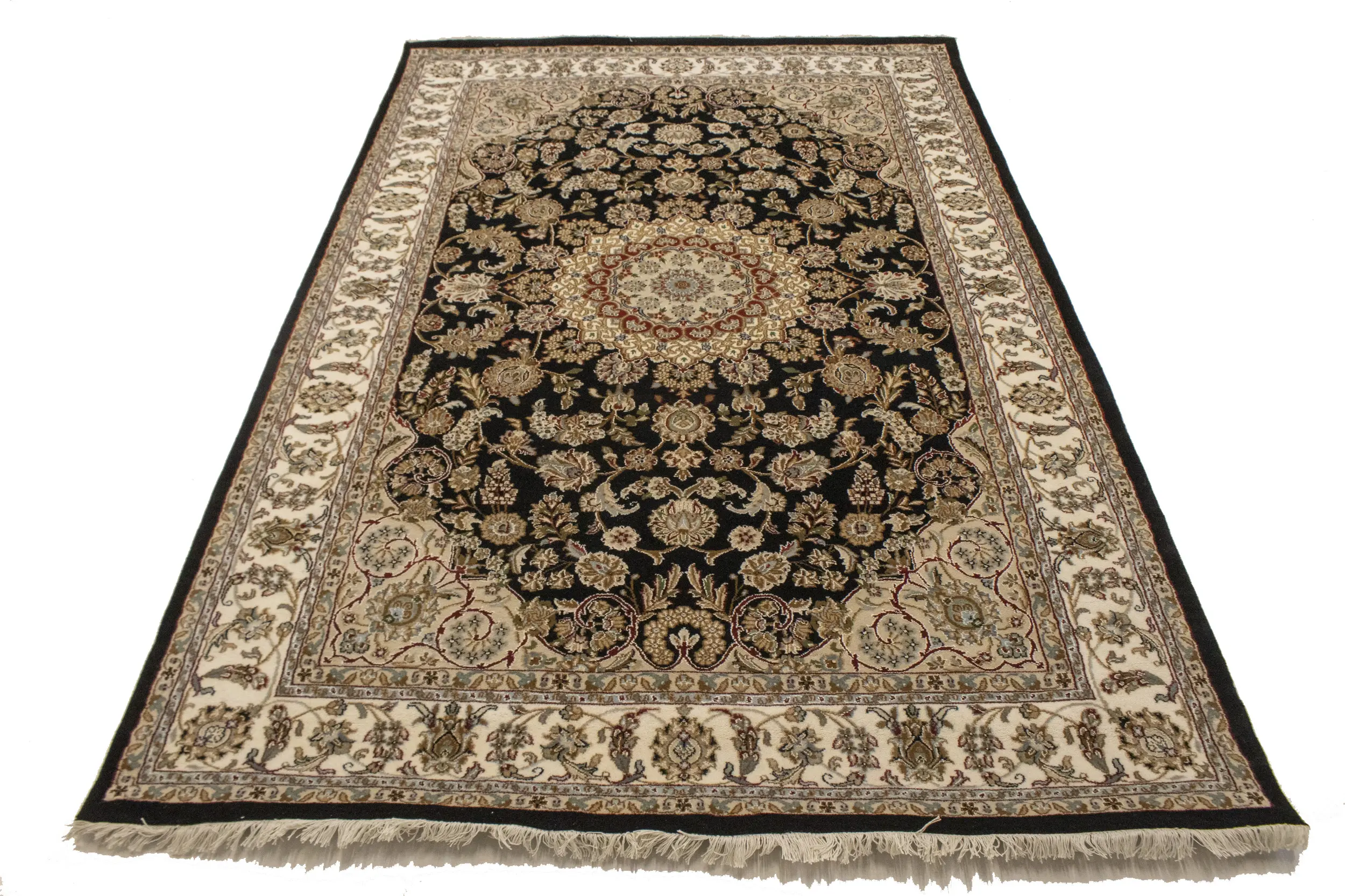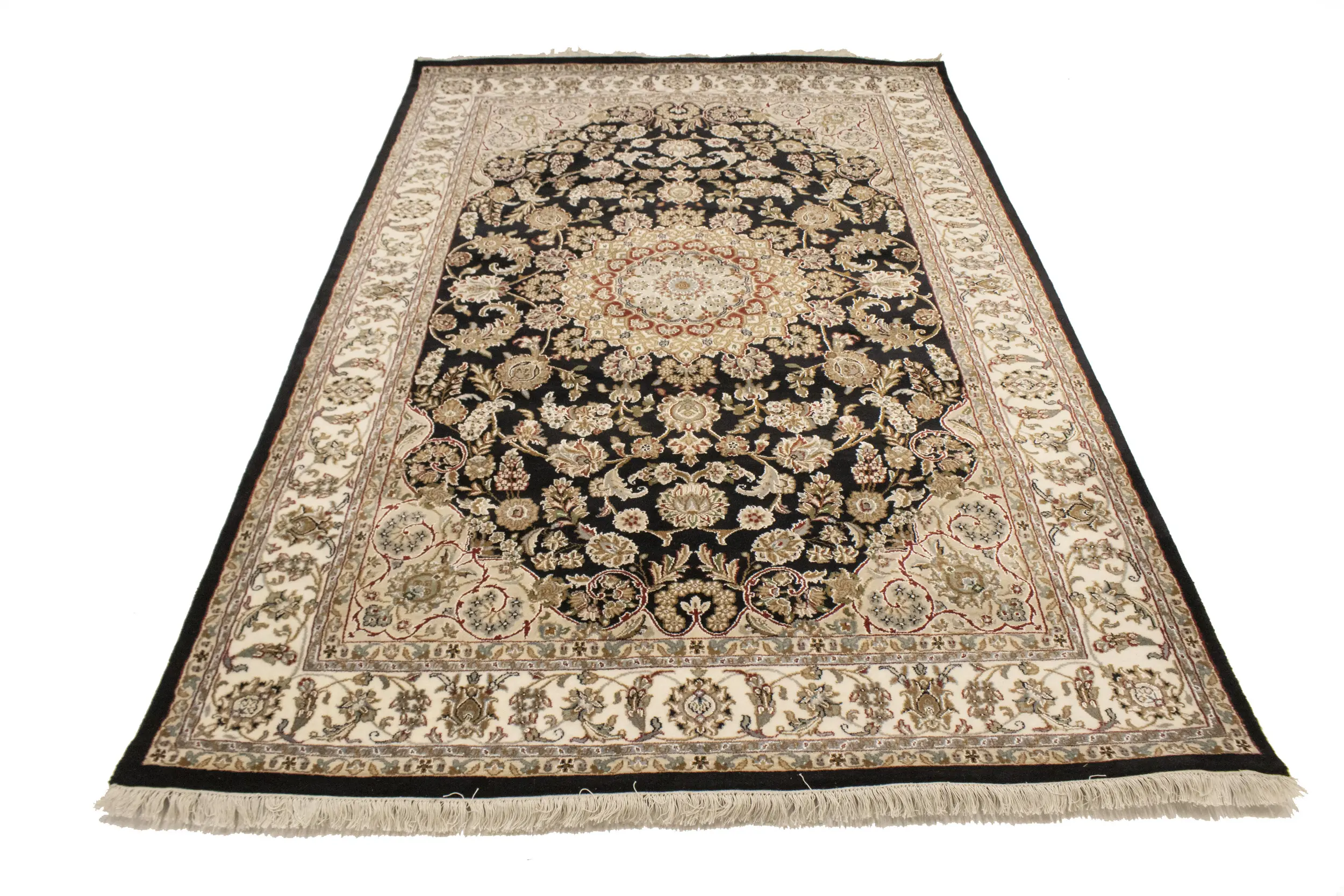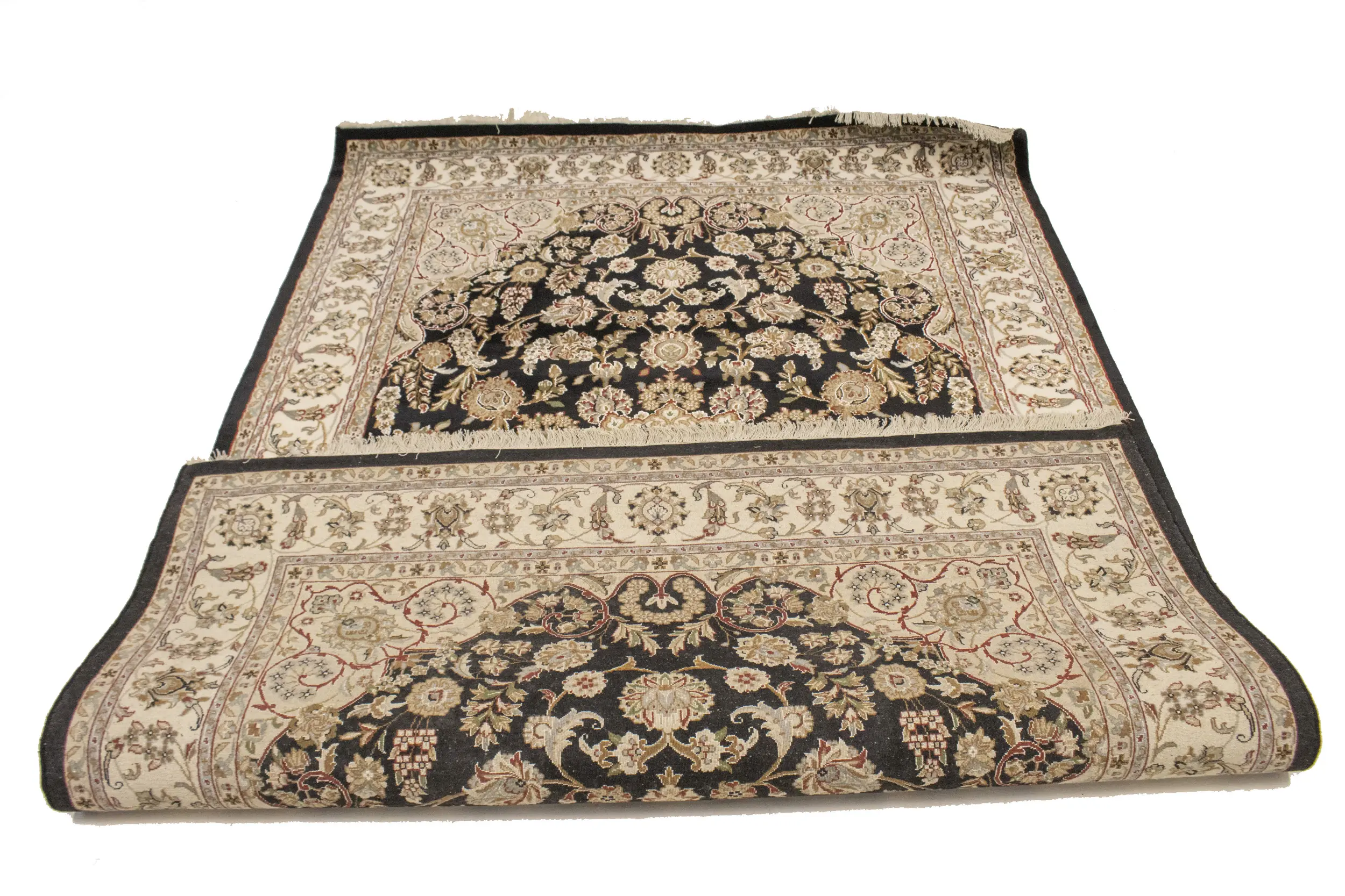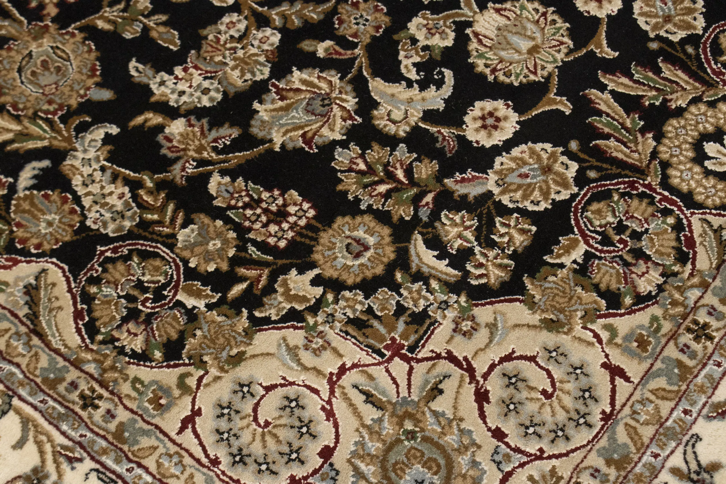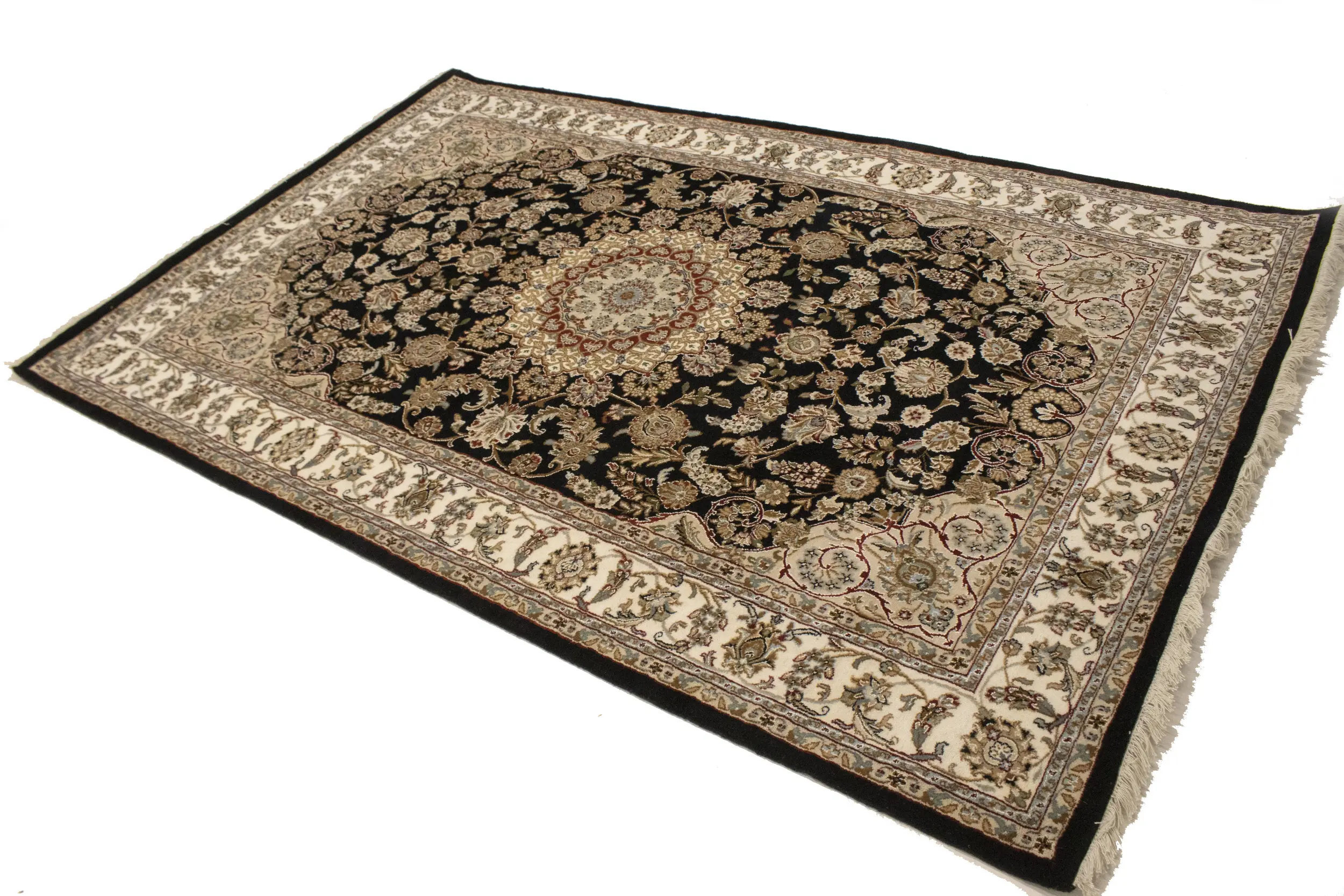 Black Floral 5X8 Indo-Nain Oriental Rug