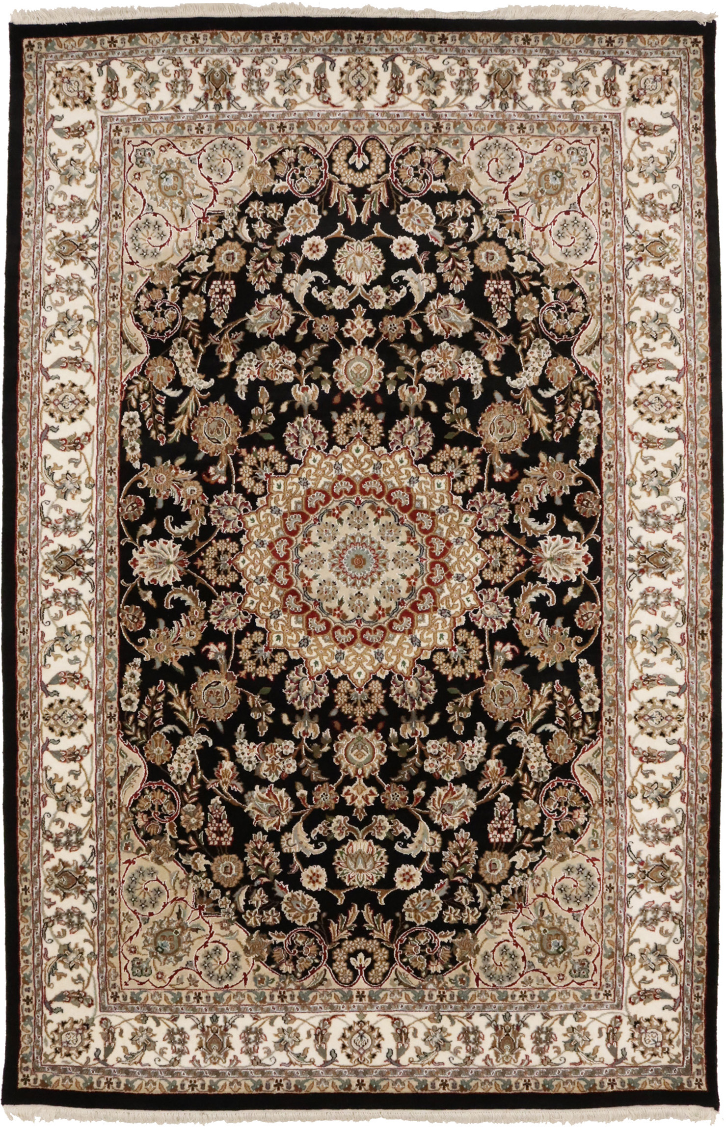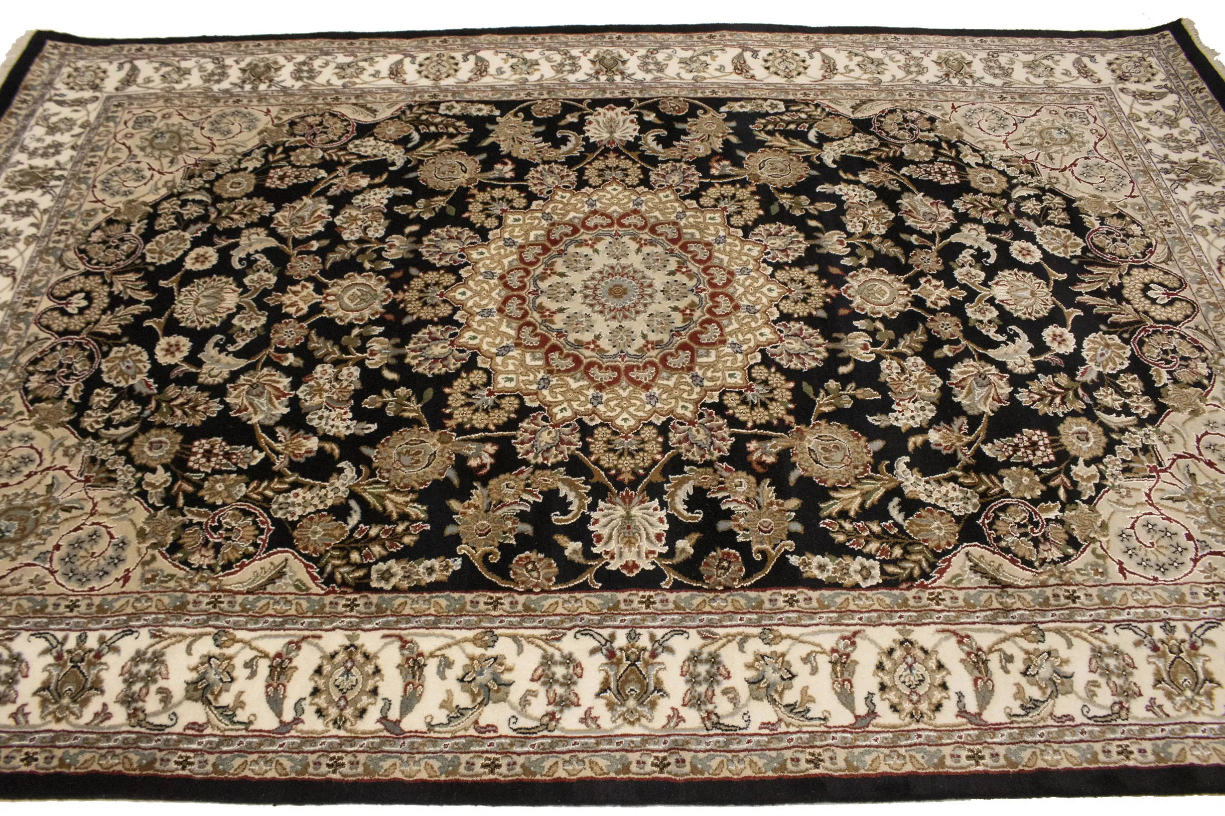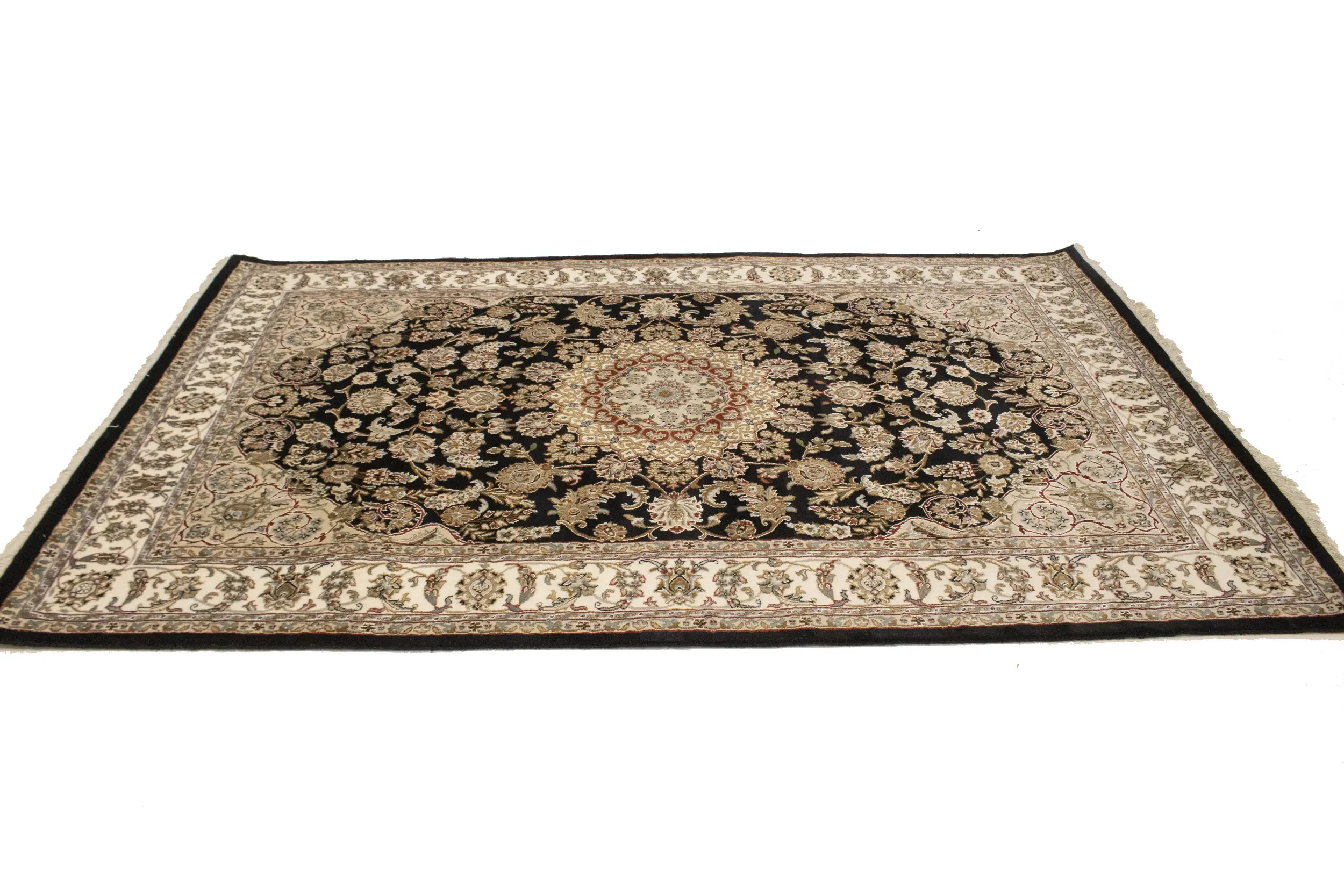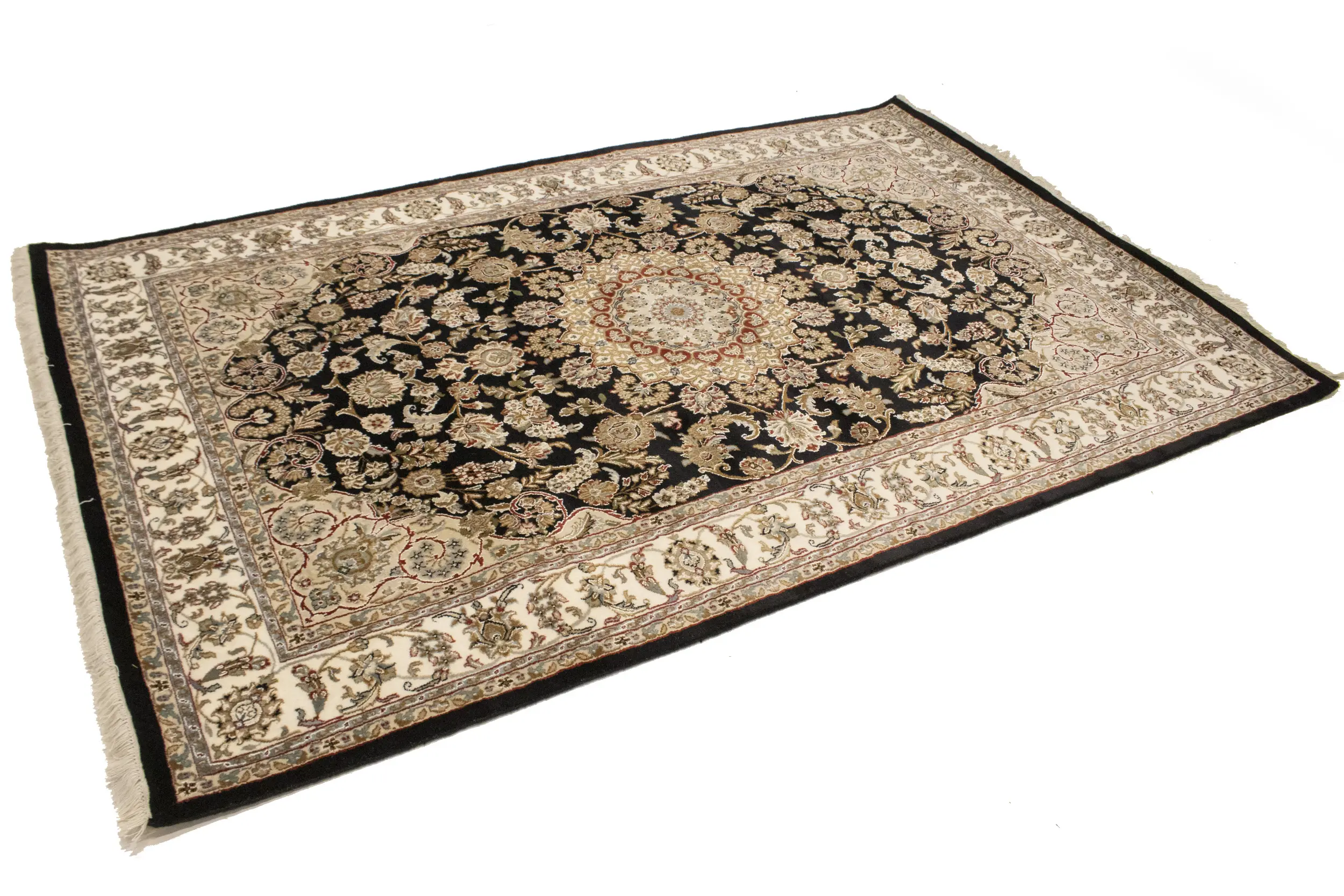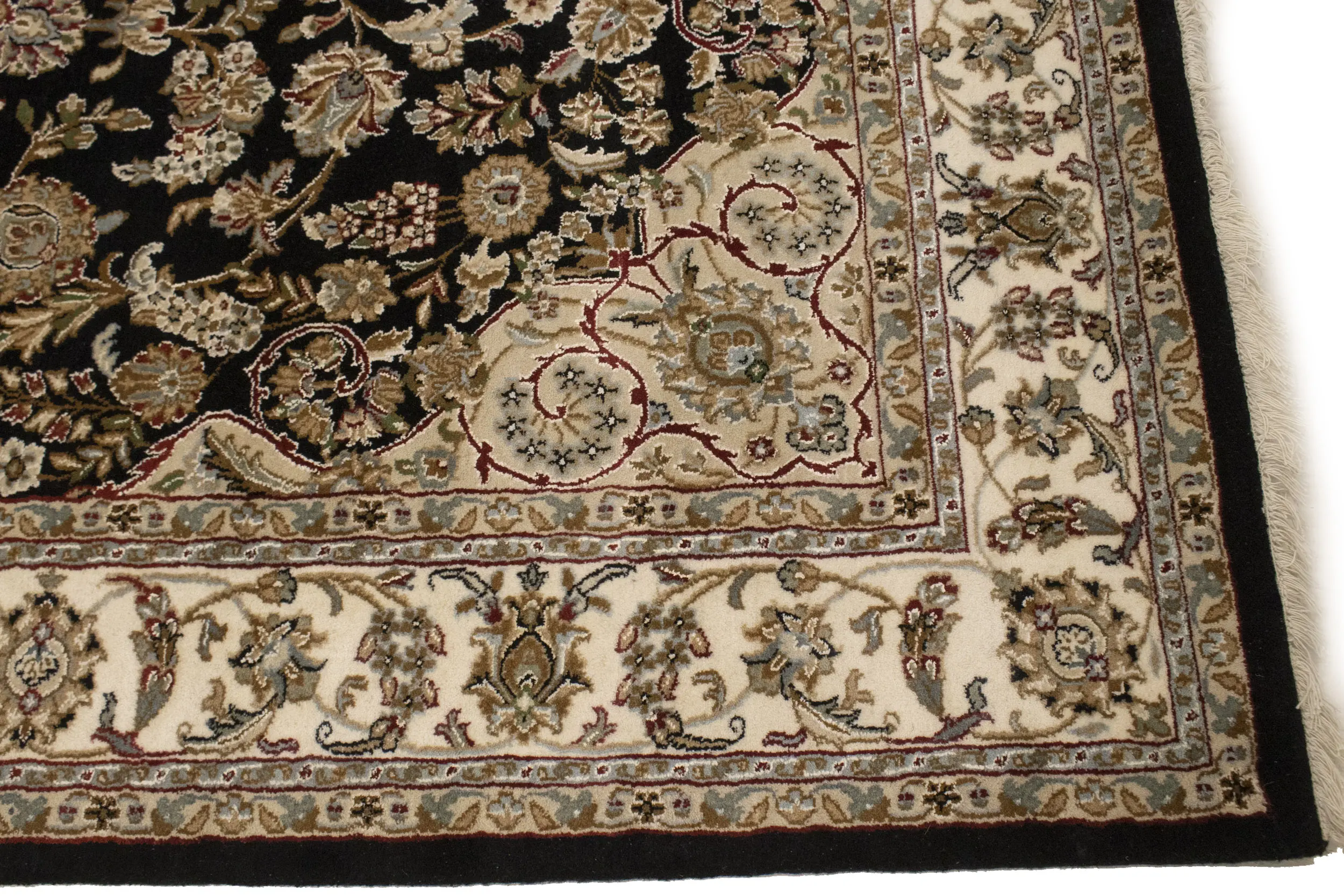 Black Floral 5X8 Indo-Nain Oriental Rug