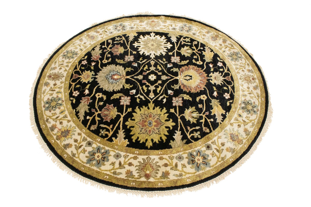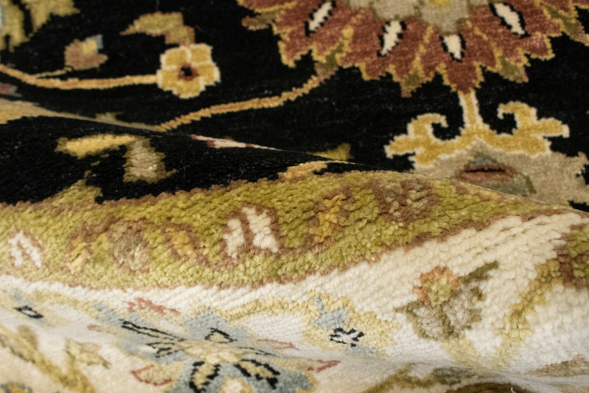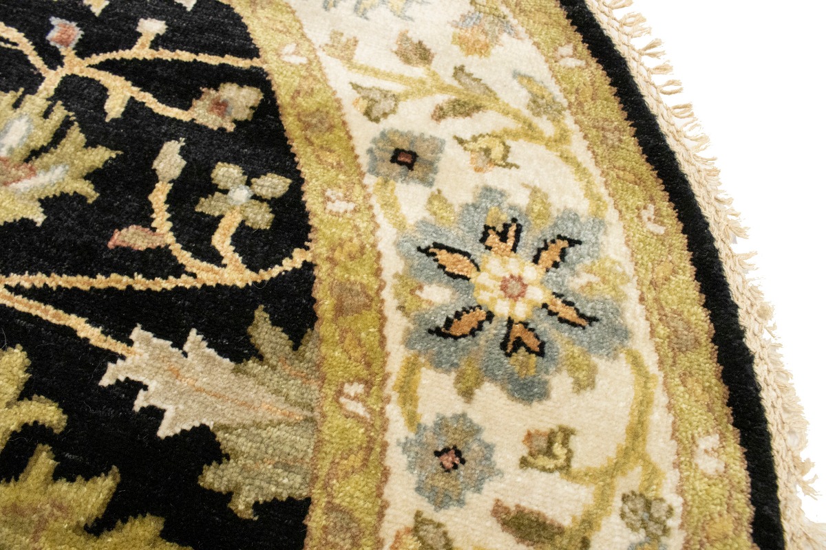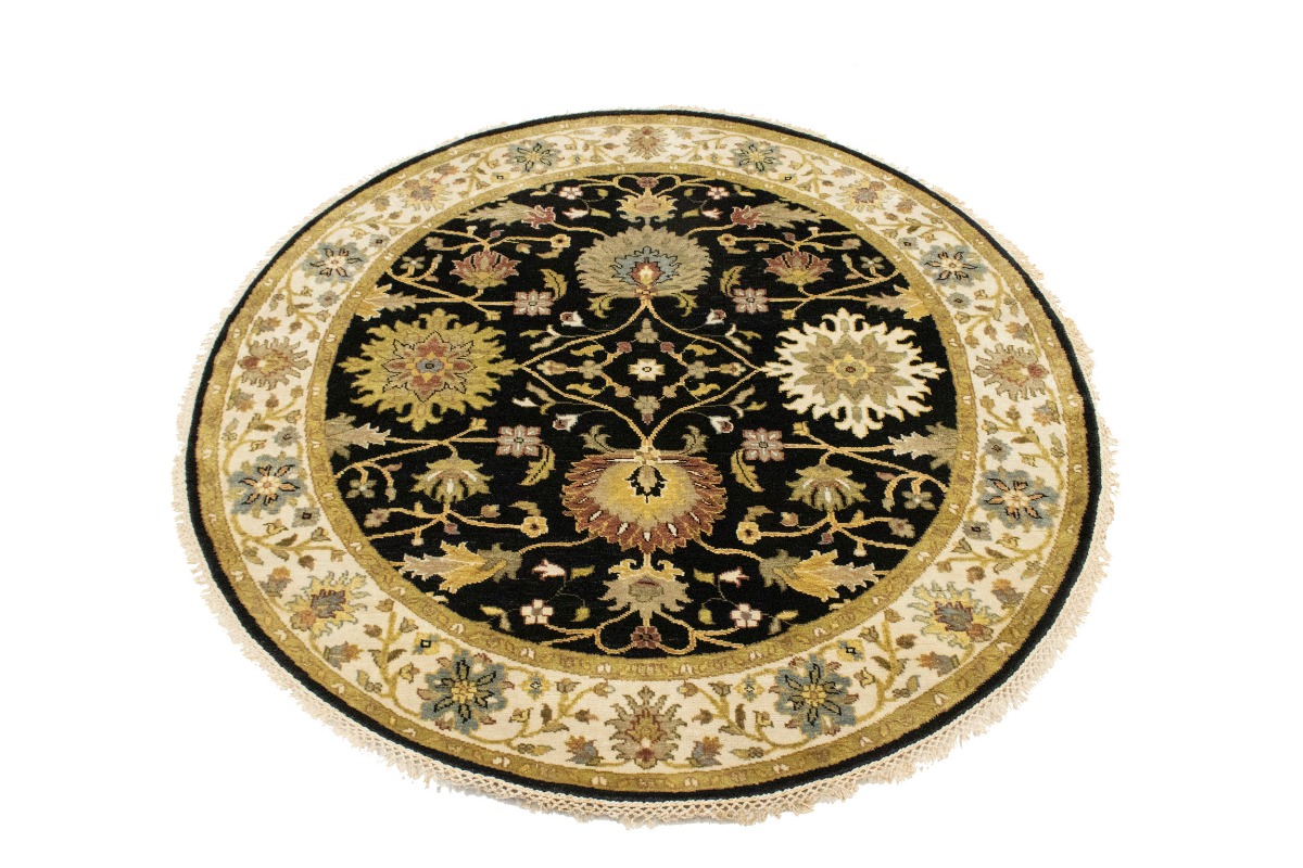 Handmade 6X6 black Oriental rugmade with natural dyes (fine wool pile and cotton foundation), superior knot count, and alluring ancient designs. This Oriental rug never will go out of style and would be among your most valuable treasures.