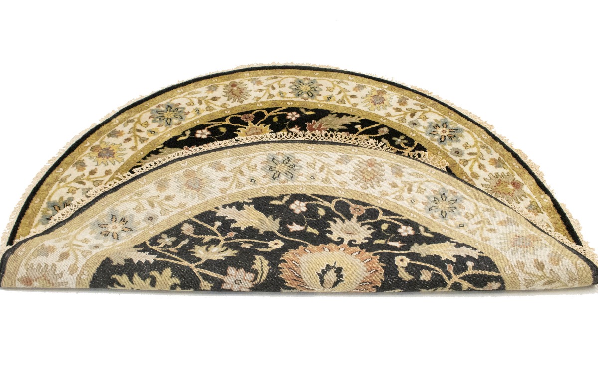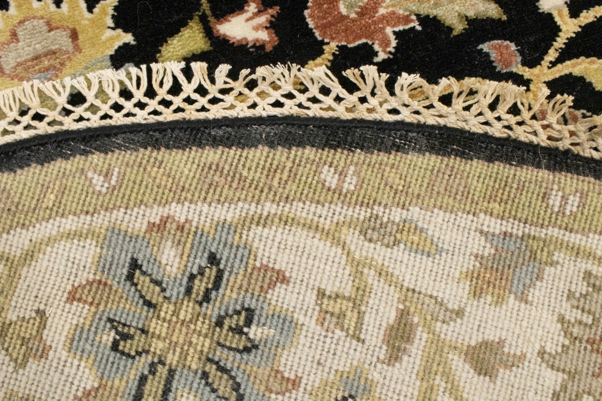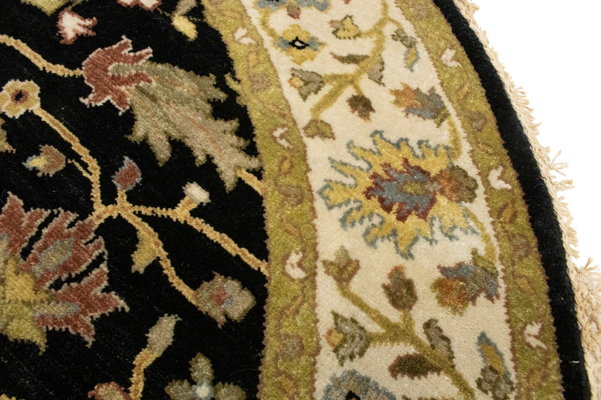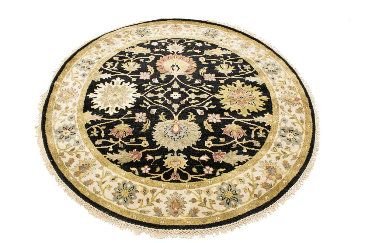 Handmade 6X6 black Oriental rugmade with natural dyes (fine wool pile and cotton foundation), superior knot count, and alluring ancient designs. This Oriental rug never will go out of style and would be among your most valuable treasures.