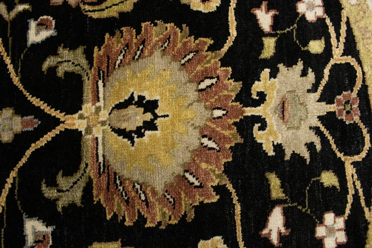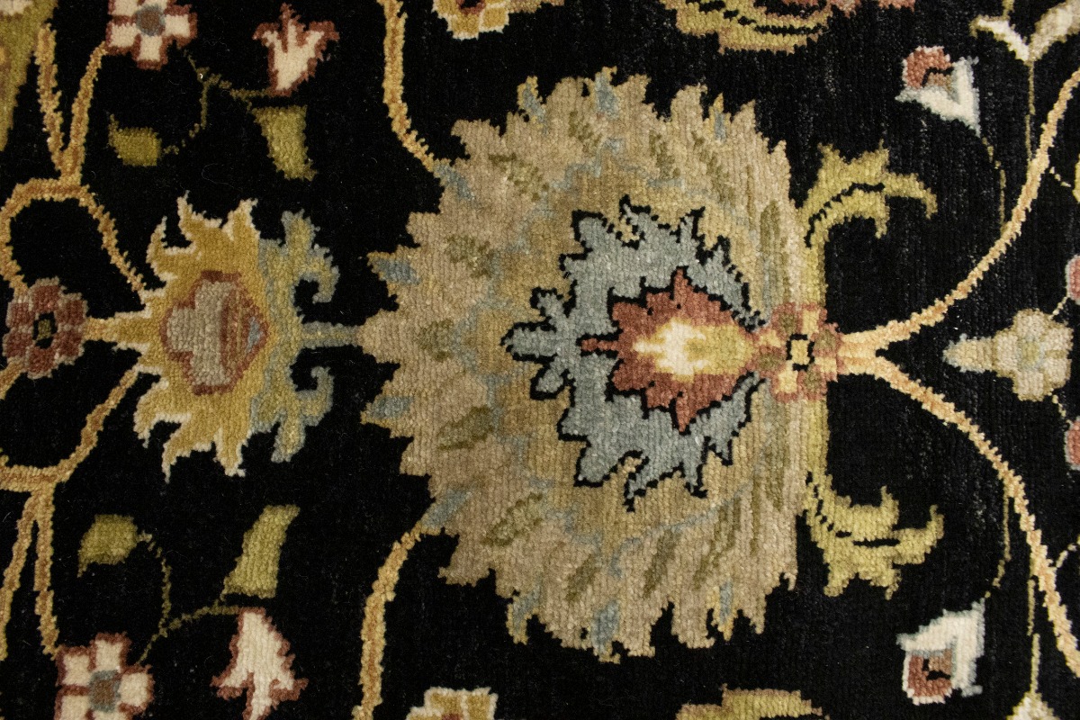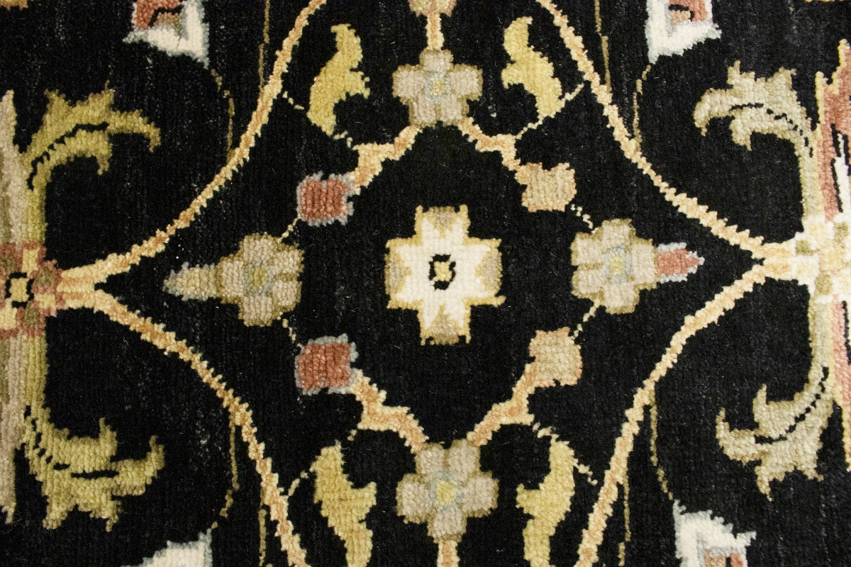 This authentic 6X6 black new Oriental rug was masterly knotted by the hands of weavers inspired by a variety of wonderful artistic designs, to recreate the aged look of the original piece with a richness of color and intricate patterned background field. What set this vintage style Oriental area rug from the others are the material and dye used (wool pile and cotton foundation), knot count, antique designs, fantastic grades, and its regional historical connection: it has deep roots, from the story of the people who produced it to the meaning of the symbols and colors displayed across its canvas that have been praised for centuries. This Indian home décor carpet will be completely cozy and inviting that never will go out of style! Also, this Oriental rug would be among your most valuable treasures, it is a great investment that accrues value over time, and it will last for generations because was woven with high-quality, all-natural wool. Environmentally friendly, opulent yet affordable; this rug will give you a thorough amount of character to help define your living space with luxury and warmth that will capture the eyes and attention of your audience (homeowners, designers, decorators, family and friends). OT-6691