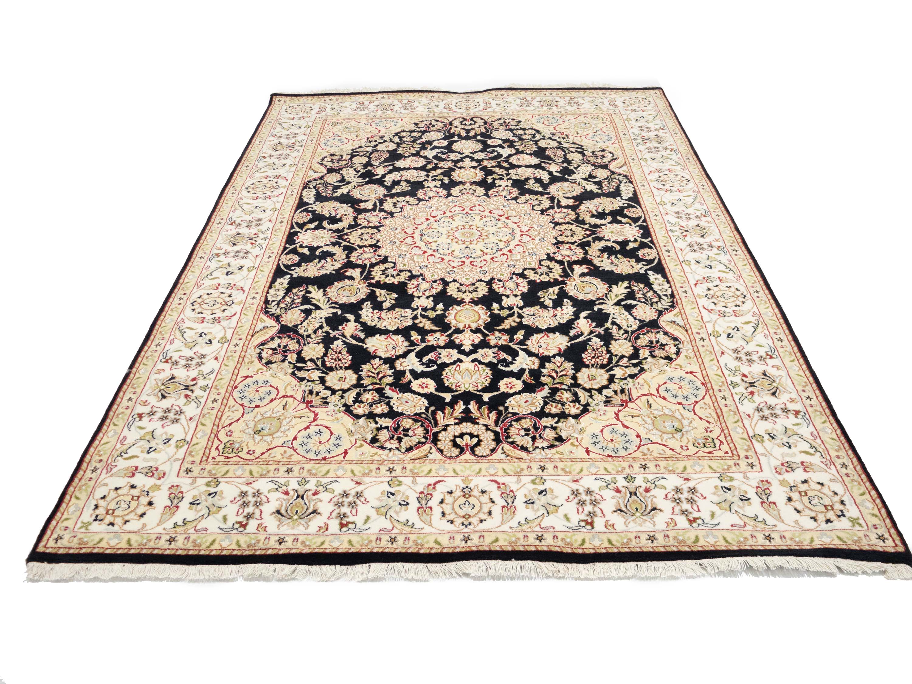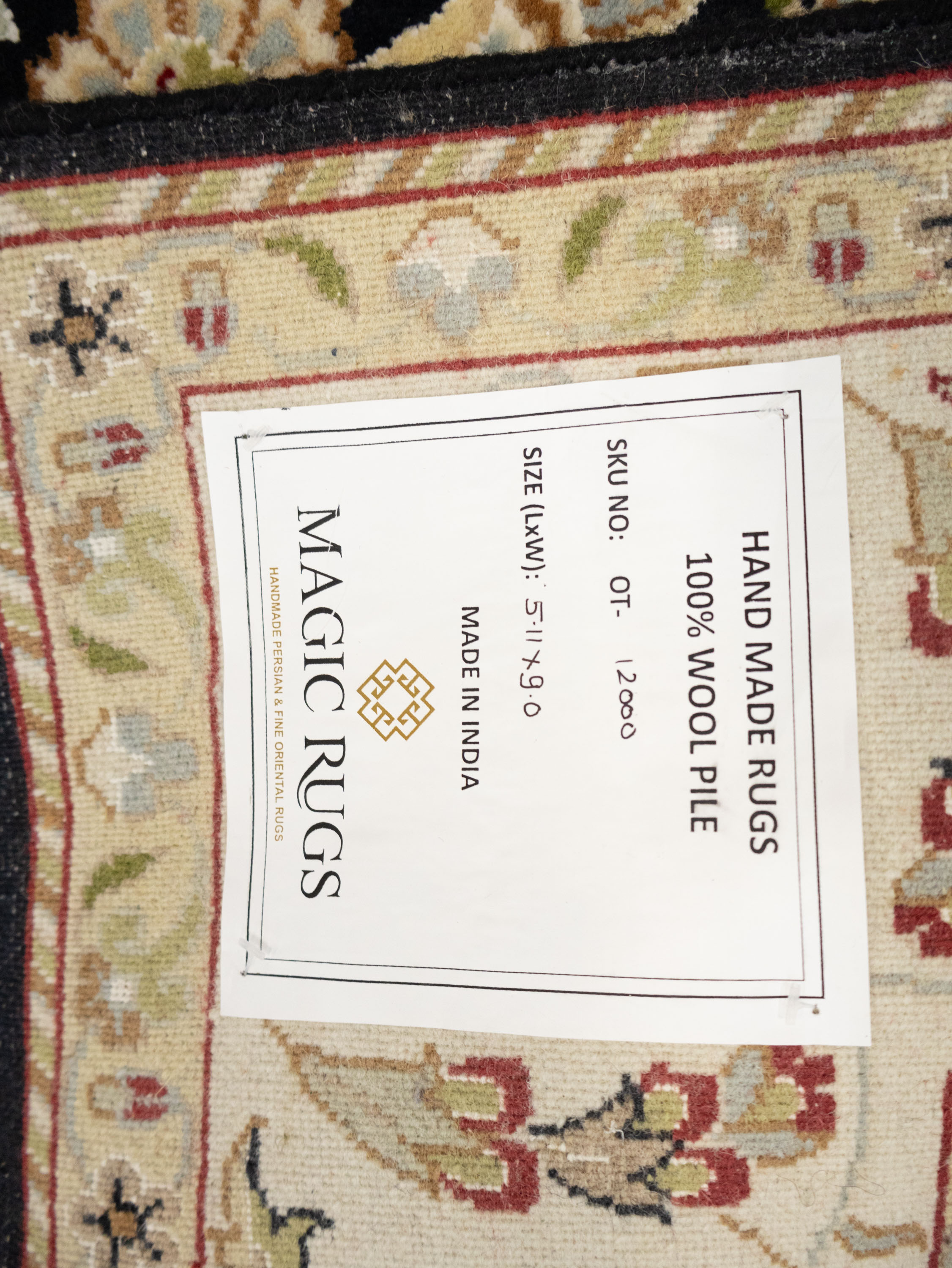 Black Floral 6X9 Indo-Nain Oriental Rug