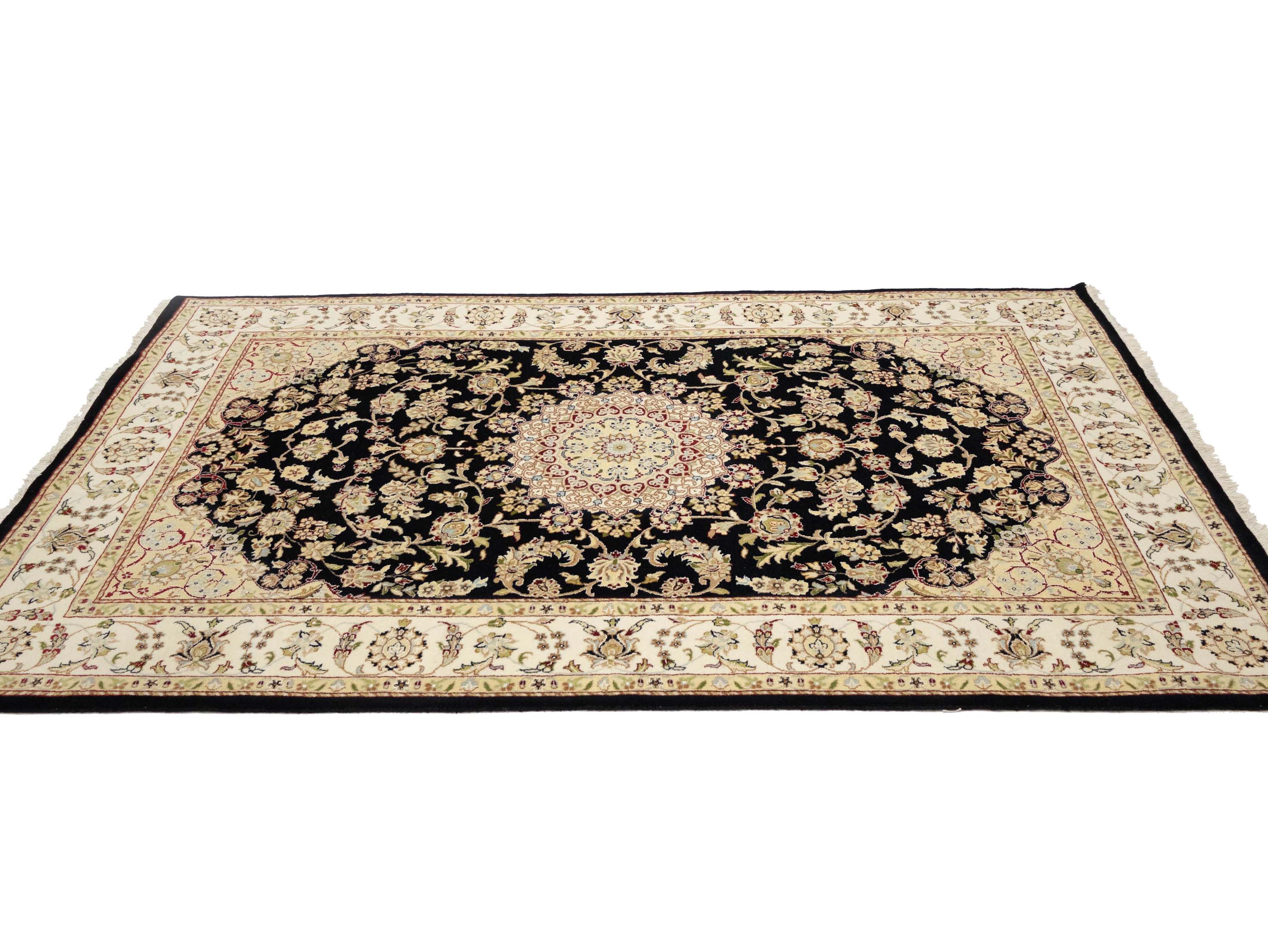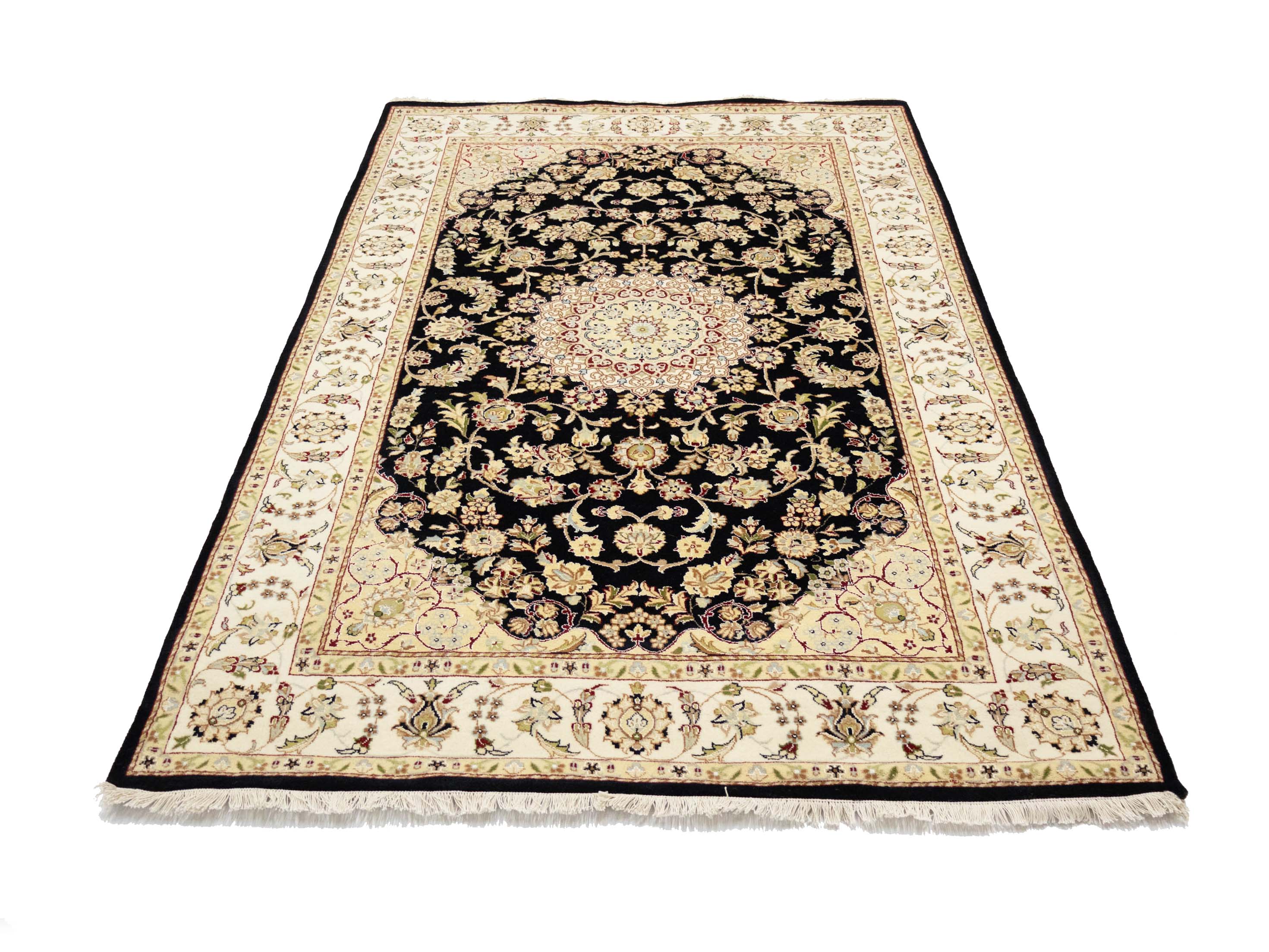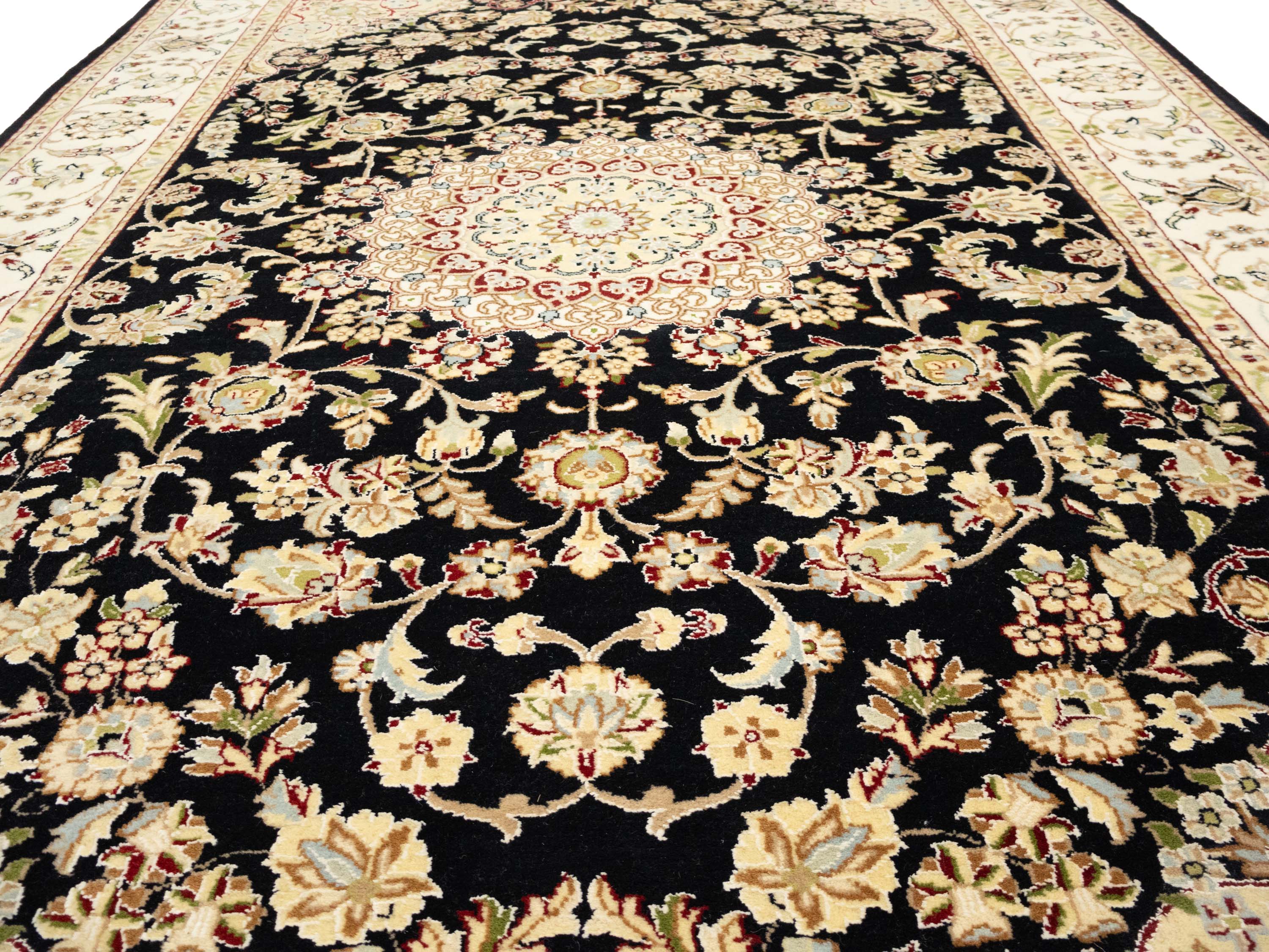 Black Floral 5x8 Indo-Nain Oriental Rug