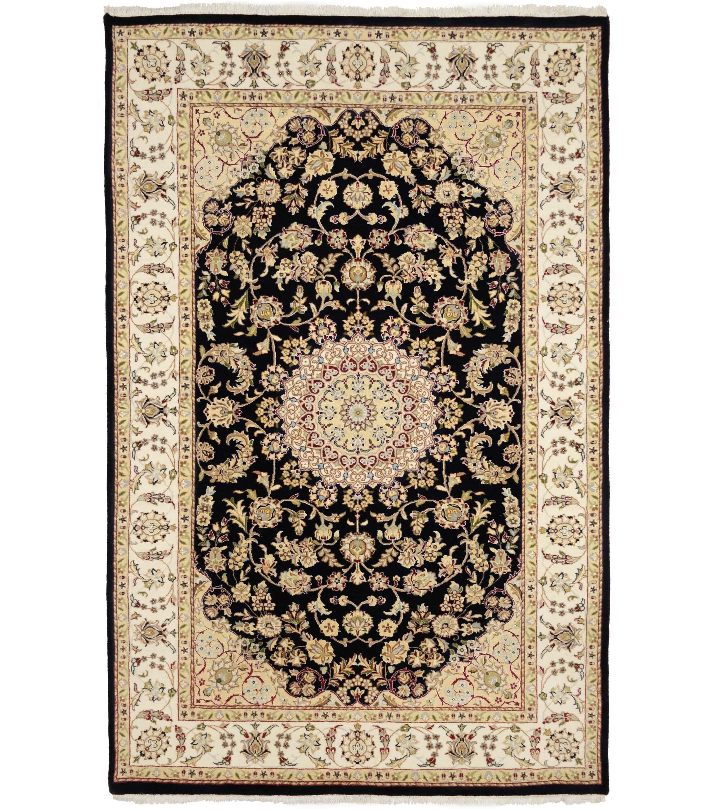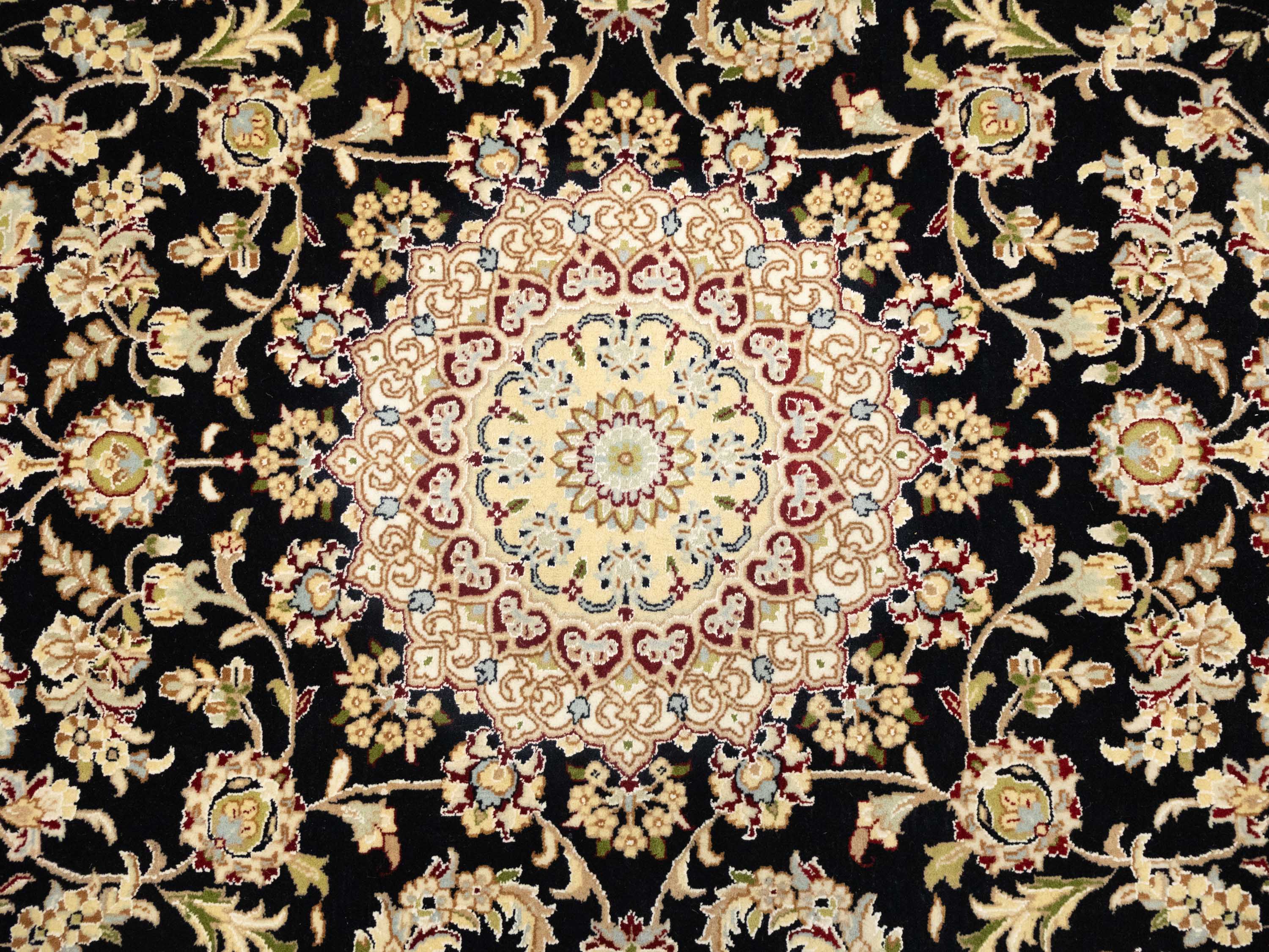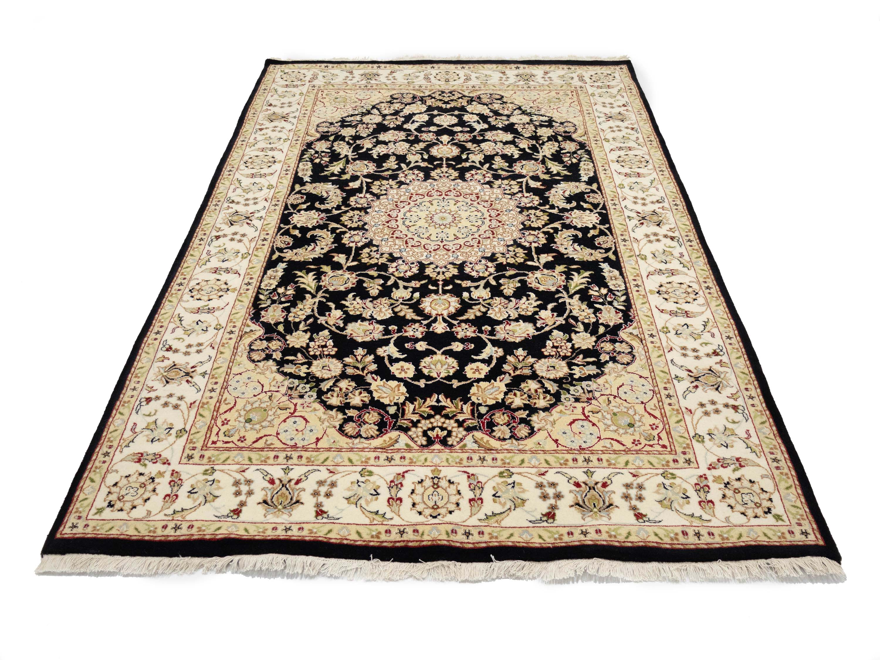 Black Floral 5x8 Indo-Nain Oriental Rug
