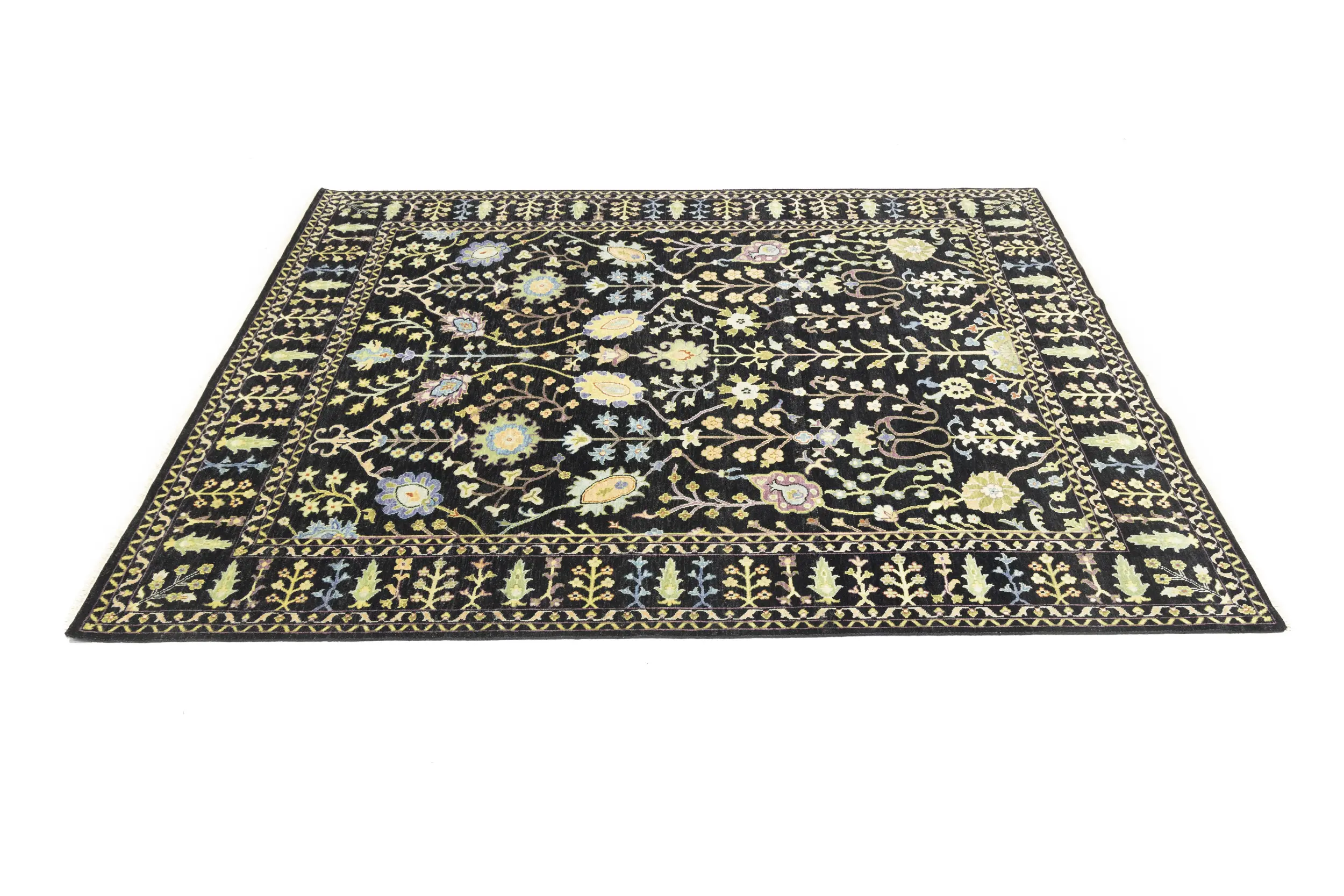 Black Floral 8X10 Osh Chobi Oriental Rug