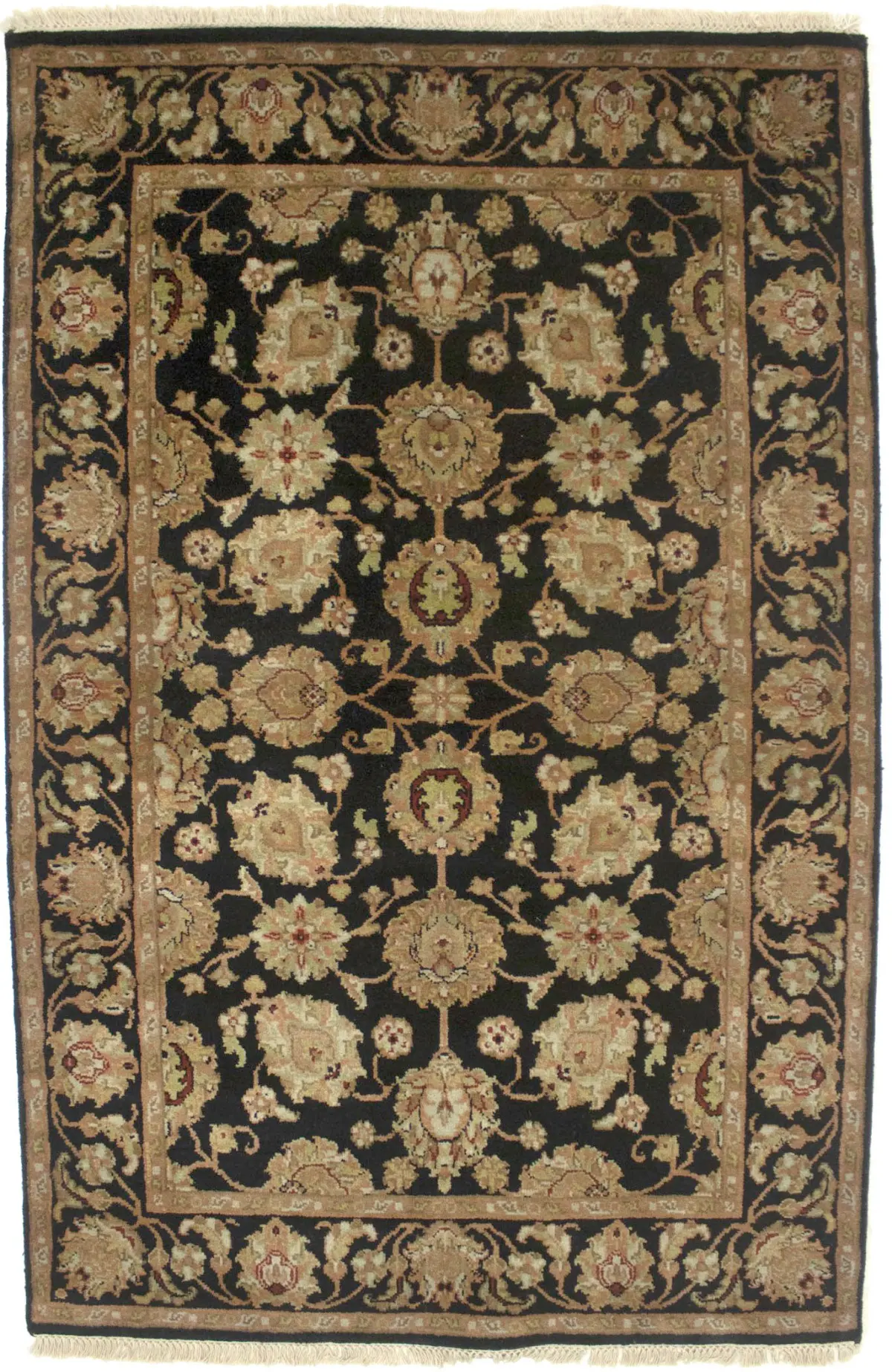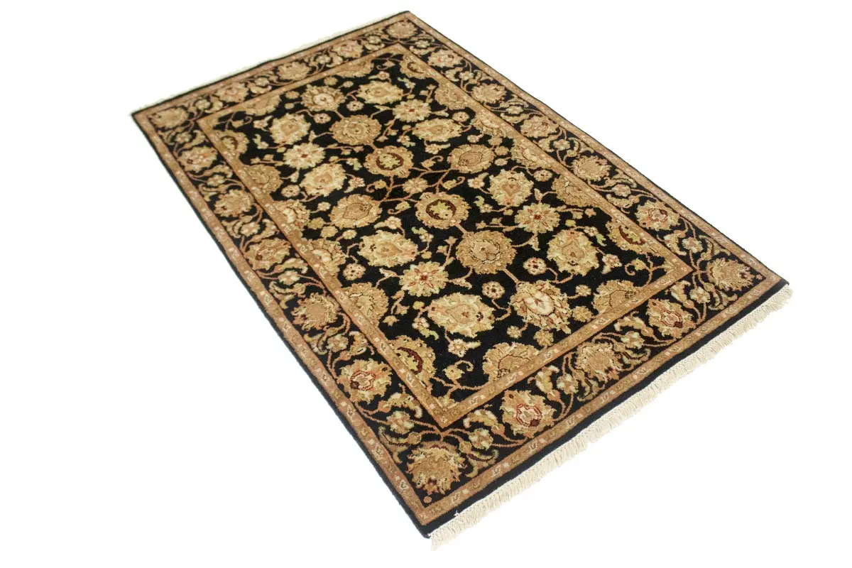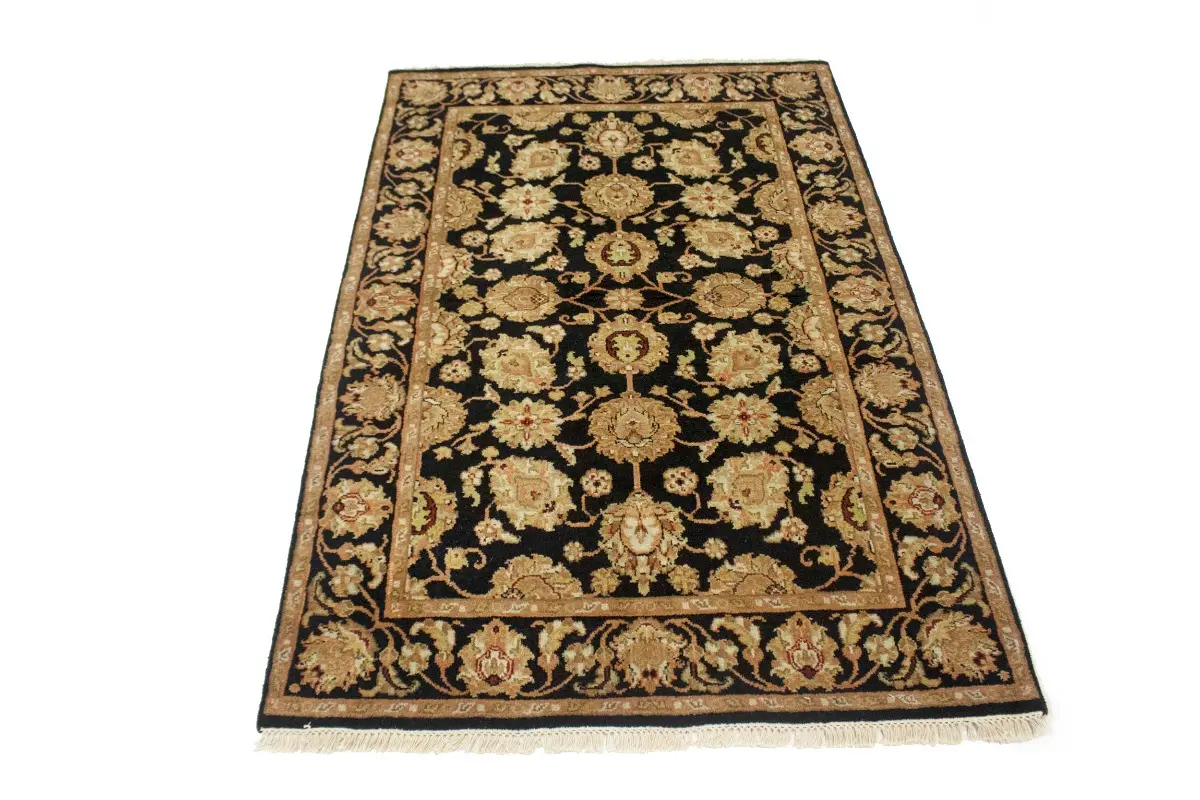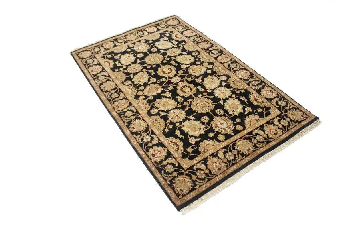 Black Floral Classic 4X6 Indo-Kashan Oriental Rug