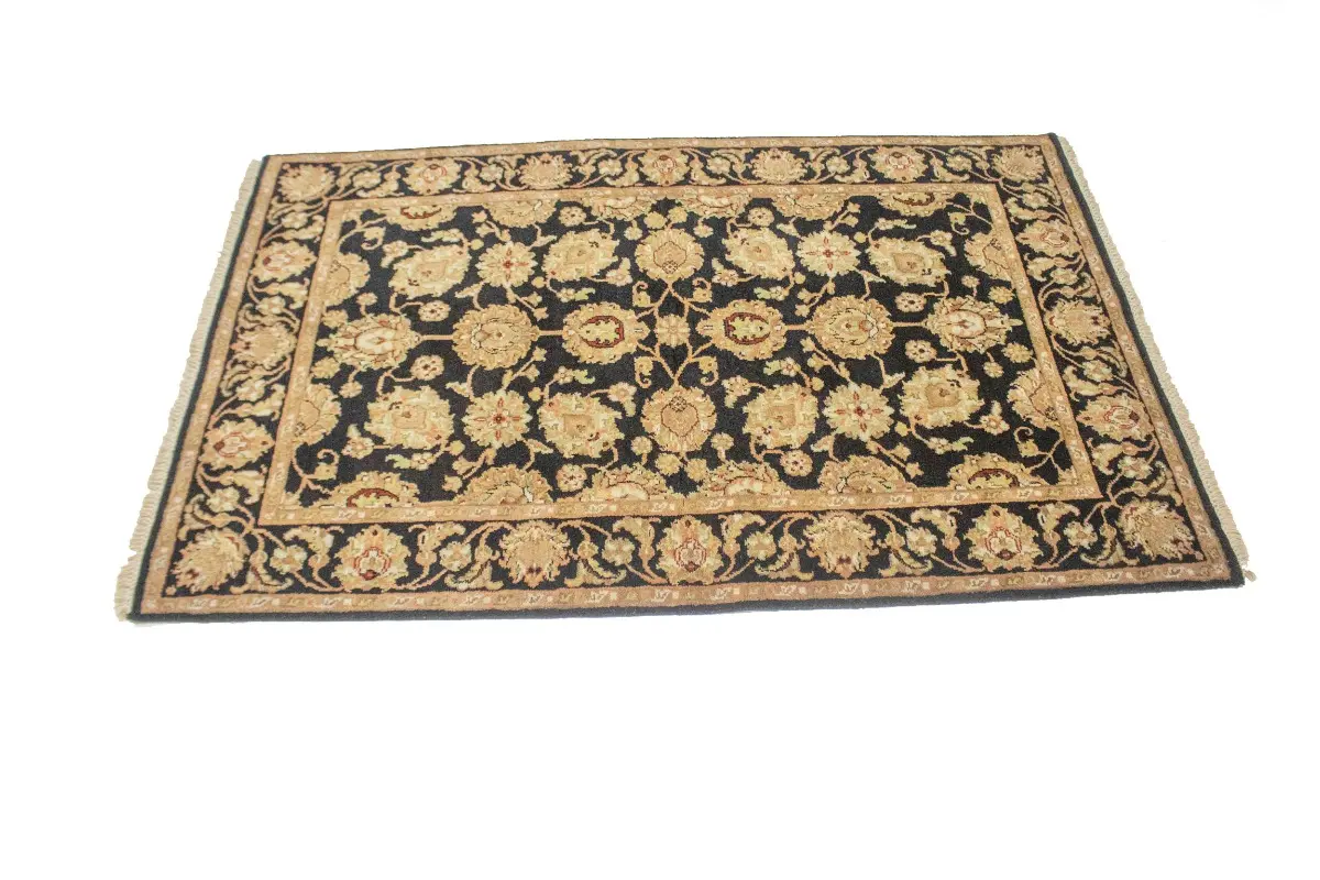 Hand Knotted 4X6 black oriental rug made with natural dyes (fine wool pile and cotton foundation), superior knot count, and alluring ancient designs. This Oriental rug never will go out of style and would be among your most valuable treasures.