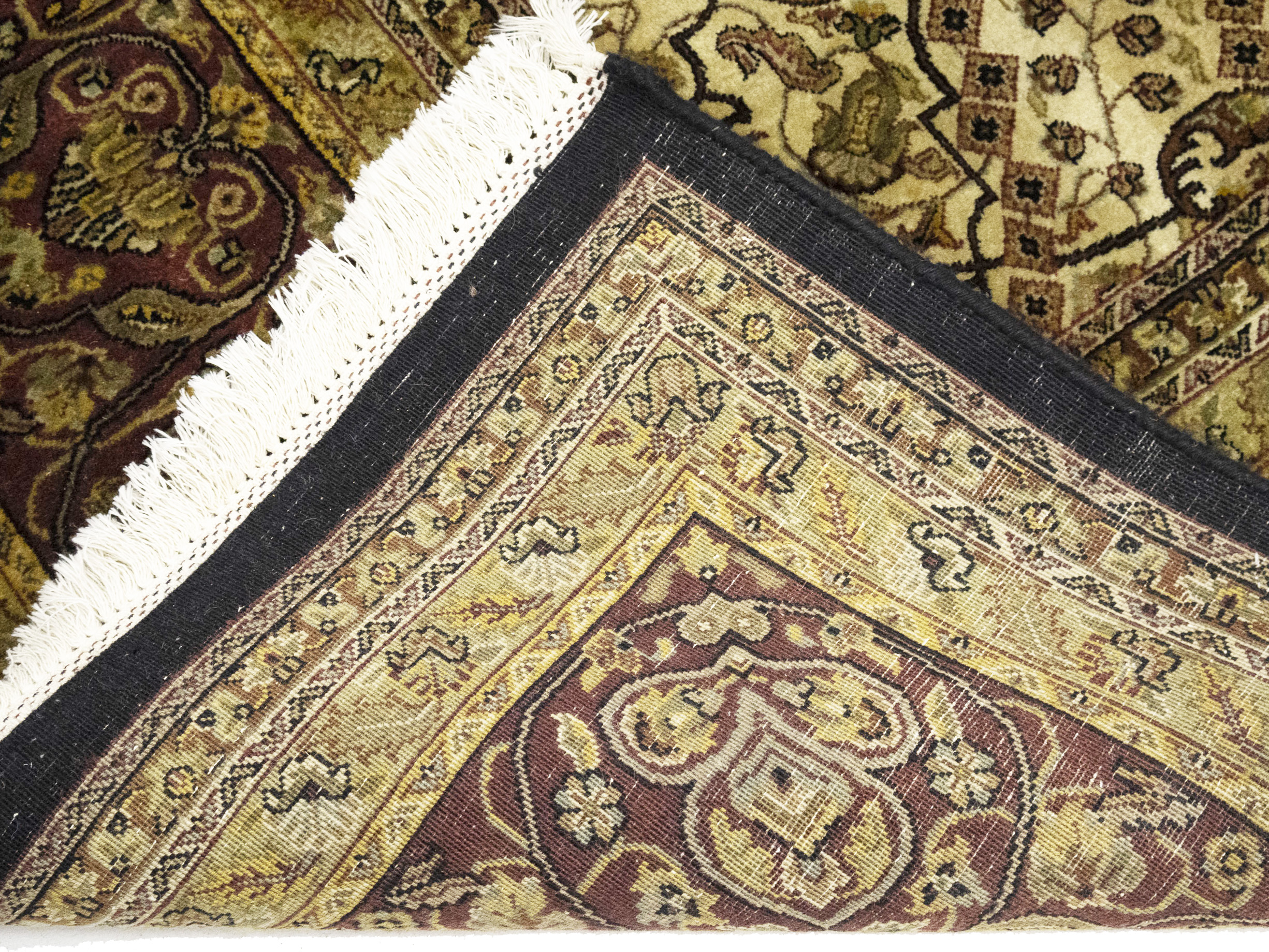 Handmade 9X12 cream oriental rug made with vegetable dyes (fine wool pile and cotton foundation), superior knot count, and appealing ancient designs. This Oriental rug never will go out of style and would be among your most valuable treasures.