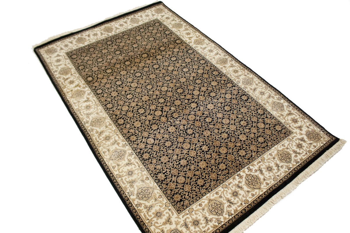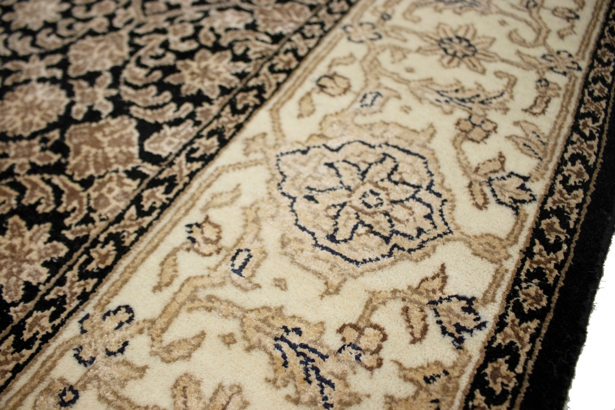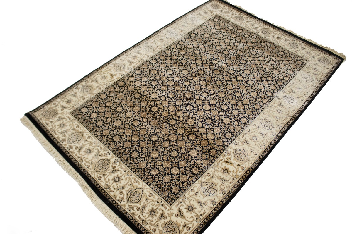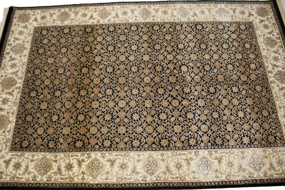 This authentic 4X6 black new Oriental rug was crafted by the hands of skilled weavers enthused by a variety of lovely artistic designs, to recreate the aged look of the unique piece with a richness of color and beautifully elaborated background field. What set this vintage style Oriental area rug from the others are the material and dye used (wool pile and cotton foundation), knot count, ancient designs, fantastic grades, and its regional historical connection: it has deep roots, from the story of the people who produced it to the meaning of the symbols and colors displayed across its canvas that have been praised for centuries. This Indian home décor carpet will be completely cozy and inviting that never will go out of style! Also, this Oriental rug would be among your most valuable treasures, it is a great investment that increase in value over time, and it will last for generations because was woven with high-quality, all-natural wool. Environmentally friendly, opulent yet affordable; this rug will give you a thorough amount of character to help define your living space with sophistication and warmth that will capture the eyes and attention of your audience (homeowners, designers, decorators, family and friends). OT-3870