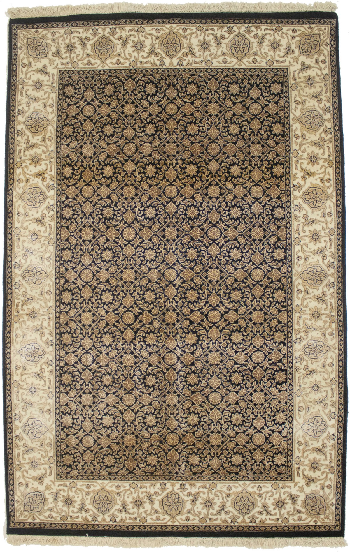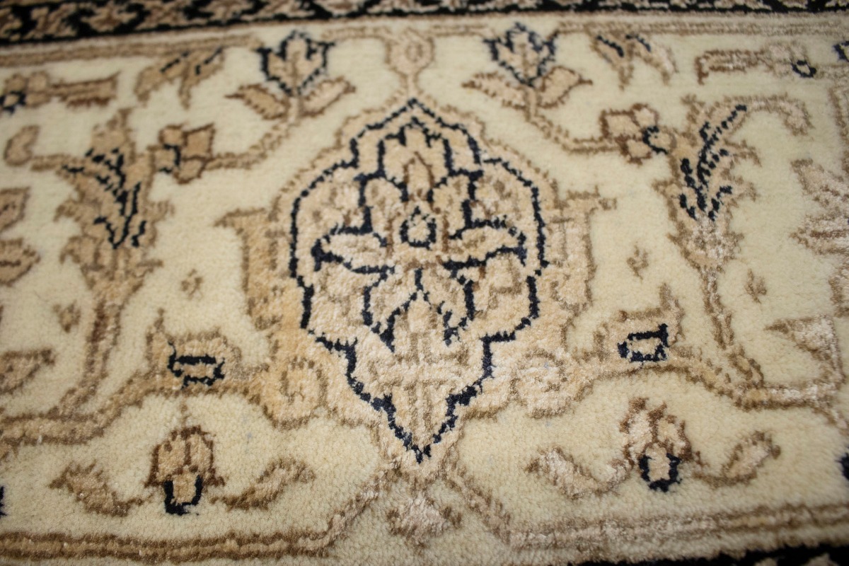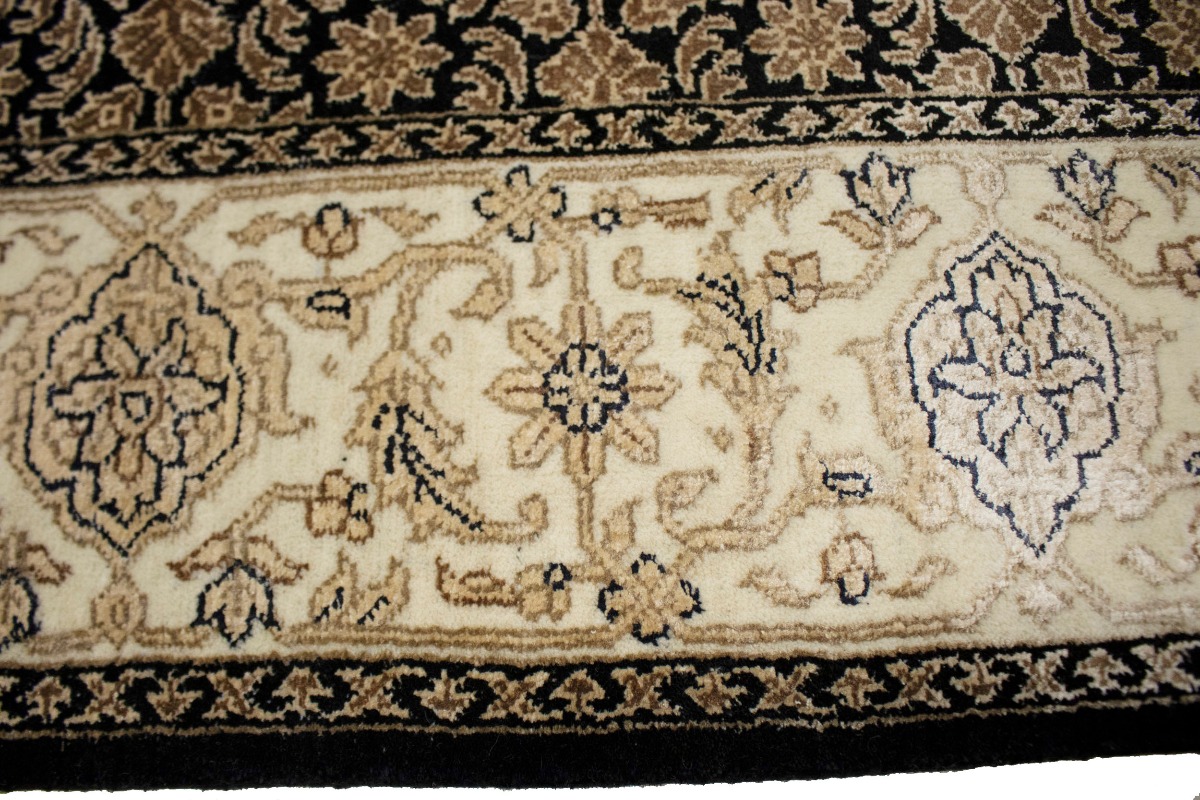 This authentic 4X6 black new Oriental rug was crafted by the hands of skilled weavers enthused by a variety of lovely artistic designs, to recreate the aged look of the unique piece with a richness of color and beautifully elaborated background field. What set this vintage style Oriental area rug from the others are the material and dye used (wool pile and cotton foundation), knot count, ancient designs, fantastic grades, and its regional historical connection: it has deep roots, from the story of the people who produced it to the meaning of the symbols and colors displayed across its canvas that have been praised for centuries. This Indian home décor carpet will be completely cozy and inviting that never will go out of style! Also, this Oriental rug would be among your most valuable treasures, it is a great investment that increase in value over time, and it will last for generations because was woven with high-quality, all-natural wool. Environmentally friendly, opulent yet affordable; this rug will give you a thorough amount of character to help define your living space with sophistication and warmth that will capture the eyes and attention of your audience (homeowners, designers, decorators, family and friends). OT-3870