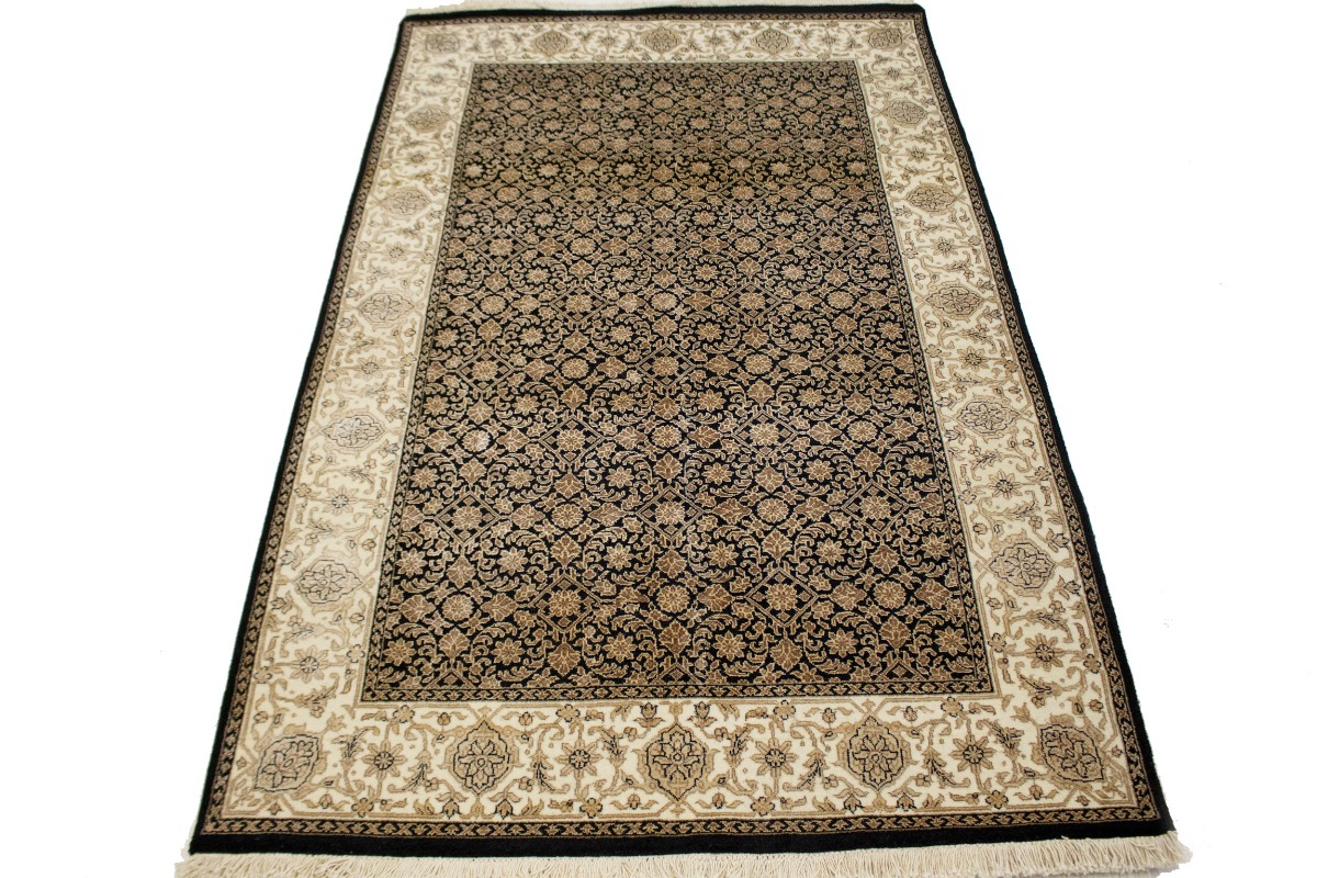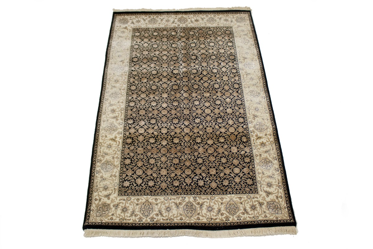 Hand Knotted 4X6 black oriental rug made with vegetable dyes (fine wool pile and cotton foundation), exceptional knot count, and appealing ancient designs. This Oriental rug never will go out of style and would be among your most valuable treasures.