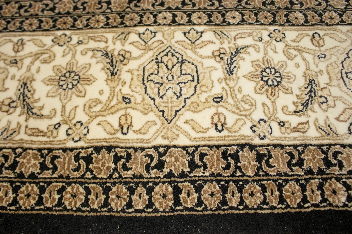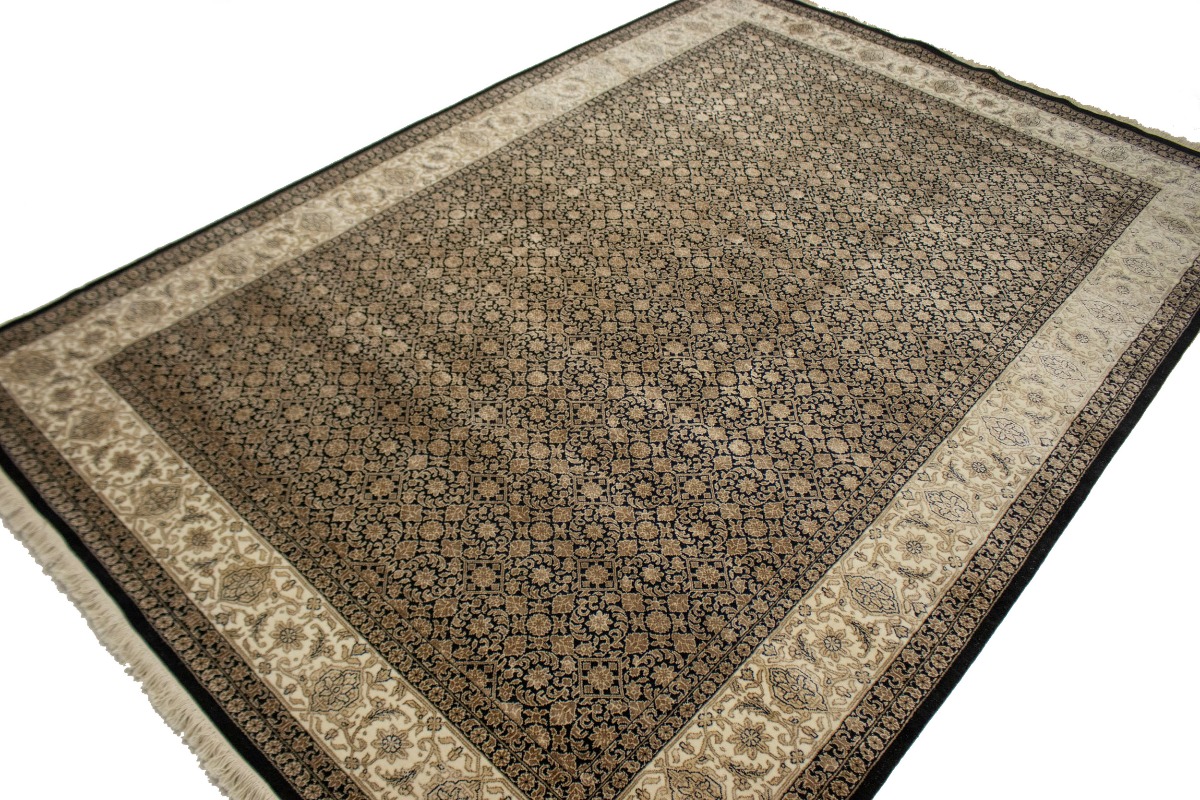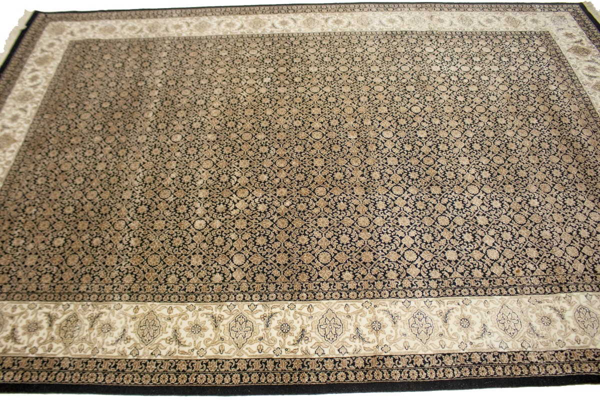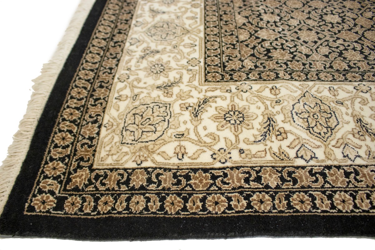 This genuine 7X10 black new Oriental rug was well-constructed by the hands of master weavers motivated by a variety of stunning artistic designs, to recreate the aged look of the exceptional piece with a richness of color and developed decorative background field. What set this vintage style Oriental area rug from the others are the material and dye used (wool pile and cotton foundation), knot count, ancient designs, fantastic grades, and its regional historical connection: it has deep roots, from the story of the people who produced it to the meaning of the symbols and colors displayed across its canvas that have been praised for centuries. This Indian home décor carpet will be completely cozy and inviting that never will go out of style! Also, this Oriental rug would be among your most valuable treasures, it is a great investment that increase in value over time, and it will last a lifetime because was woven with high-quality, all-natural wool. Eco-friendly, opulent yet affordable; this rug give you an extra pop of character to help define your home environment with elegance and warmth that will capture the eyes and attention of your audience (homeowners, designers, decorators, family and friends). OT-3866