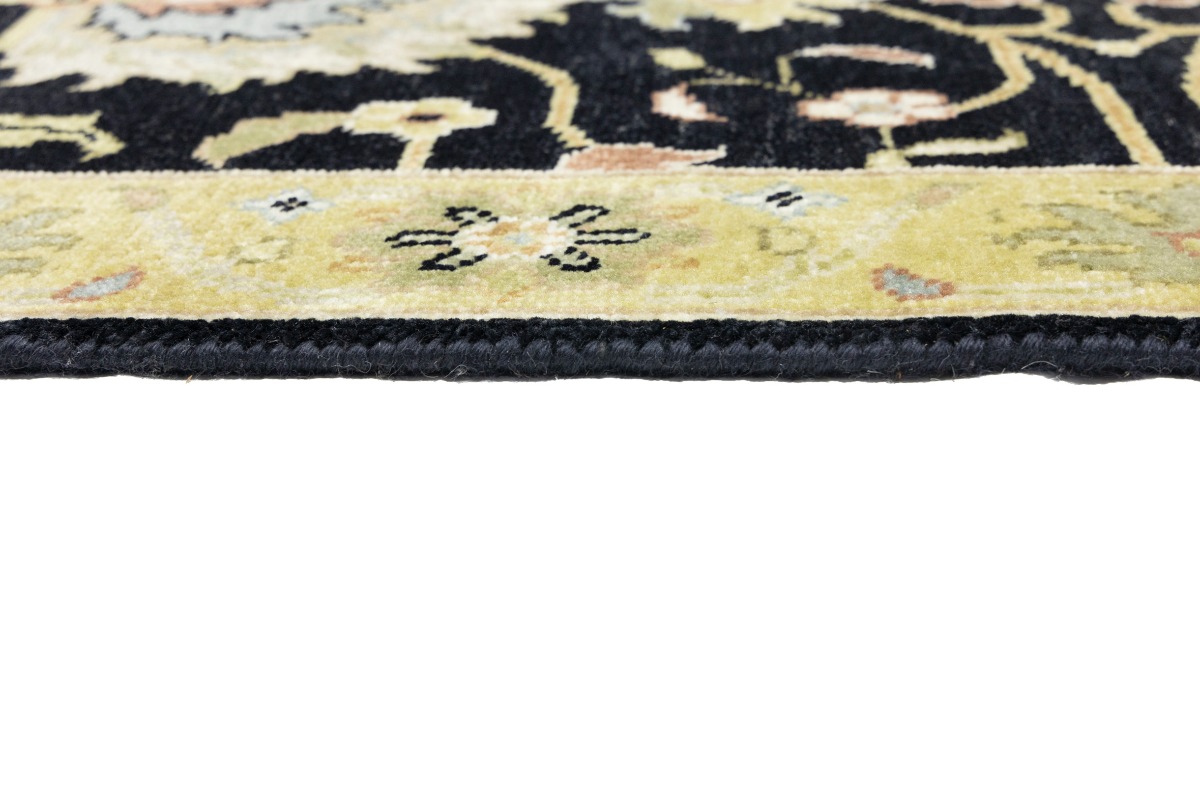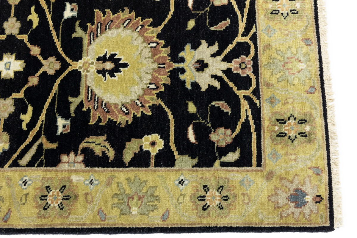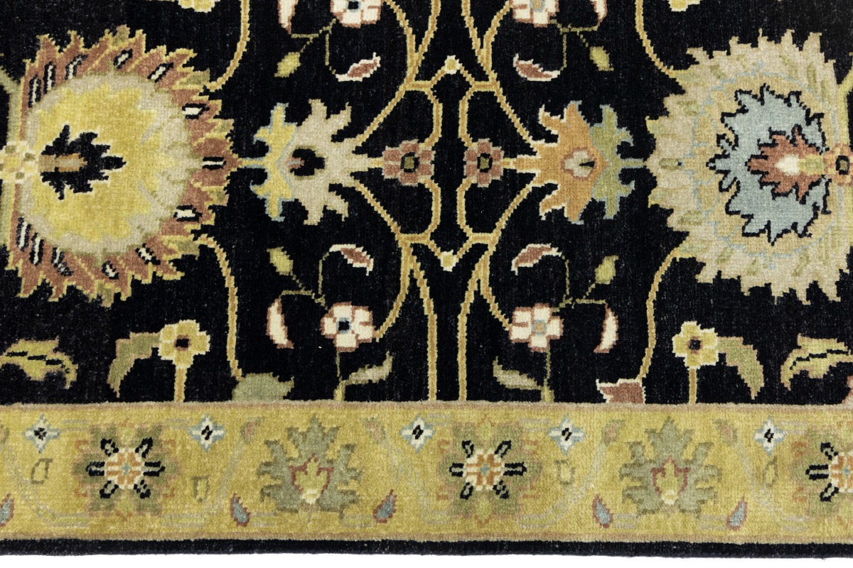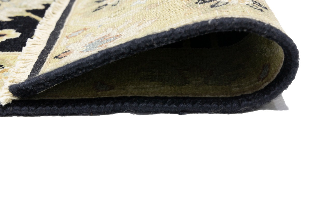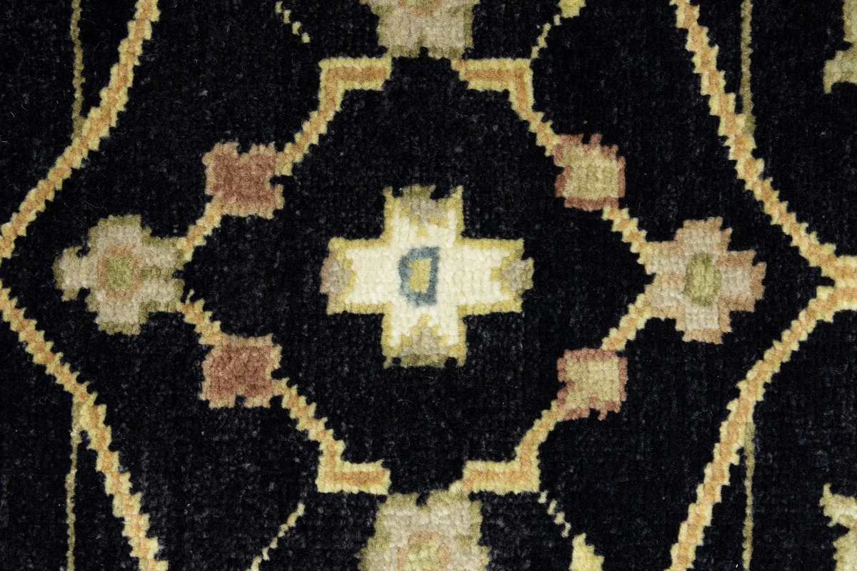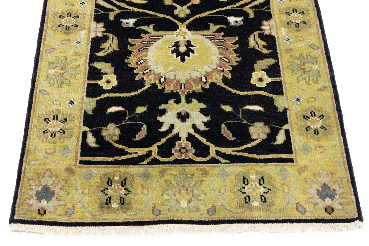 This authentic 3X10 black new Oriental runner was crafted by the hands of skilled weavers enthused by a variety of lovely artistic designs, to recreate the aged look of the unique piece with a richness of color and beautifully elaborated background field. What set this vintage style Oriental area runner from the others are the material and dye used (wool pile and cotton foundation), knot count, ancient designs, fantastic grades, and its regional historical connection: it has deep roots, from the story of the people who produced it to the meaning of the symbols and colors displayed across its canvas that have been praised for centuries. This Indian home décor carpet will be completely cozy and inviting that never will go out of style! Also, this Oriental rug would be among your most valuable treasures, it is a great investment that increase in value over time, and it will last for generations because was woven with high-quality, all-natural wool. Environmentally friendly, opulent yet affordable; this runner will give you a thorough amount of character to help define your living space with sophistication and warmth that will capture the eyes and attention of your audience (homeowners, designers, decorators, family and friends). OT-9061