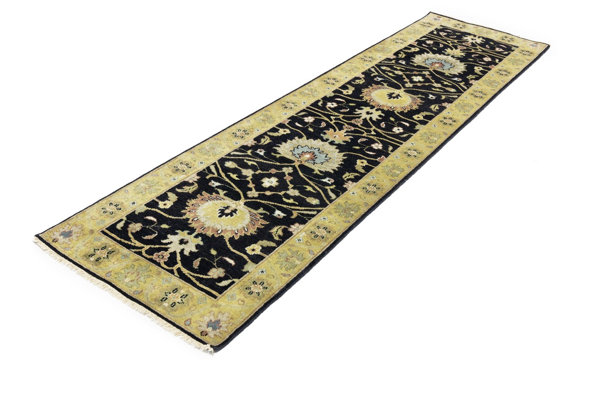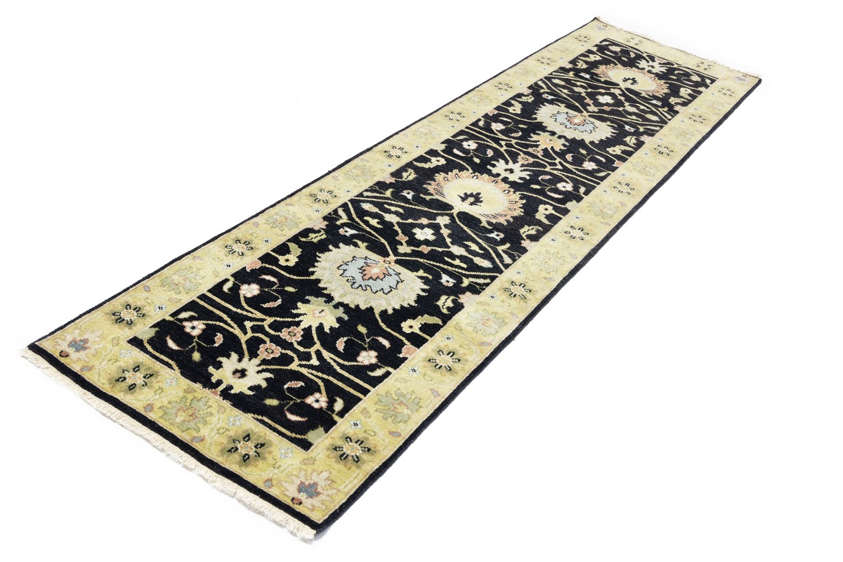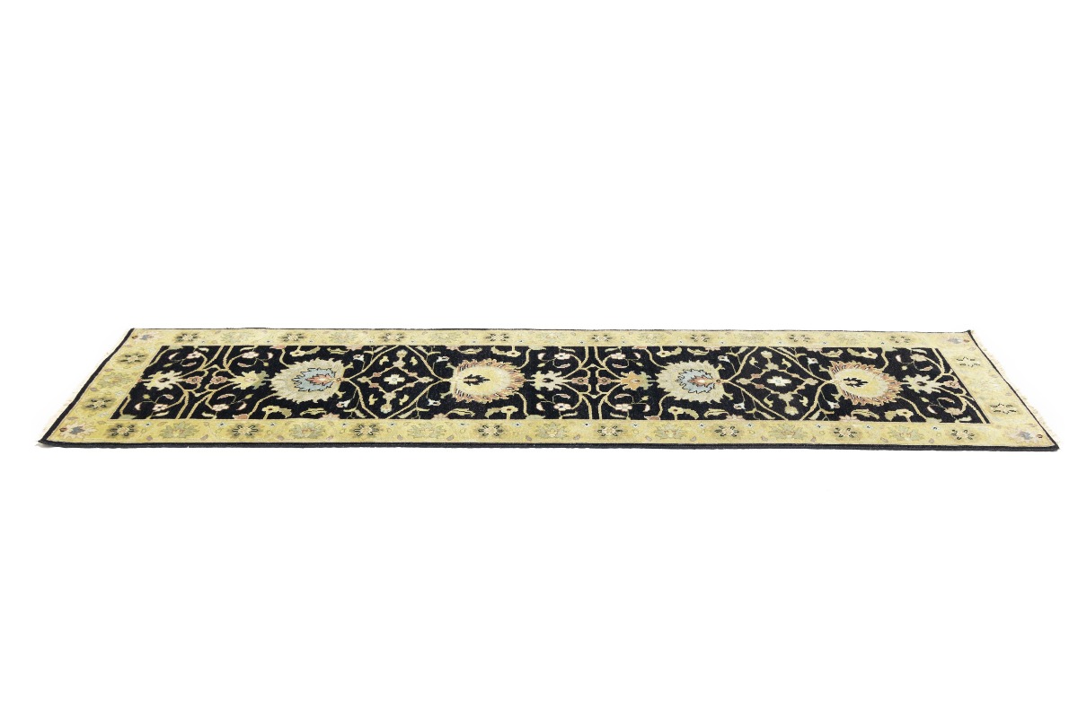 Hand Knotted 3X10 black oriental runner made with vegetable dyes (fine wool pile and cotton foundation), superior knot count, and appealing ancient designs. This Oriental runner never will go out of style and would be among your most valuable treasures.