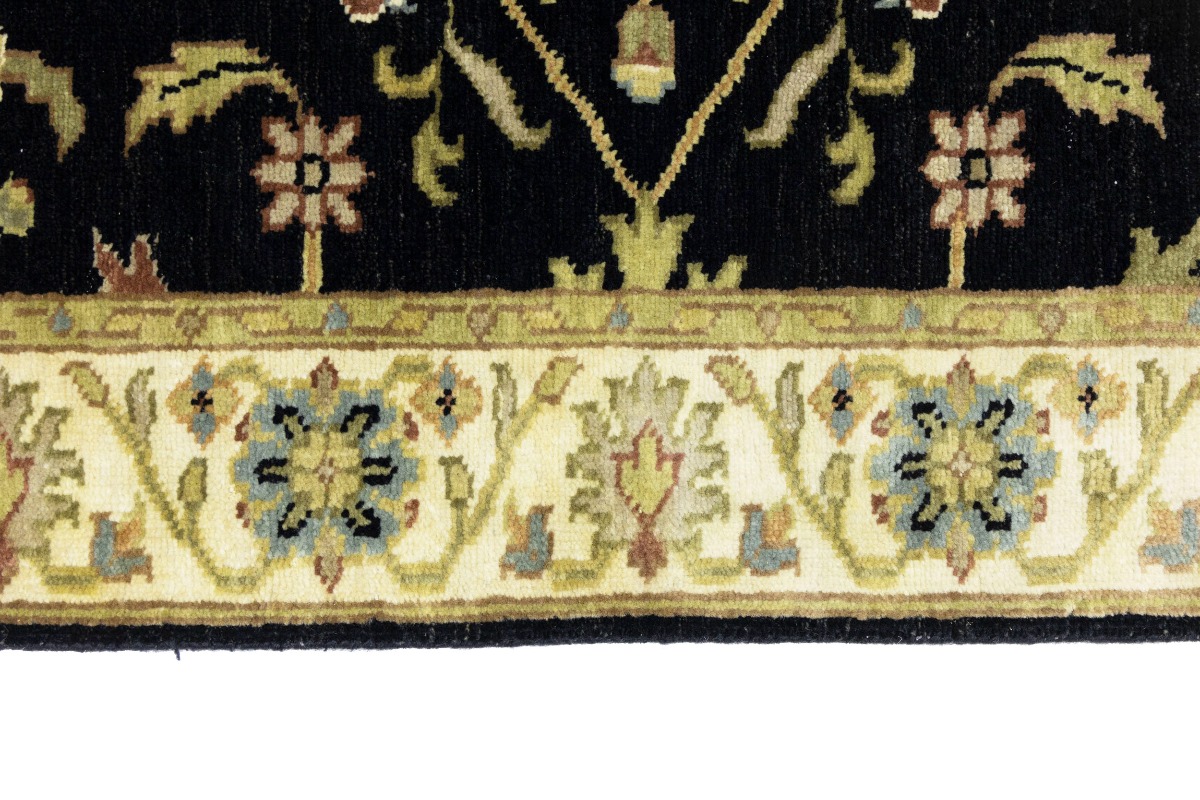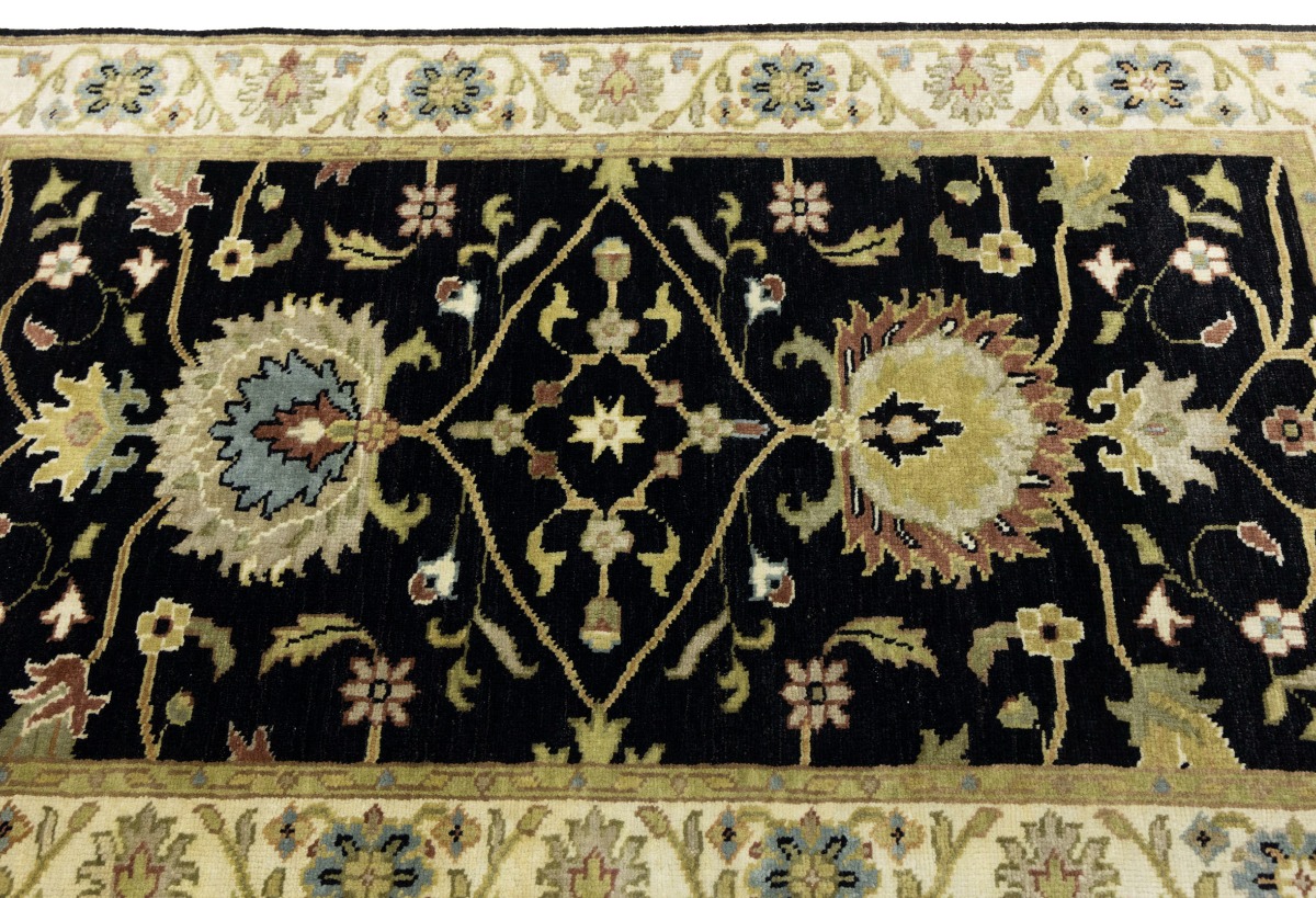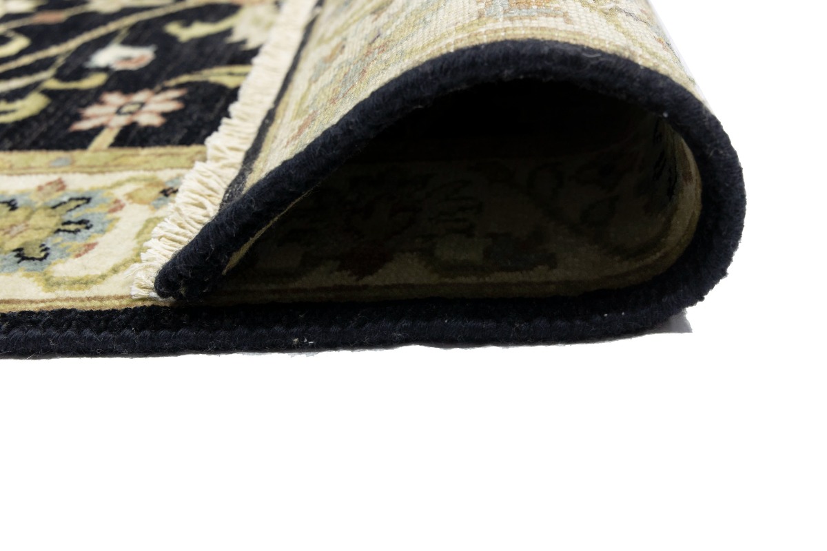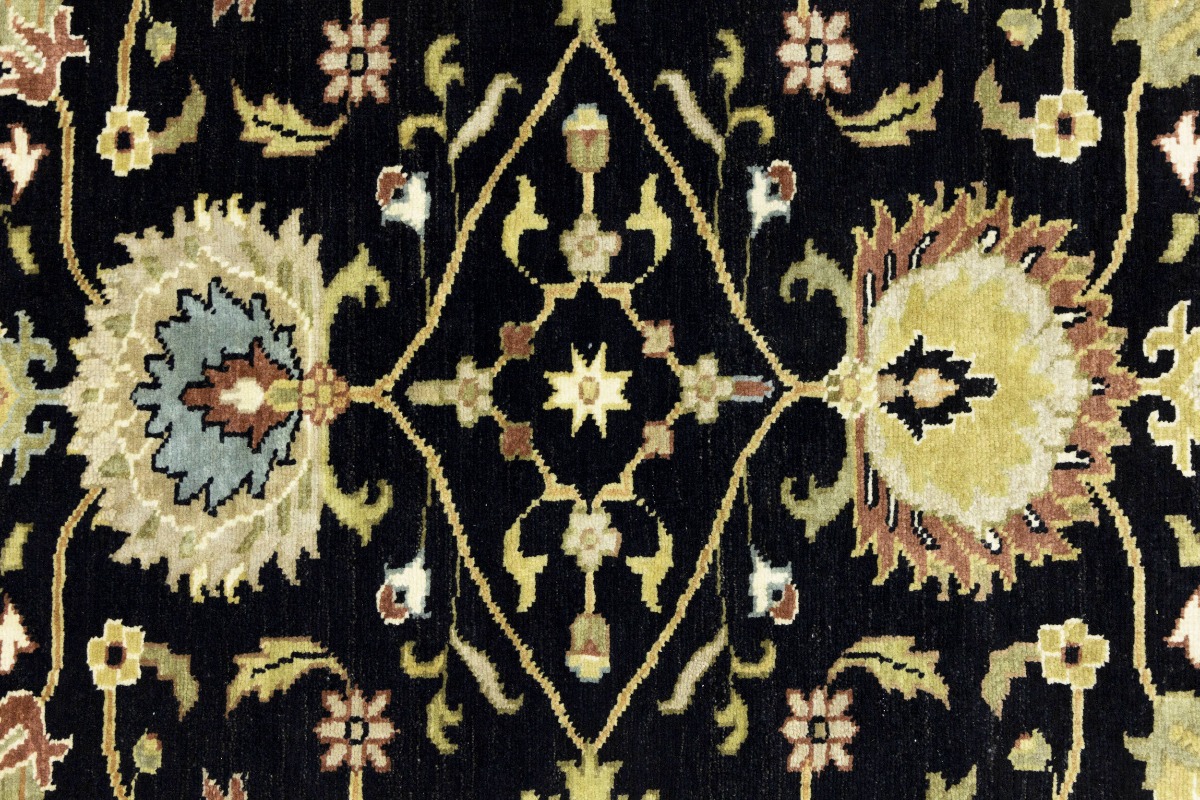 This genuine 3X5 black new Oriental rug was made by the hands of gifted weavers inspired by a variety of spectacular artistic designs, to recreate the aged look of the original piece with a richness of color and ornately patterned background field. What set this vintage style Oriental area rug from the others are the material and dye used (wool pile and cotton foundation), knot count, ancient designs, fantastic grades, and its regional historical connection: it has deep roots, from the story of the people who produced it to the meaning of the symbols and colors displayed across its canvas that have been praised for centuries. This Indian home décor carpet will be completely cozy and inviting that never will go out of style! Also, this Oriental rug would be among your most valuable treasures, it is a great investment that accrues value over time, and it will last for generations because was woven with high-quality, all-natural wool. Environmentally friendly, opulent yet affordable; this rug will give you a thorough amount of character to help define your living space with elegance and warmth that will capture the eyes and attention of your audience (homeowners, designers, decorators, family and friends). OT-9054