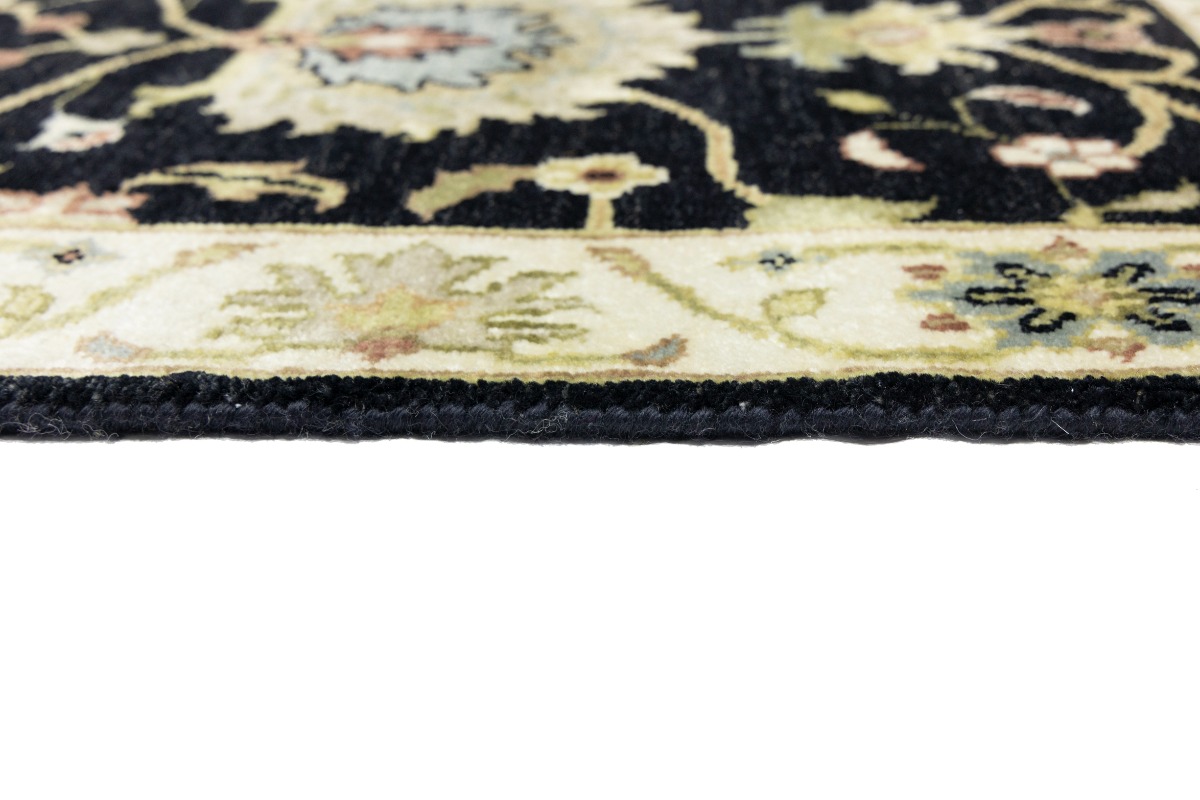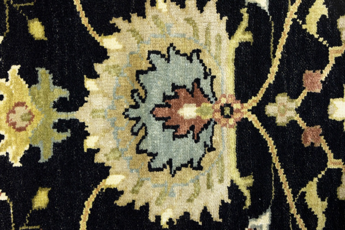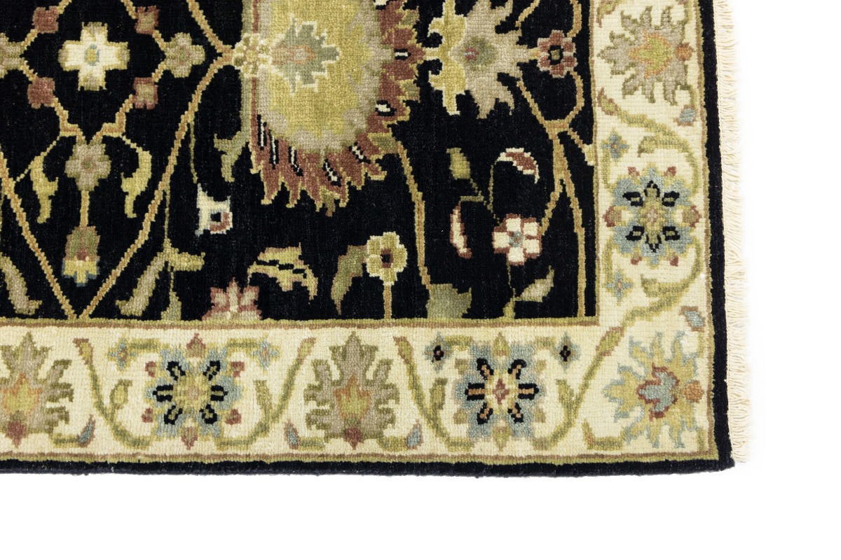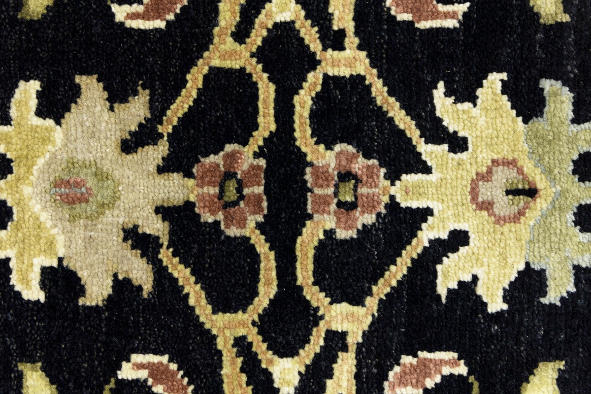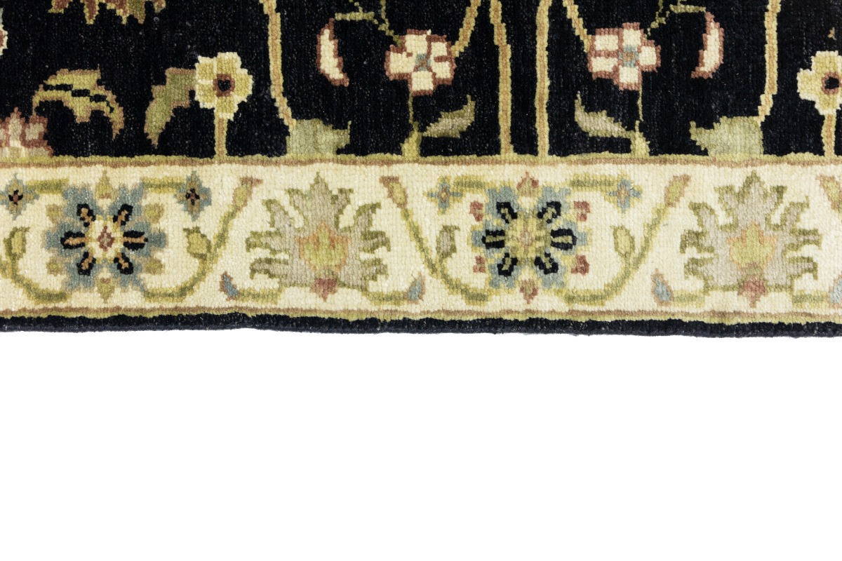 This authentic 3X8 black new Oriental runner was masterly knotted by the hands of weavers inspired by a variety of wonderful artistic designs, to recreate the aged look of the original piece with a richness of color and intricate patterned background field. What set this vintage style Oriental area runner from the others are the material and dye used (wool pile and cotton foundation), knot count, antique designs, fantastic grades, and its regional historical connection: it has deep roots, from the story of the people who produced it to the meaning of the symbols and colors displayed across its canvas that have been praised for centuries. This Indian home décor carpet will be completely cozy and inviting that never will go out of style! Also, this Oriental rug would be among your most valuable treasures, it is a great investment that accrues value over time, and it will last for generations because was woven with high-quality, all-natural wool. Environmentally friendly, opulent yet affordable; this runner will give you a thorough amount of character to help define your living space with luxury and warmth that will capture the eyes and attention of your audience (homeowners, designers, decorators, family and friends). OT-9057