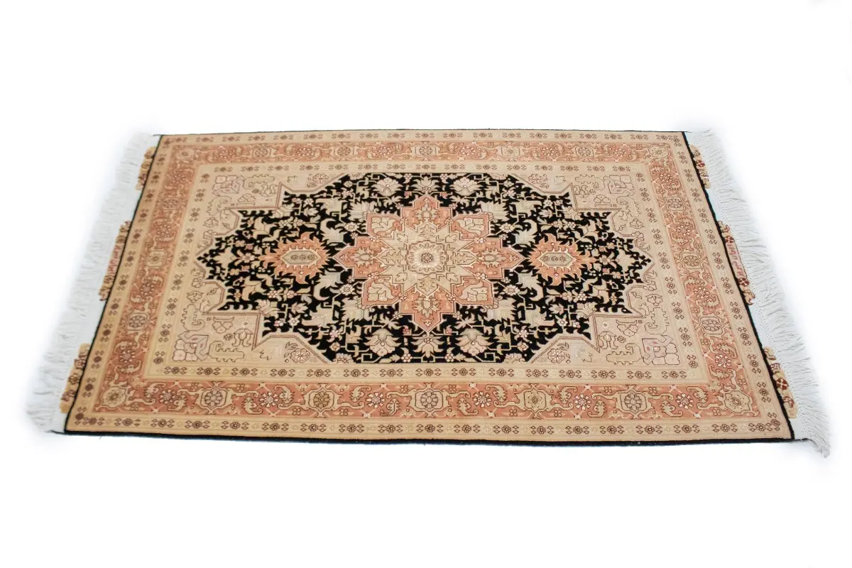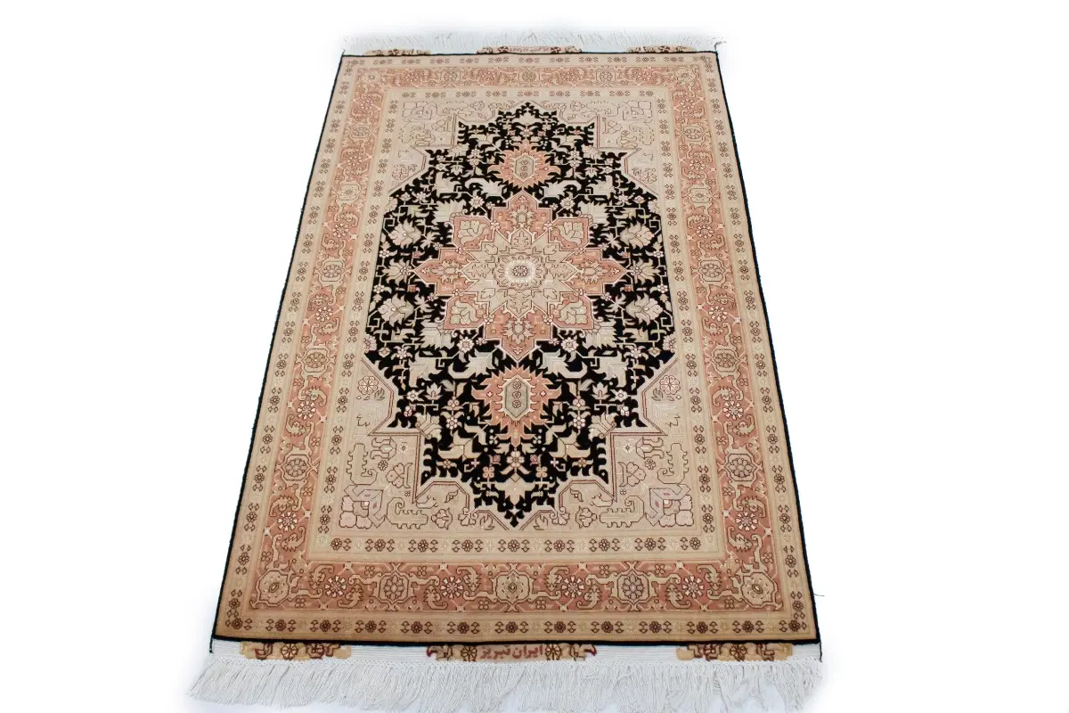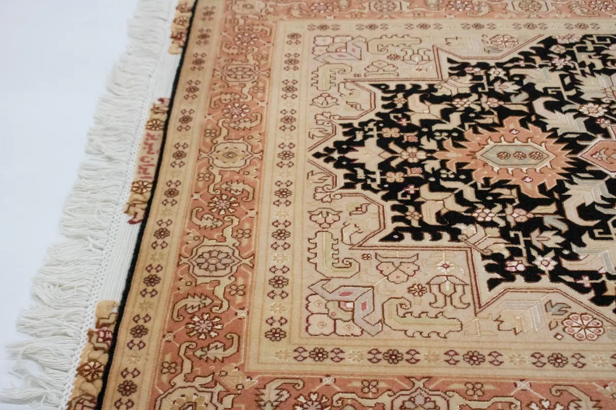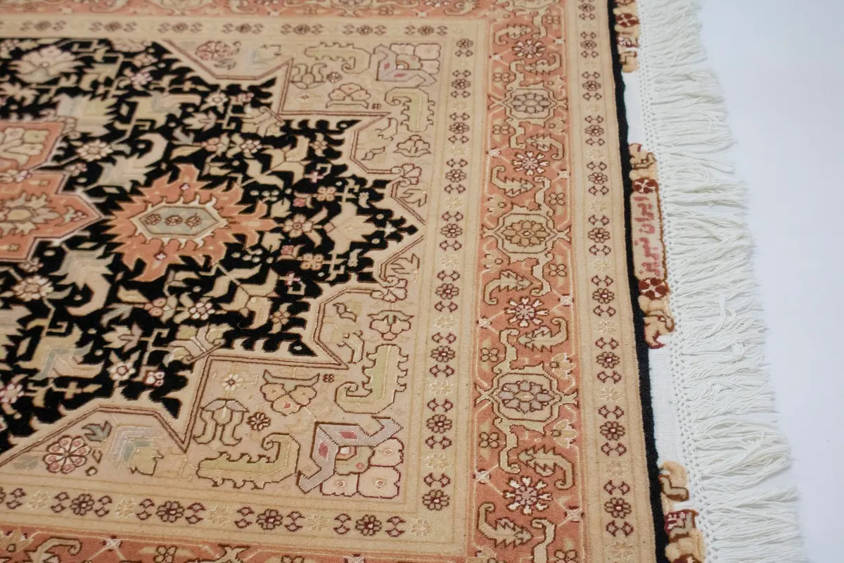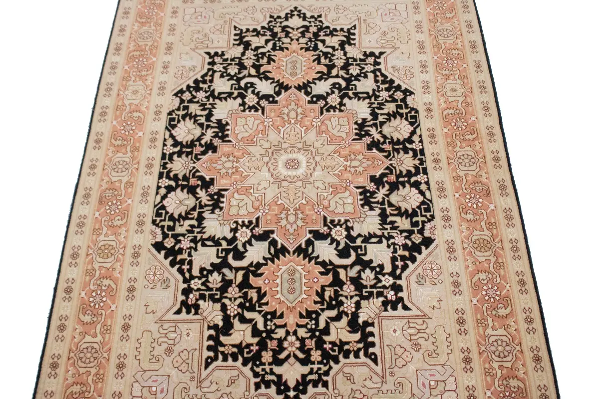 Black Traditional 3X6 Floral Tabriz Persian Oriental Rug