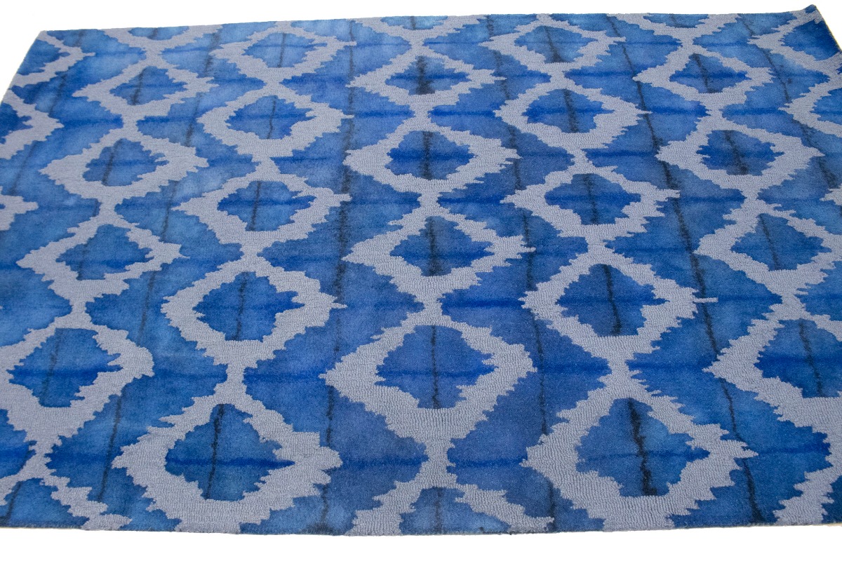 Blue Abstract 5X8 Hand-Tufted Modern Rug