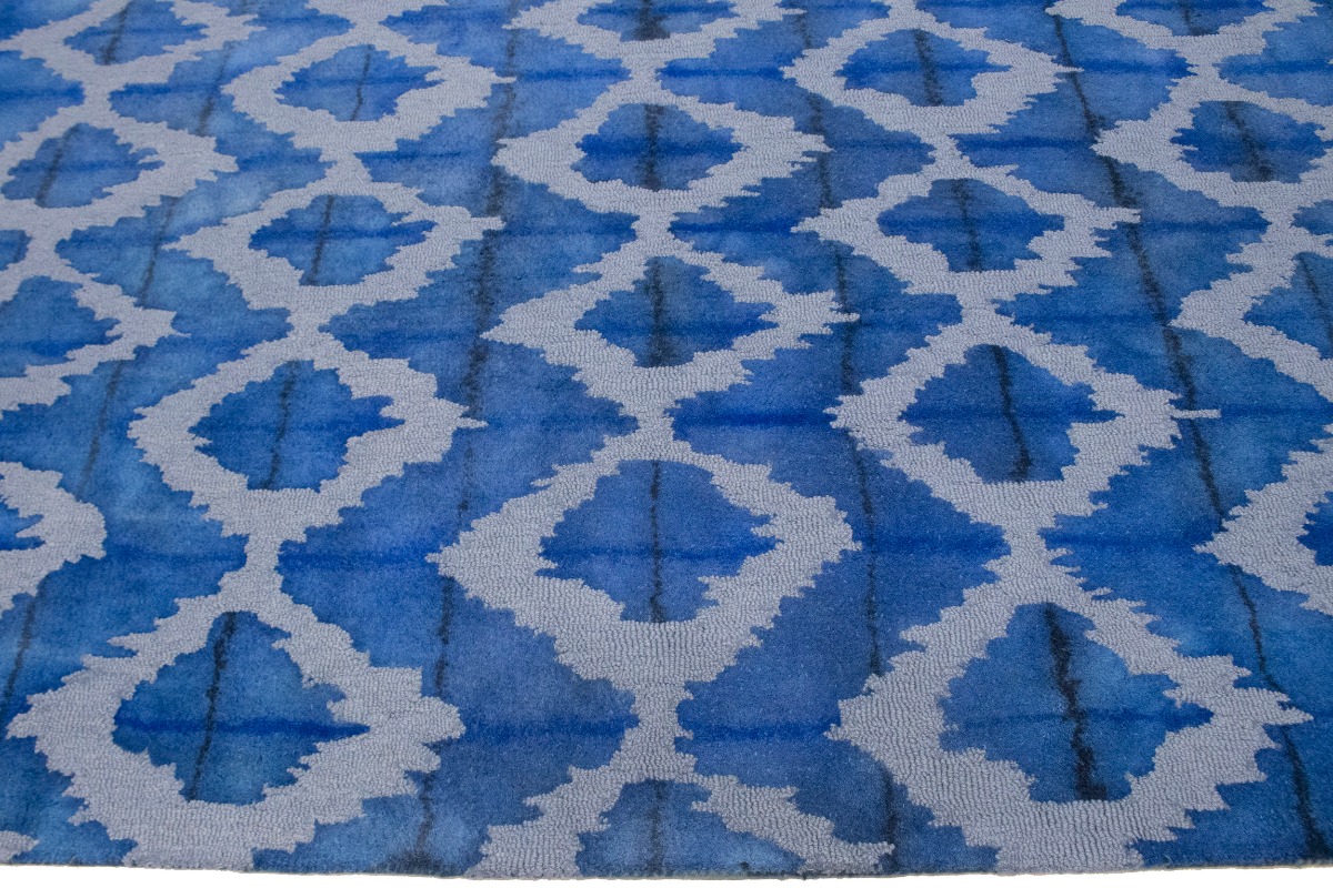 Blue Abstract Design Living Room Decor 5X8 Hand-Tufted Modern Rug Wool Carpet