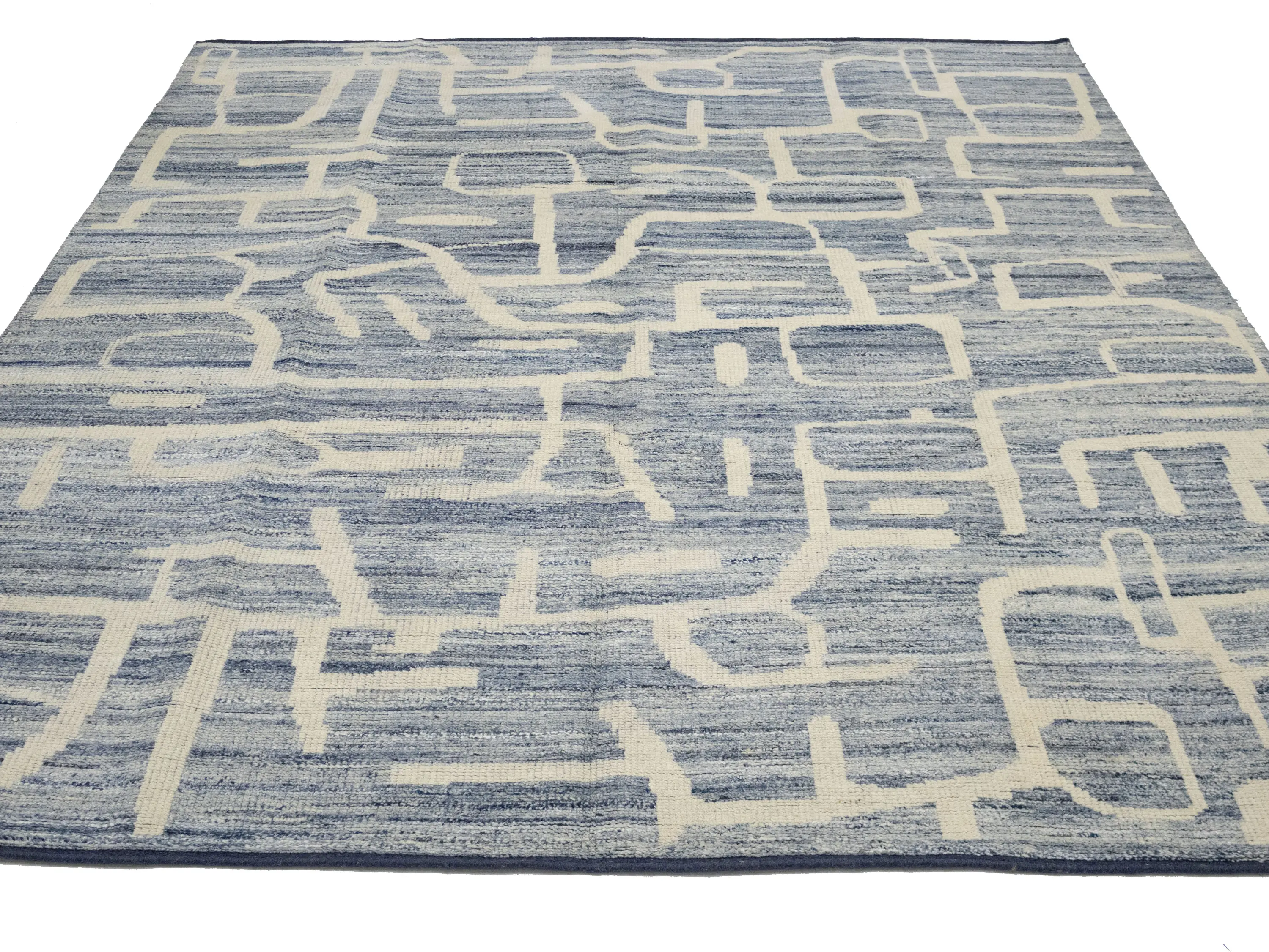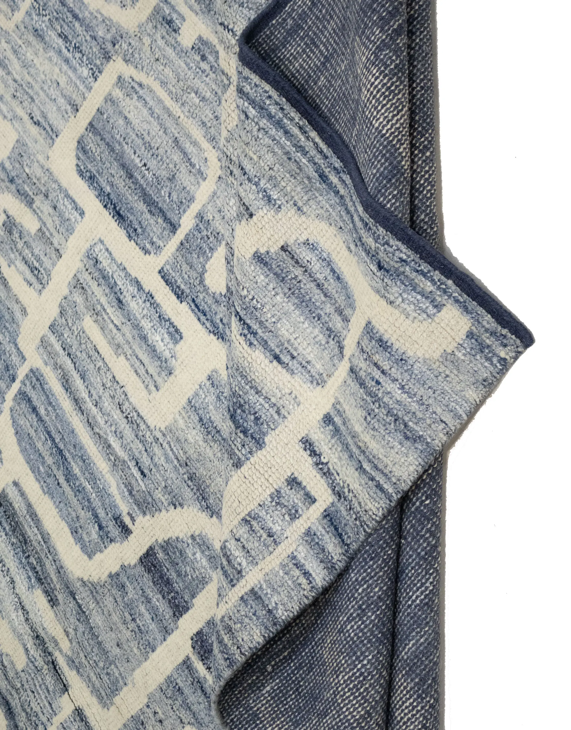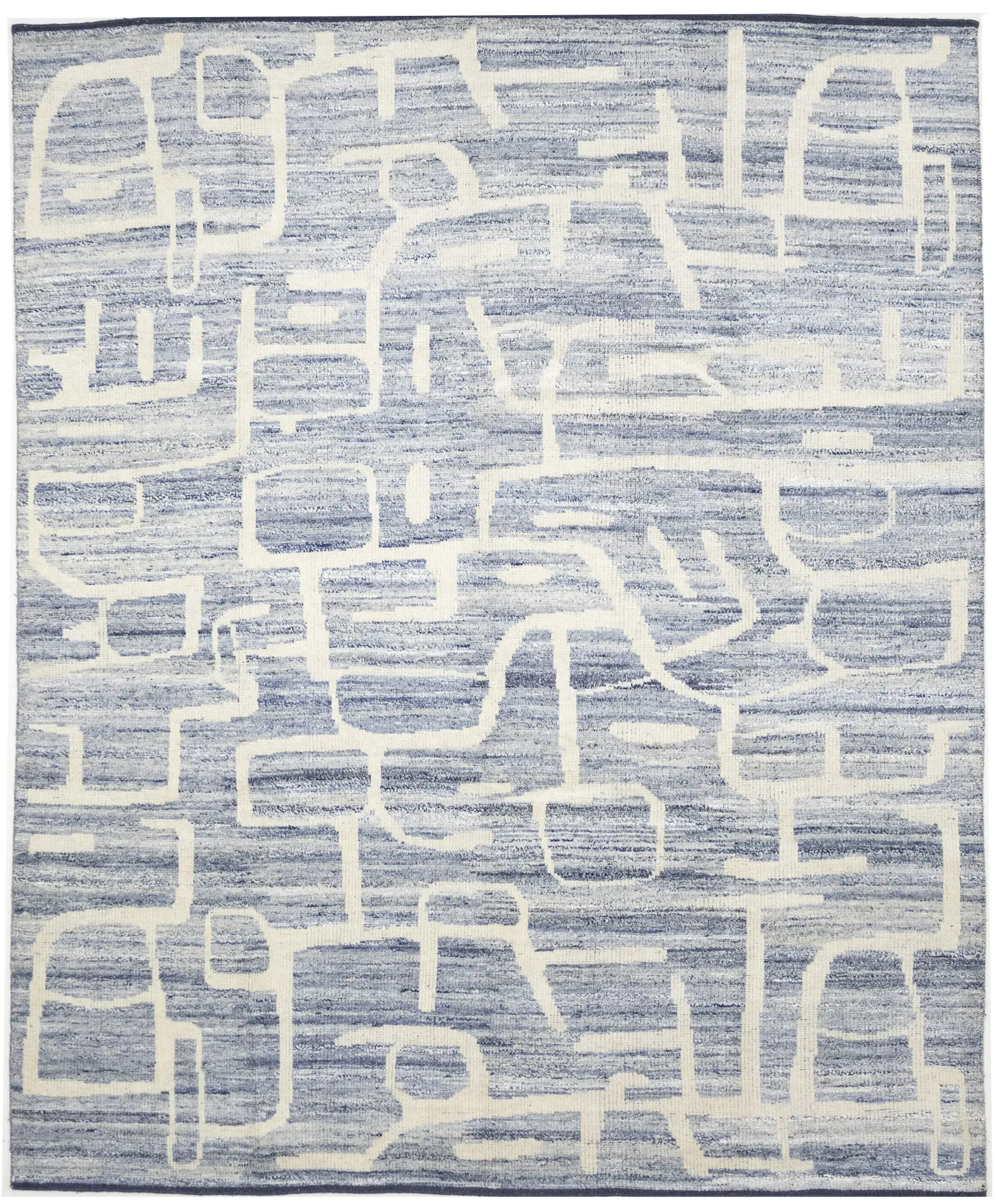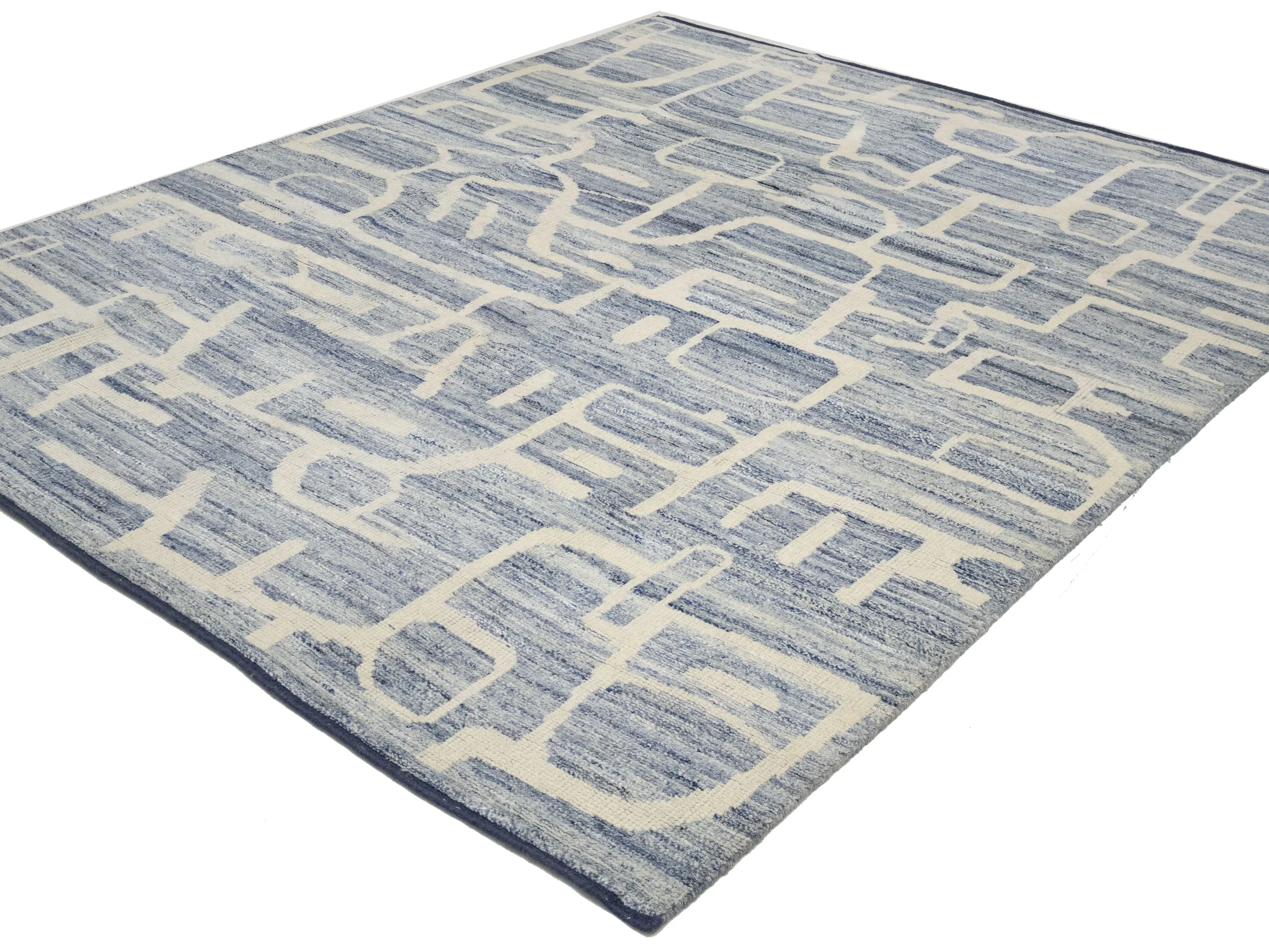 - Modern hand-knotted rug that blends artisanal weaving with contemporary design