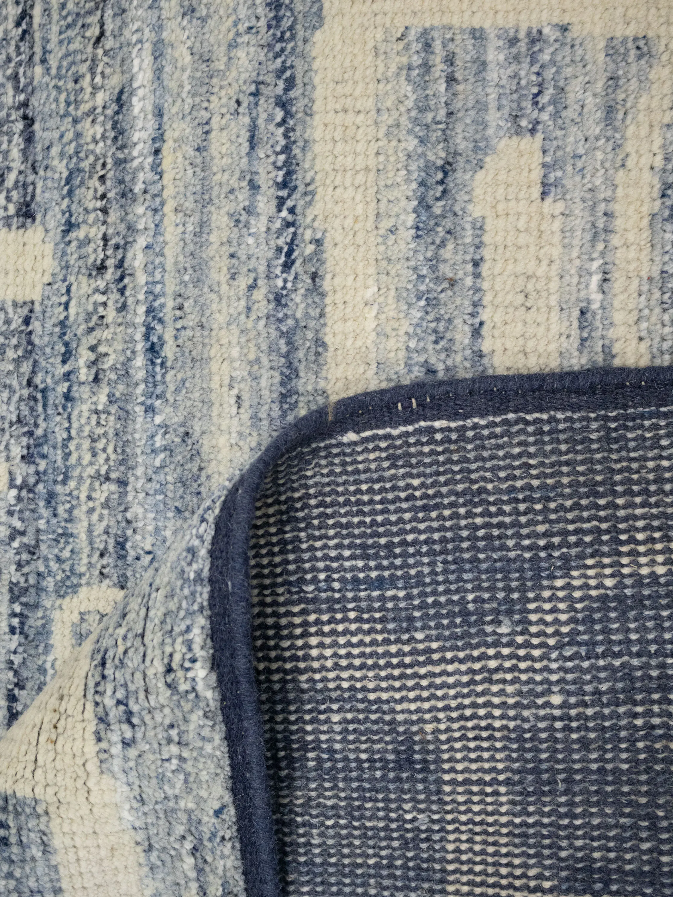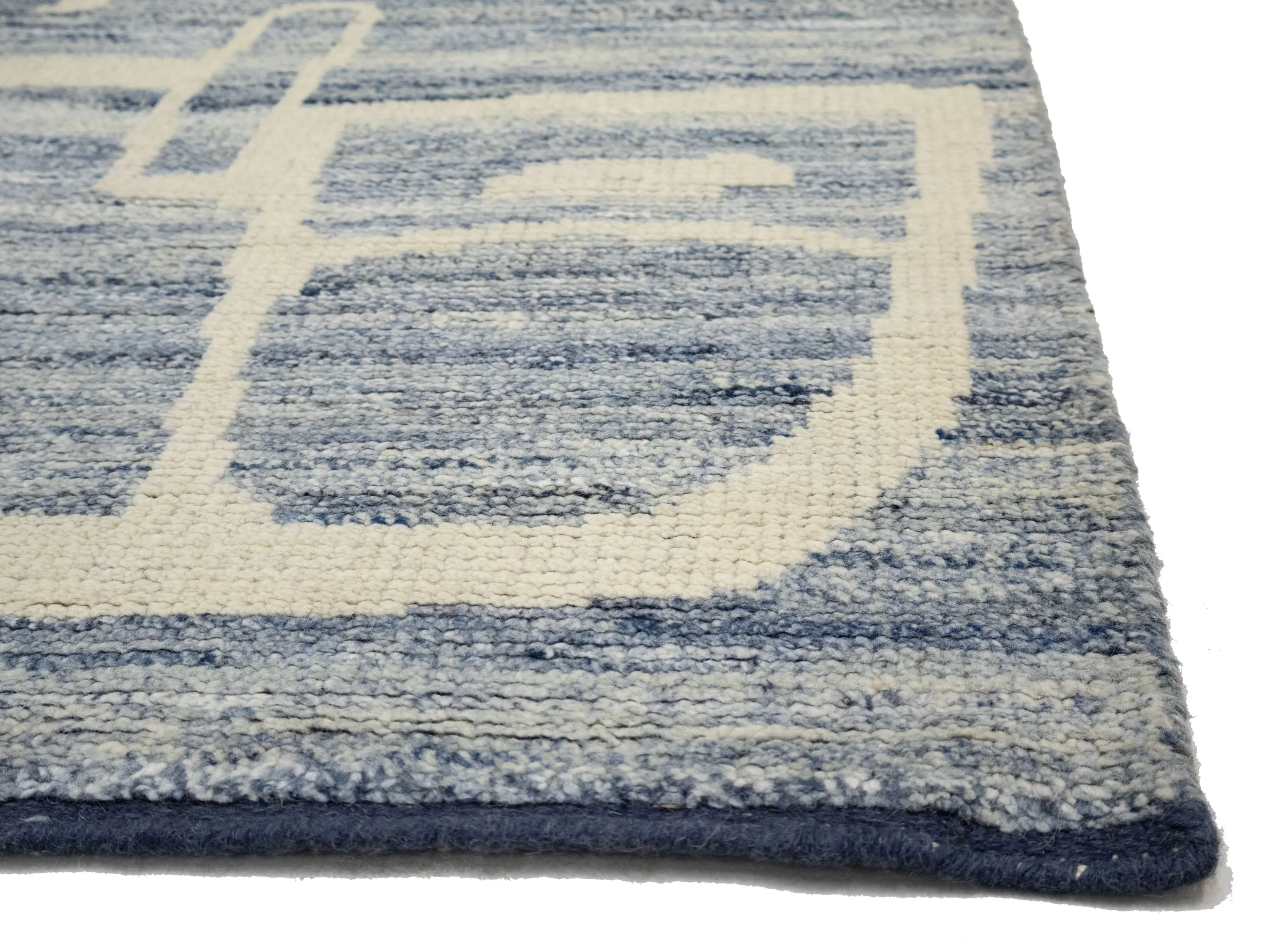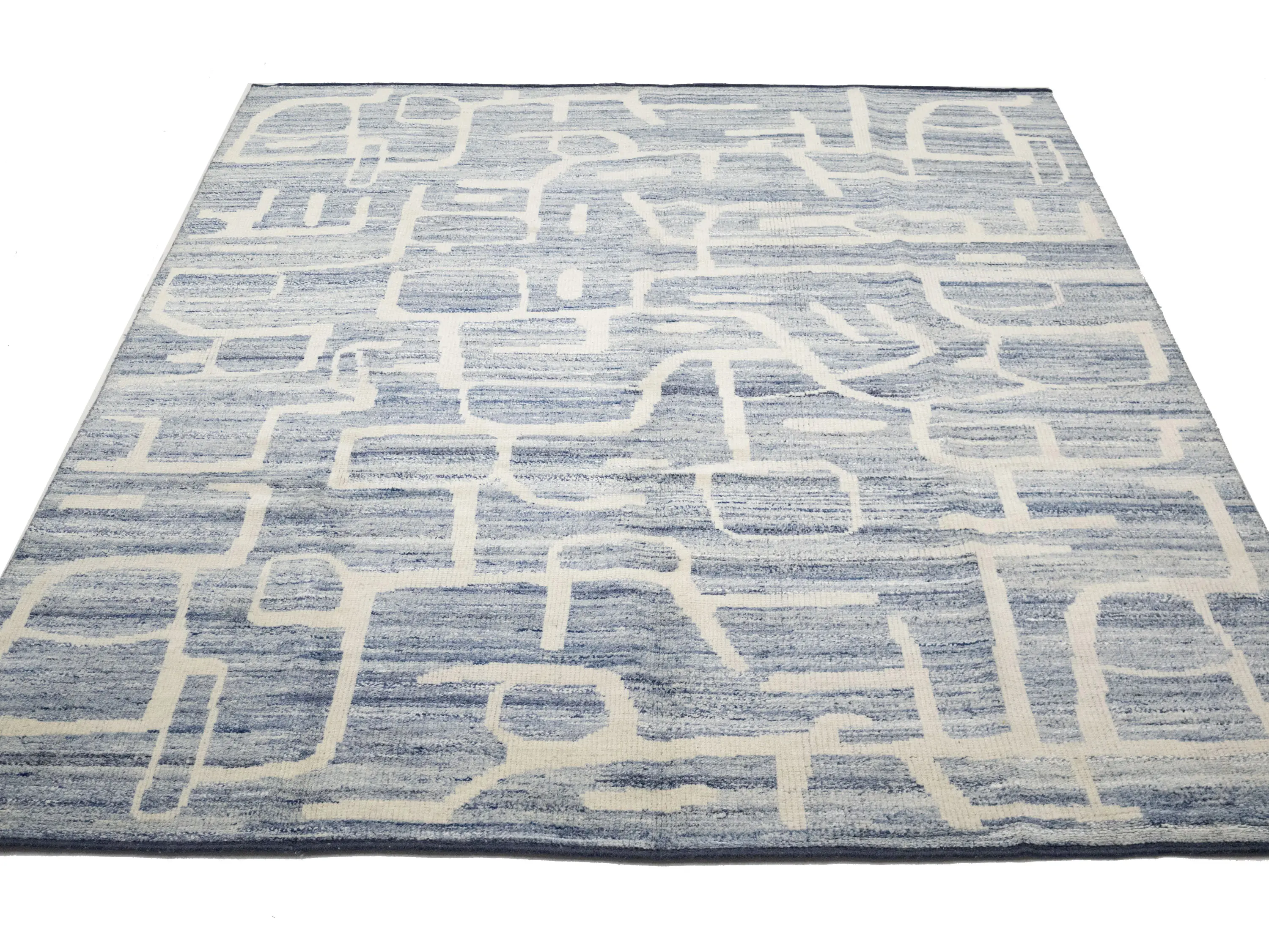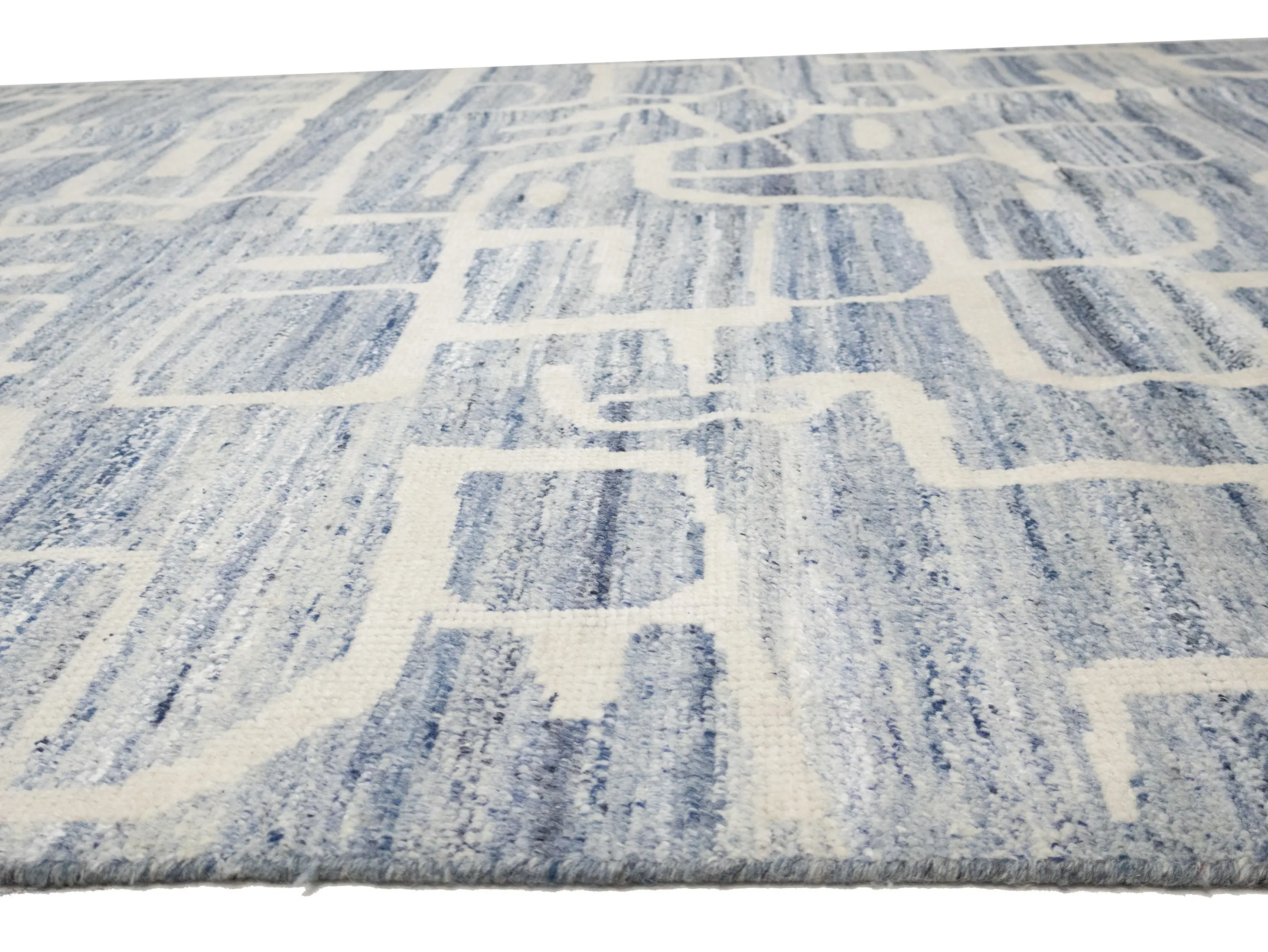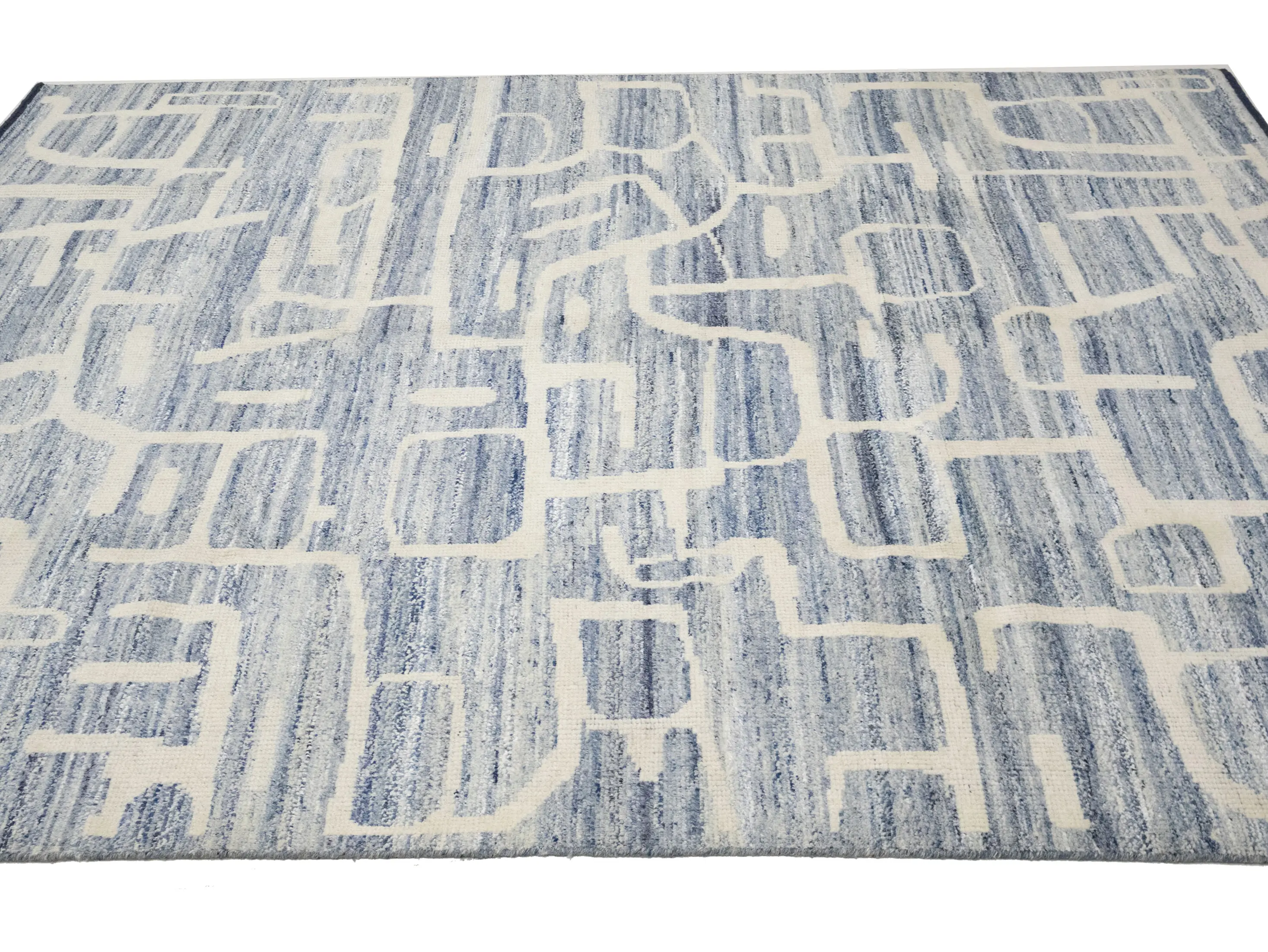 - Modern hand-knotted rug that blends artisanal weaving with contemporary design