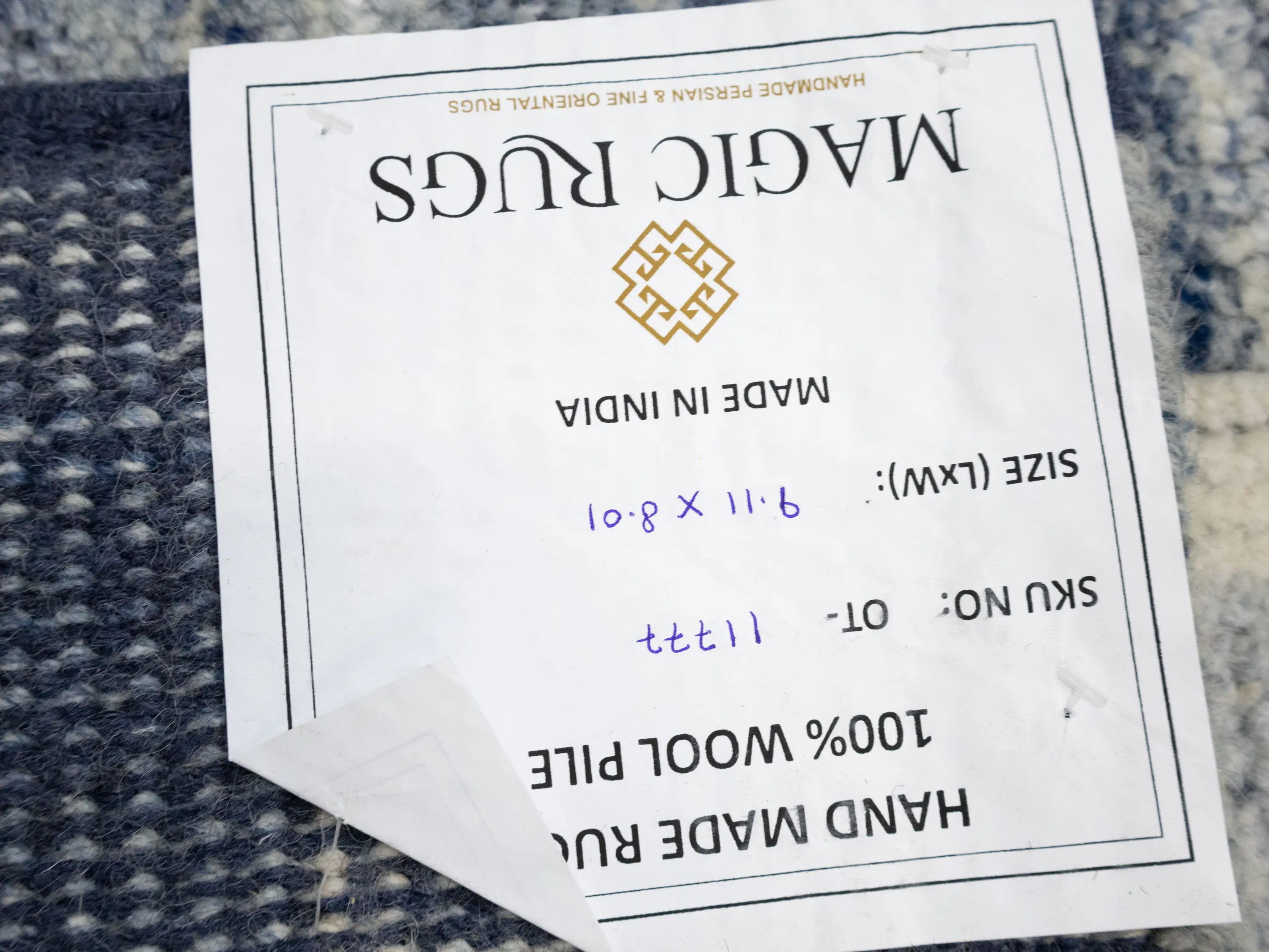 - Hand-knotted at 100 knots per square inch, delivering crisp detailing and durability; in excellent, brand-new condition with high-low relief for added depth