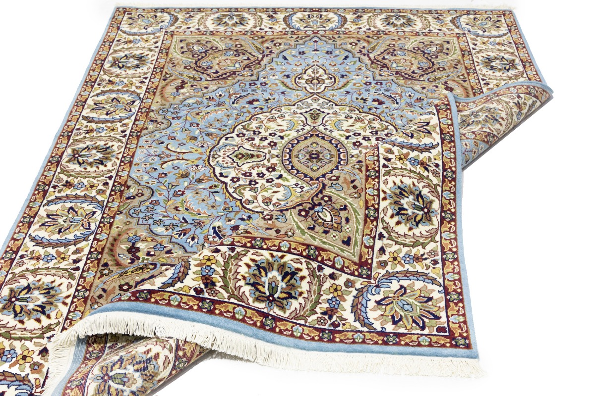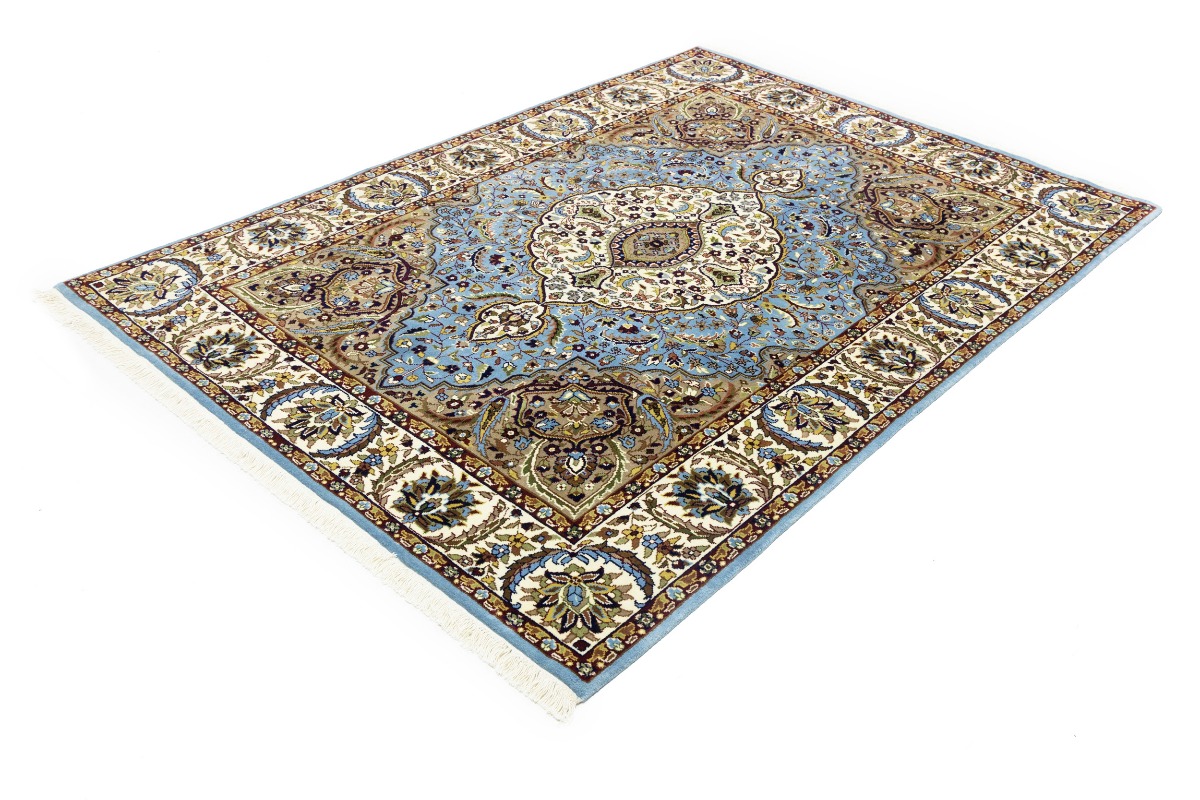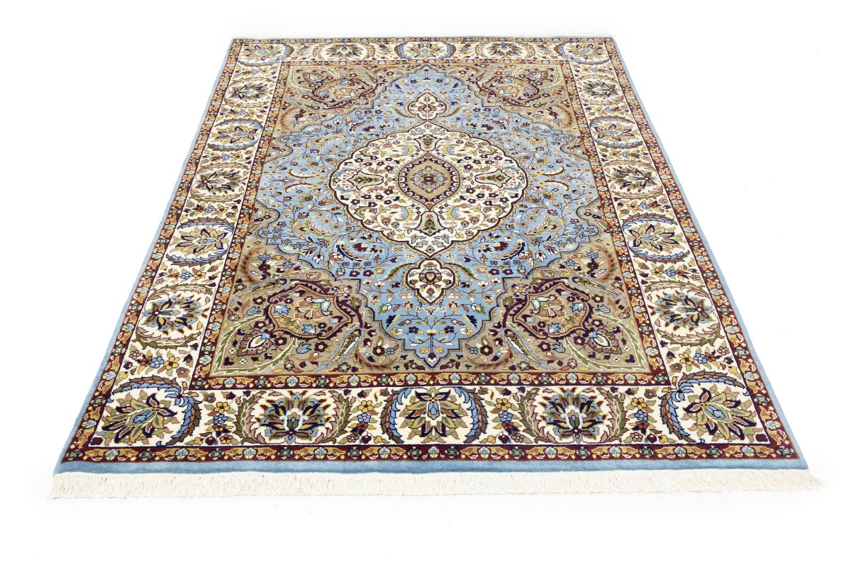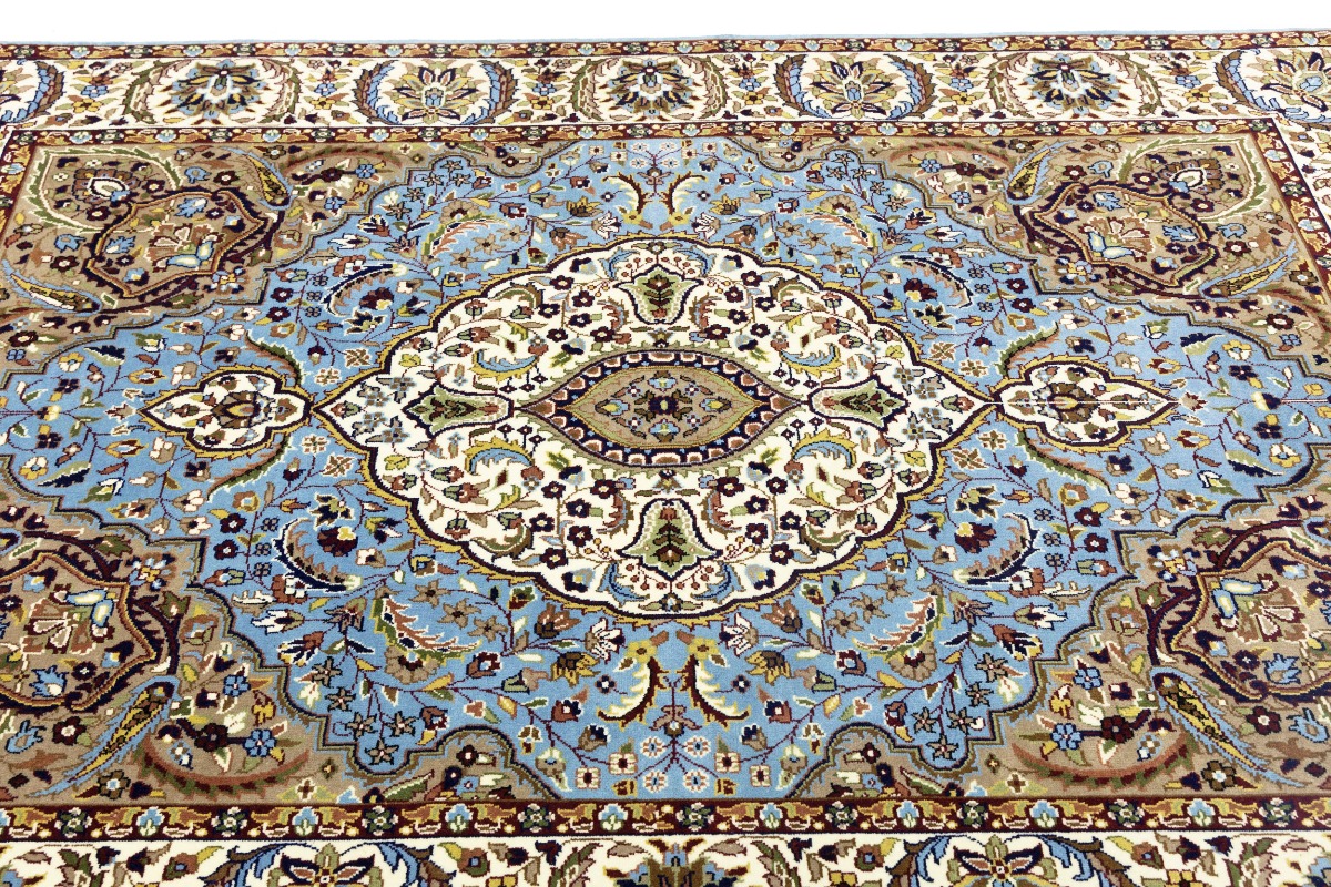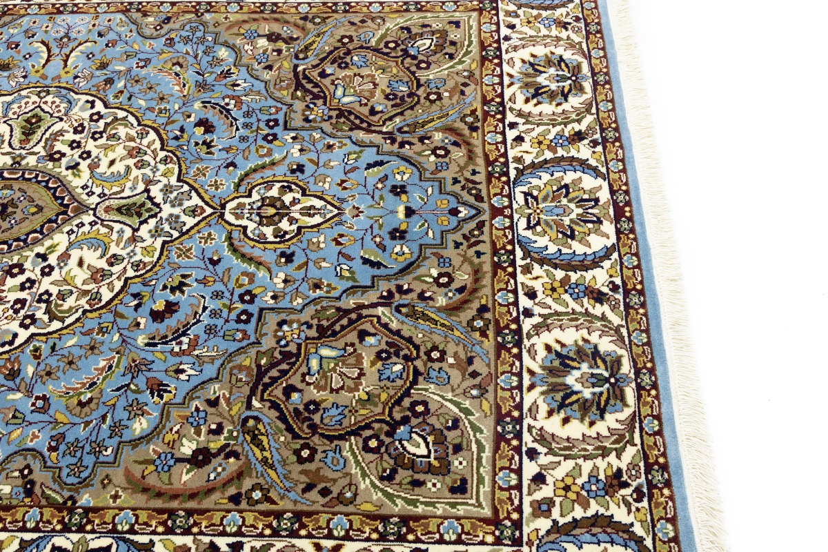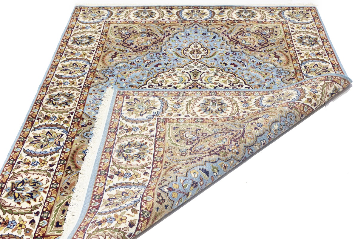 Handmade 6X8 blue oriental rug made with natural dyes (fine wool pile and cotton foundation), superior knot count, and alluring ancient designs. This Oriental rug never will go out of style and would be among your most valuable treasures.