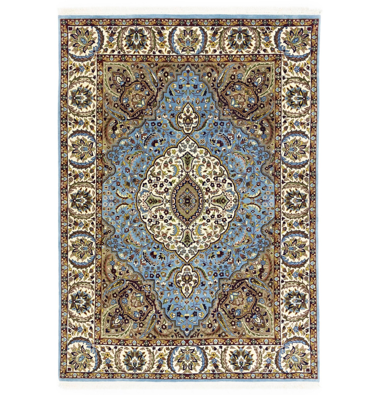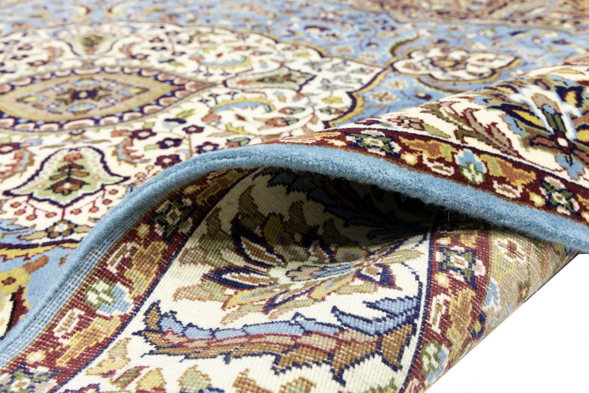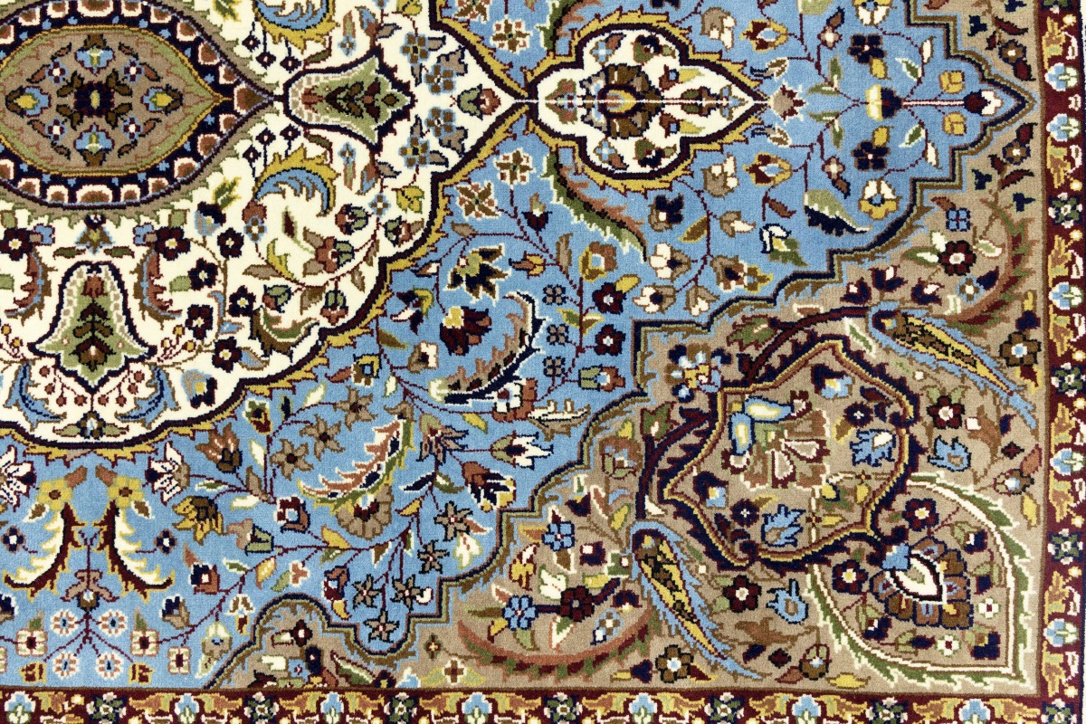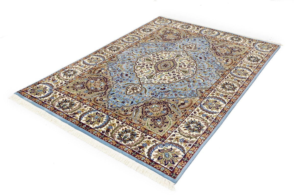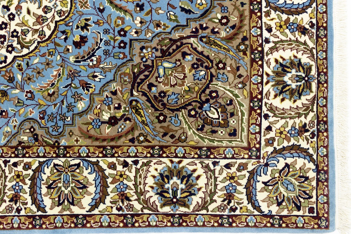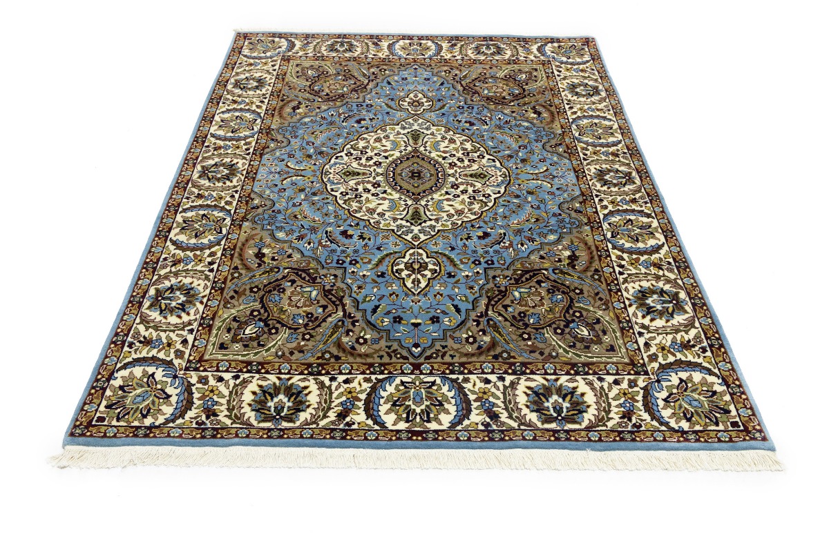 Handmade 6X8 blue oriental rug made with natural dyes (fine wool pile and cotton foundation), superior knot count, and alluring ancient designs. This Oriental rug never will go out of style and would be among your most valuable treasures.
