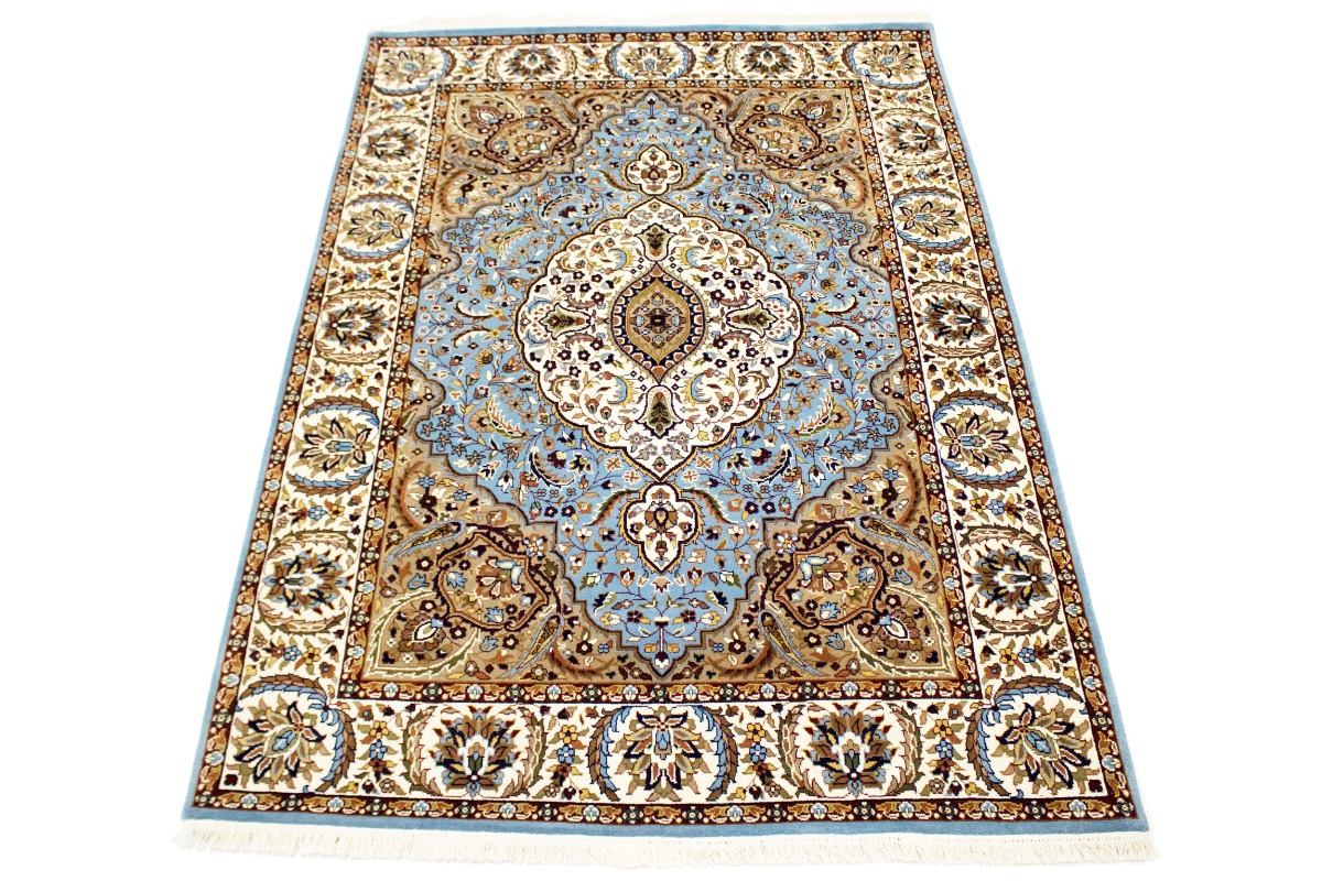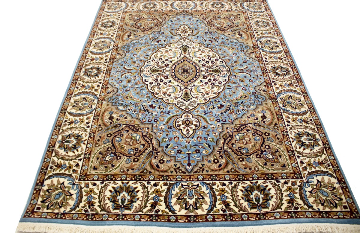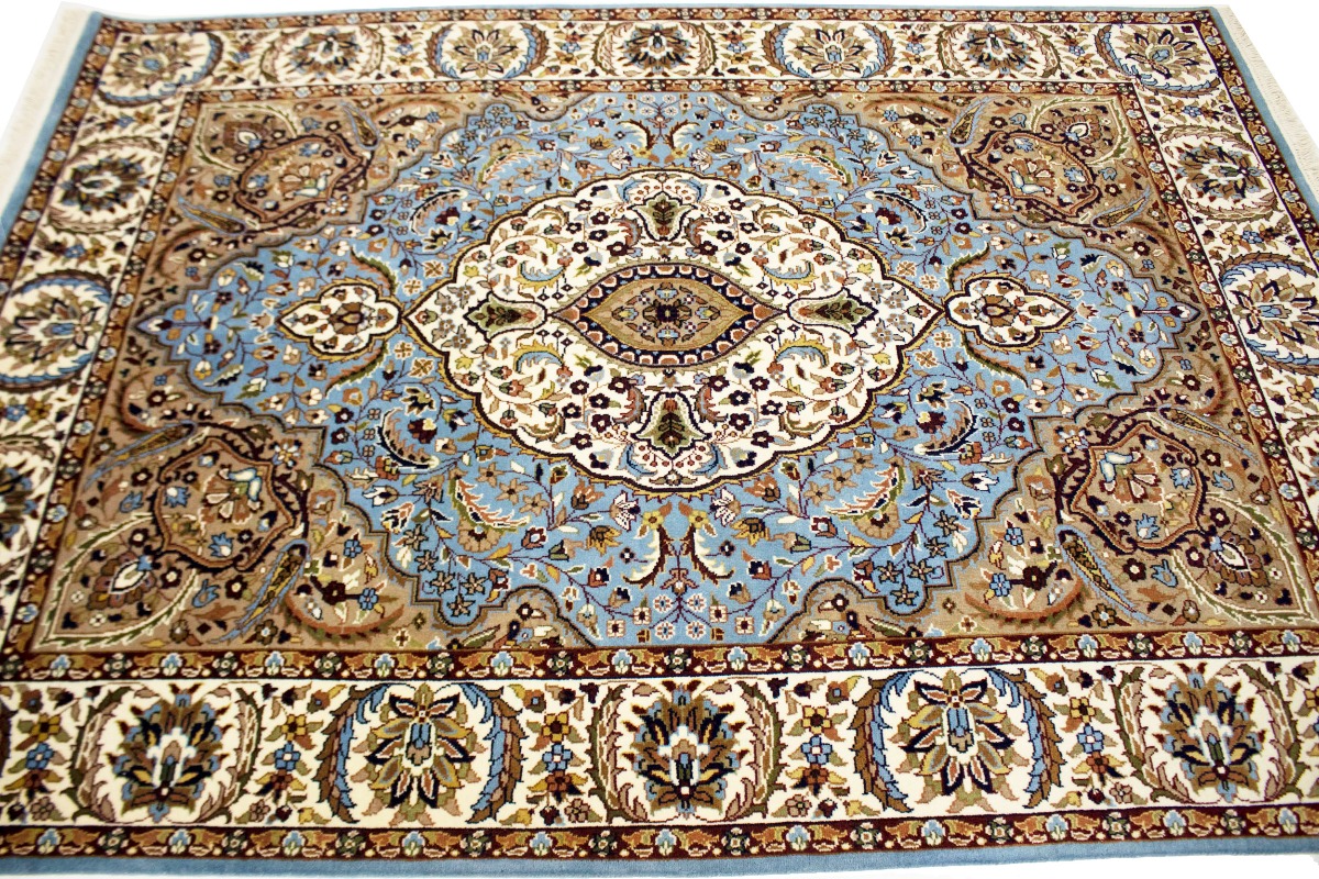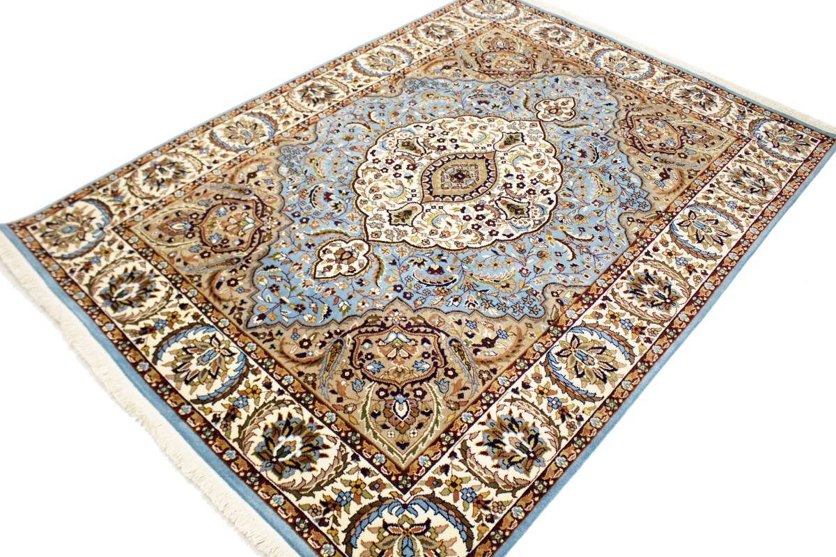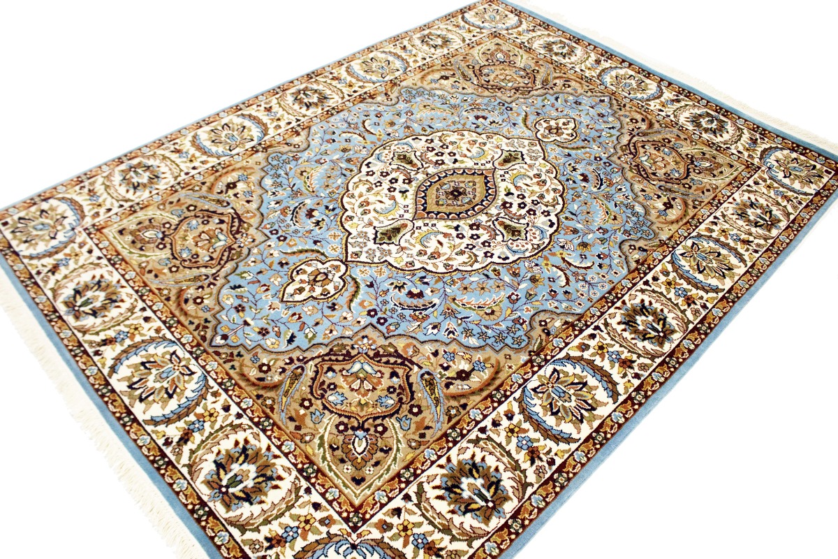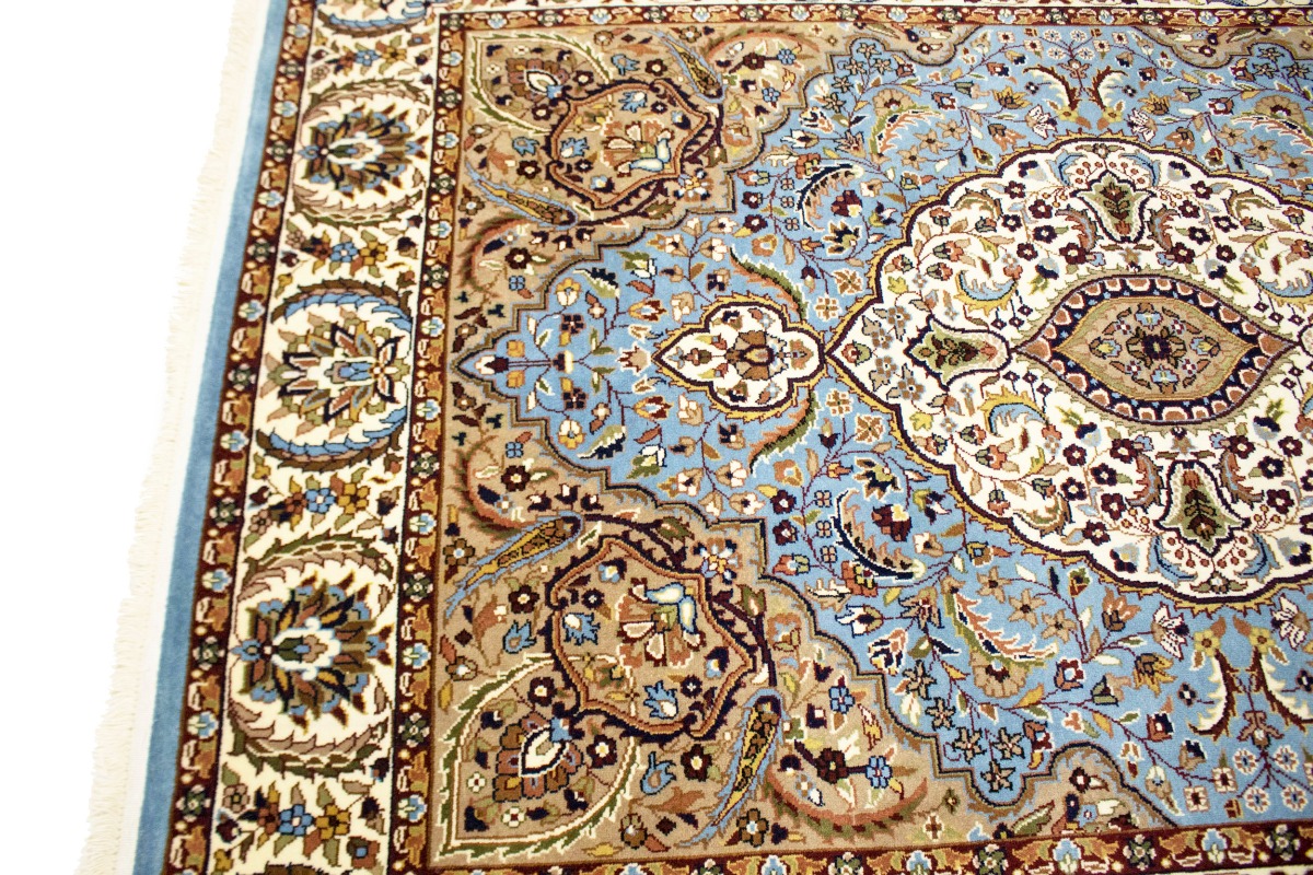 Hand Knotted 6X8 blue oriental rug made with natural dyes (fine wool pile and cotton foundation), superior knot count, and appealing ancient designs. This Oriental rug never will go out of style and would be among your most valuable treasures.