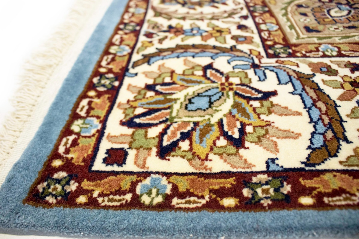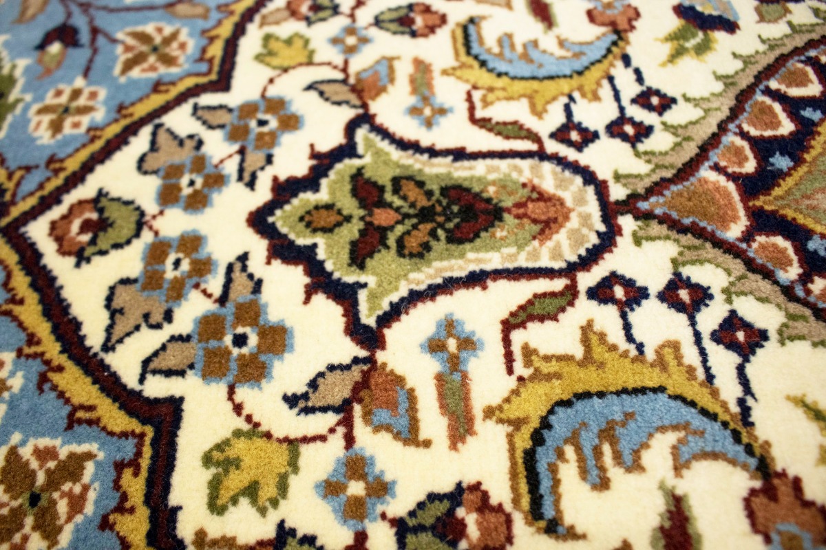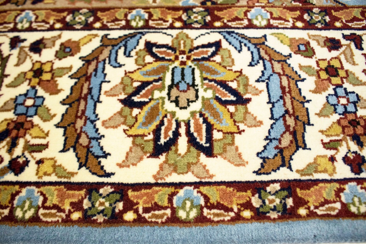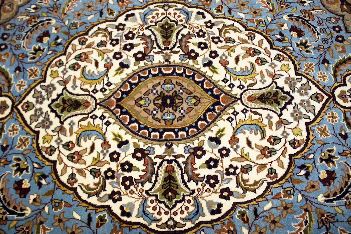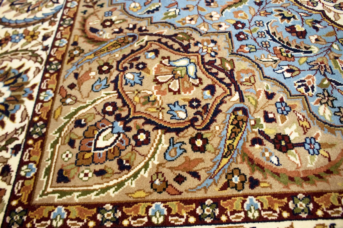 Hand Knotted 6X8 blue oriental rug made with natural dyes (fine wool pile and cotton foundation), superior knot count, and appealing ancient designs. This Oriental rug never will go out of style and would be among your most valuable treasures.