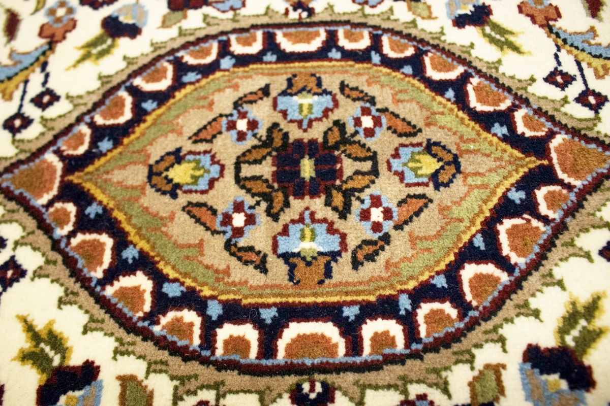 This original 6X8 blue new Oriental rug was finely knotted by the hands of weavers influenced by a variety of amazing artistic designs, to recreate the aged look of the exceptional piece with a richness of color and embellished background field. What set this vintage style Oriental area rug from the others are the material and dye used (wool pile and cotton foundation), knot count, antique designs, fantastic grades, and its regional historical connection: it has deep roots, from the story of the people who produced it to the meaning of the symbols and colors displayed across its canvas that have been praised for centuries. This Indian home décor carpet will be completely cozy and inviting that never will go out of style! Also, this Oriental rug would be among your most valuable treasures, it is a great investment that increase in value over time, and it will last a lifetime because was woven with high-quality, all-natural wool. Eco-friendly, opulent yet affordable; this rug will give you an extra pop of character to help define your home environment with luxury and warmth that will capture the eyes and attention of your audience (homeowners, designers, decorators, family and friends). OT-4832