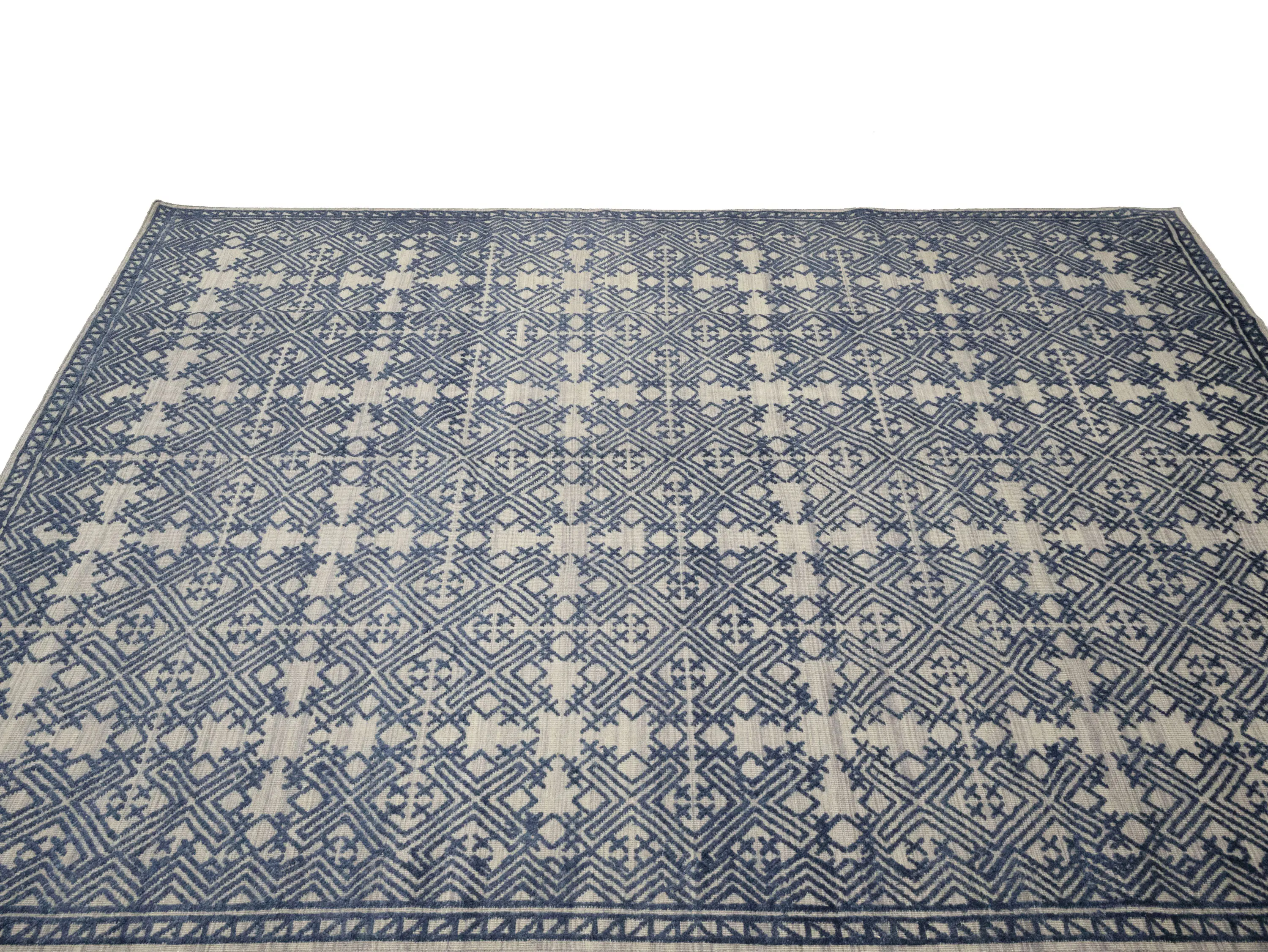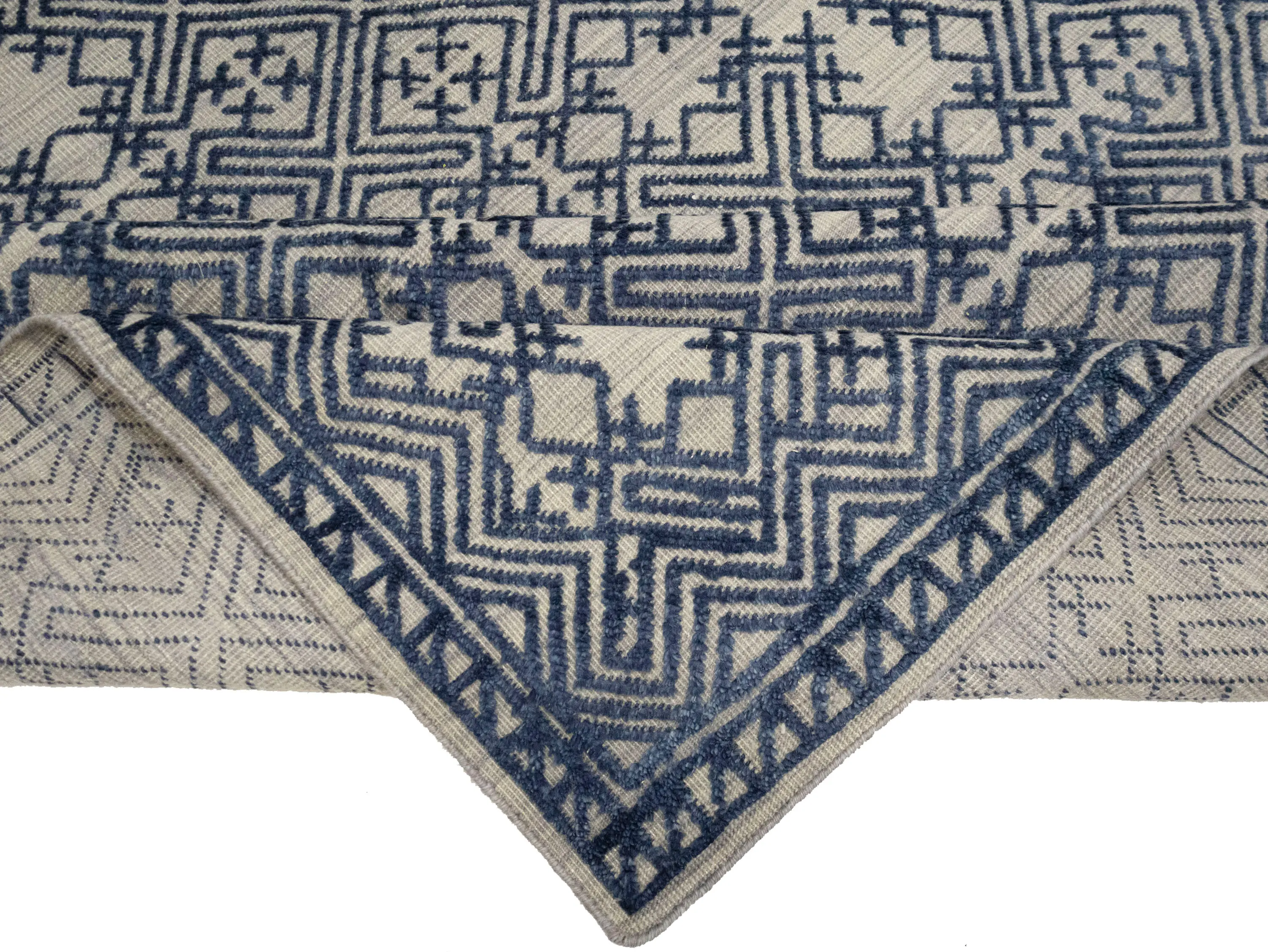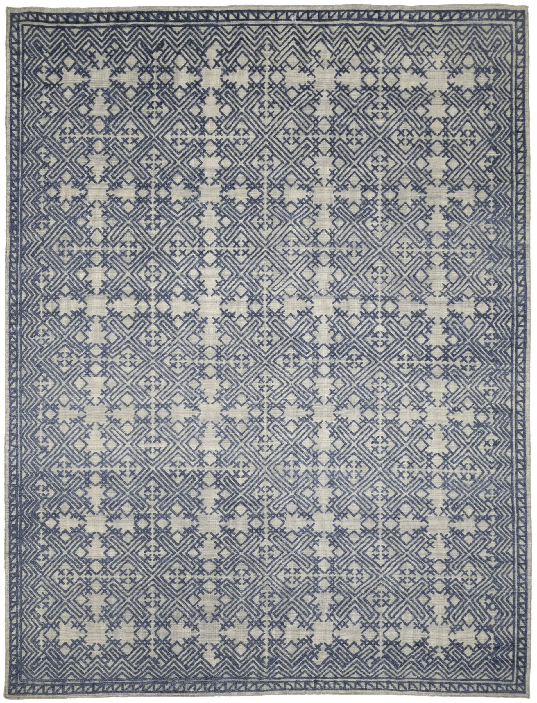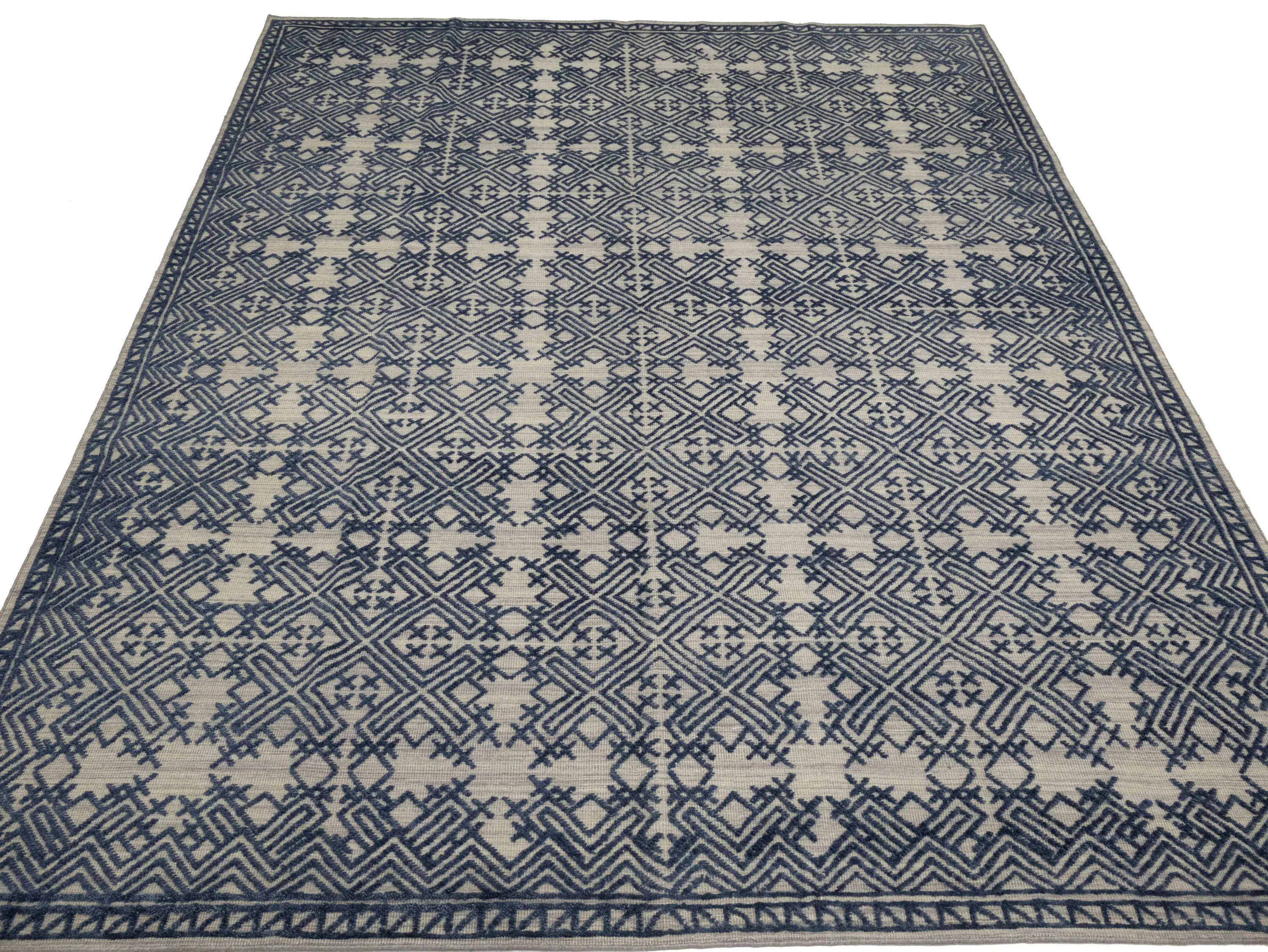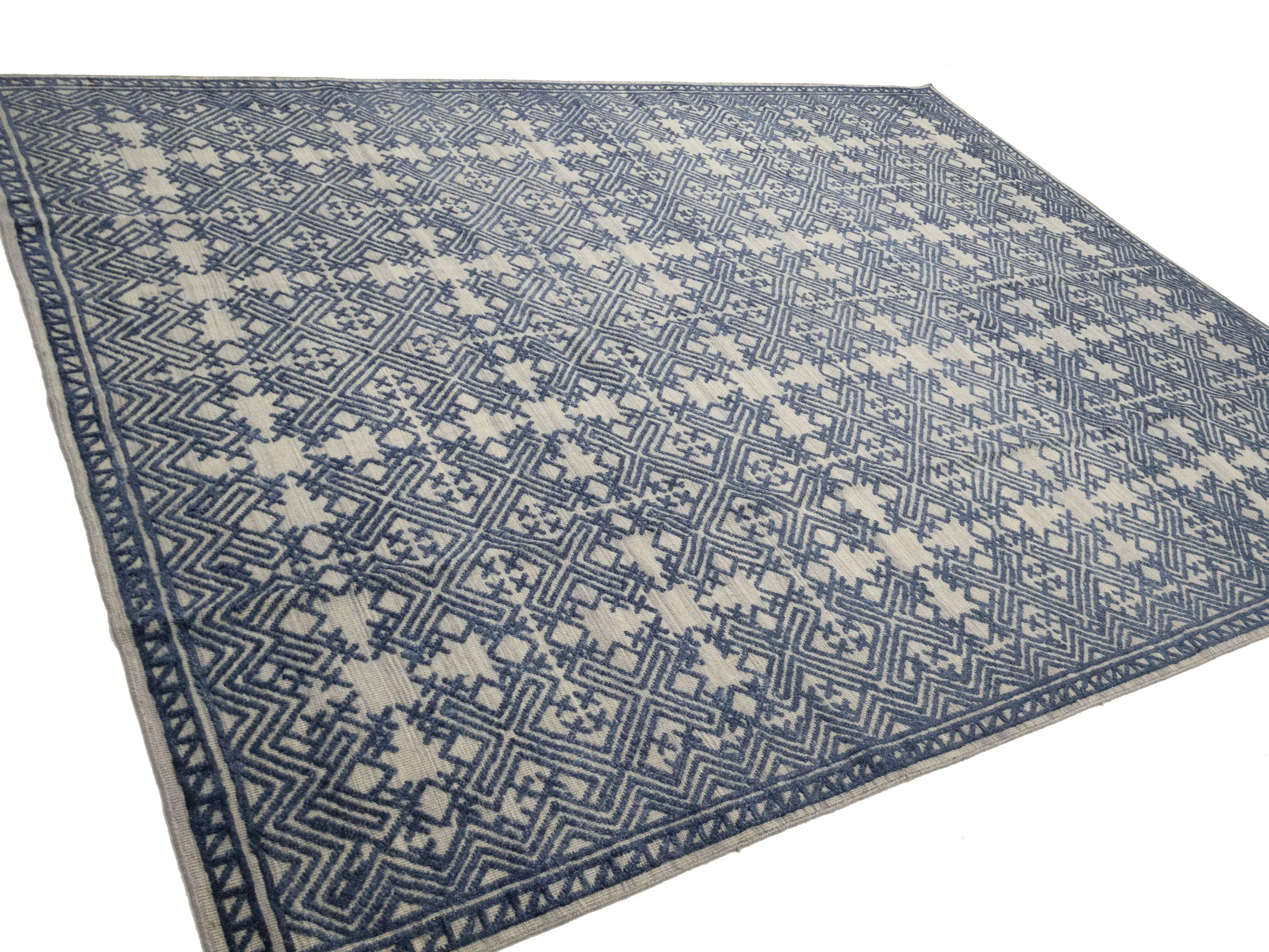 Blue & Cream Geometric 9X12 Modern Oriental Rug