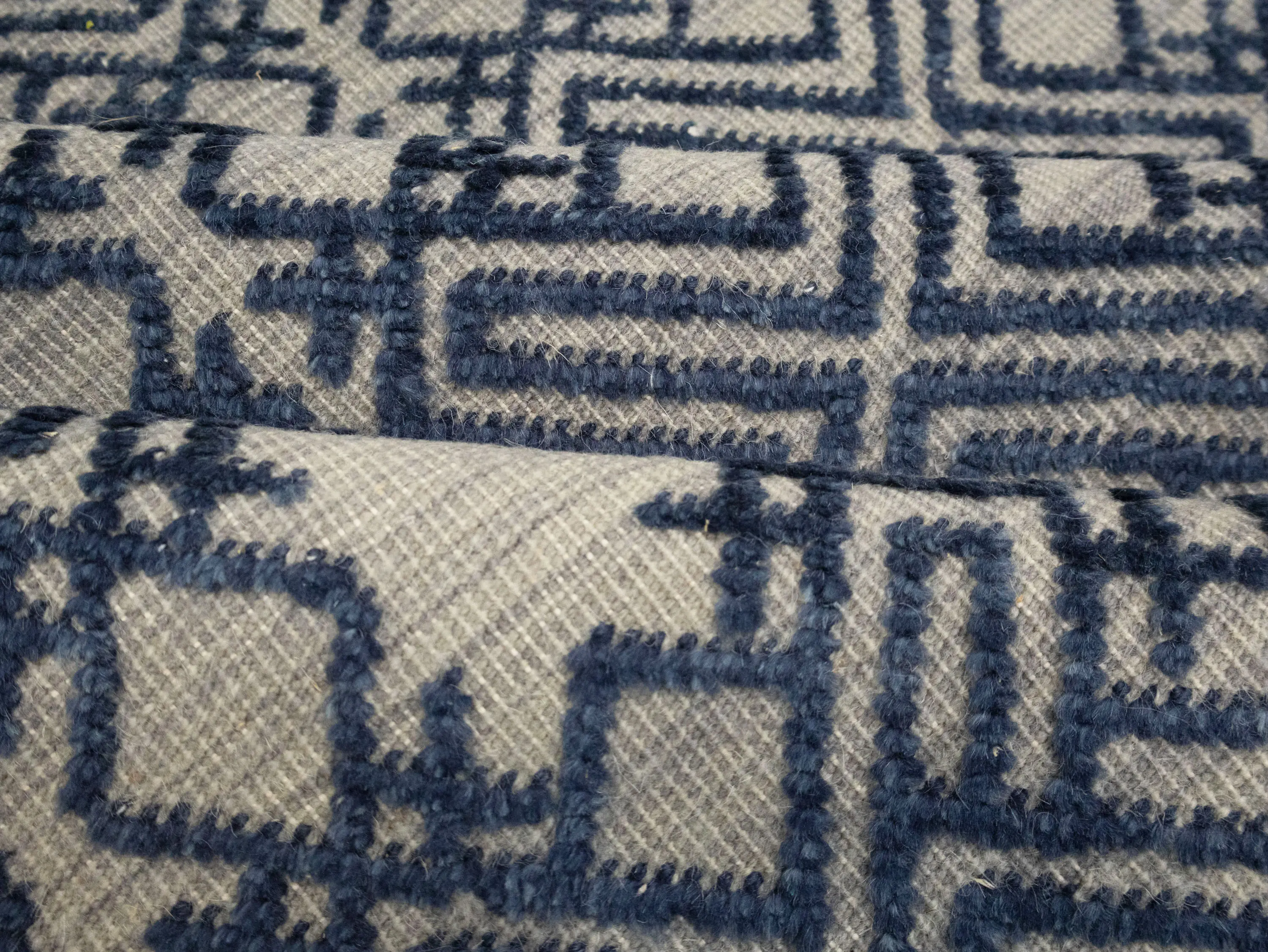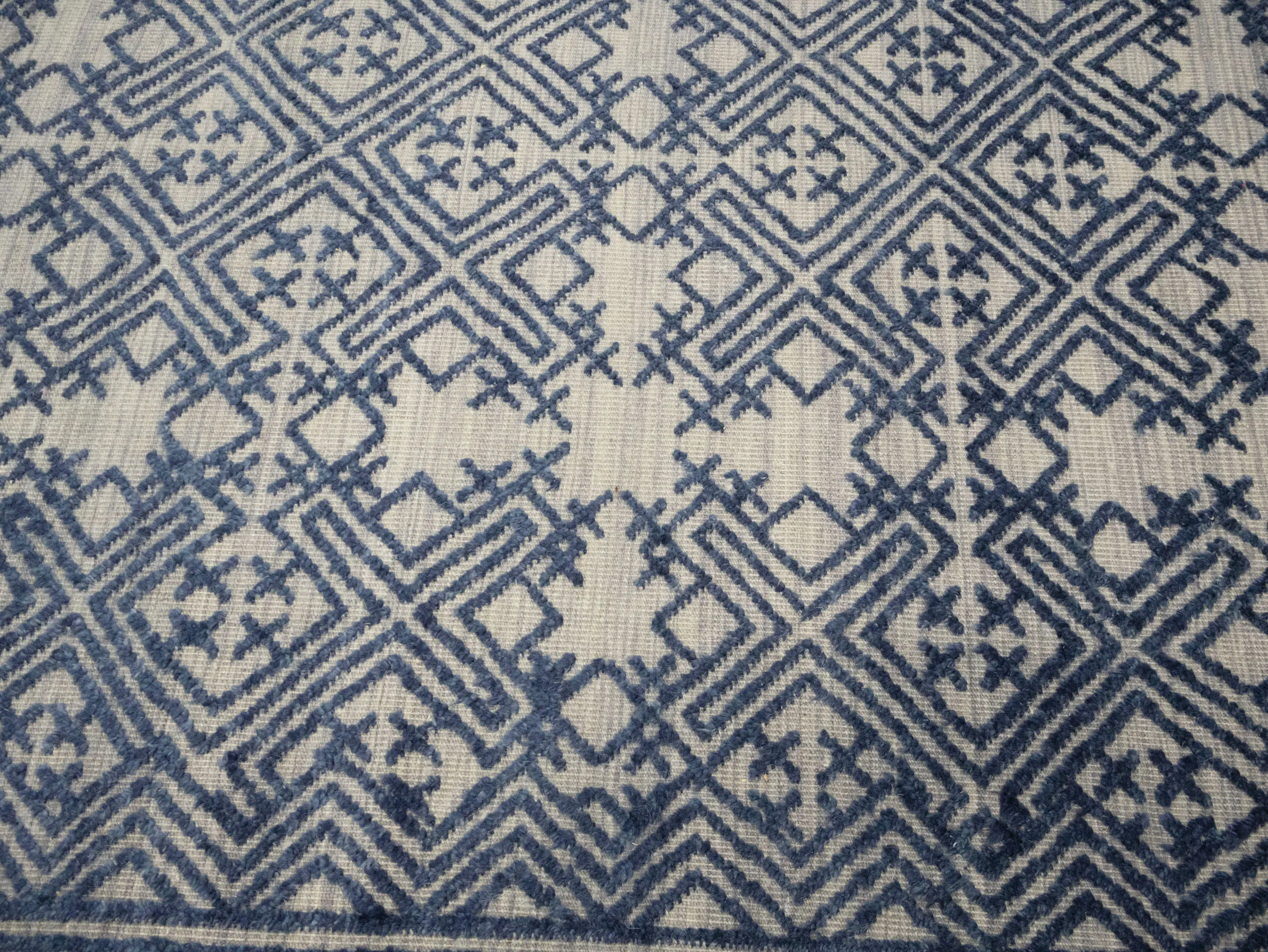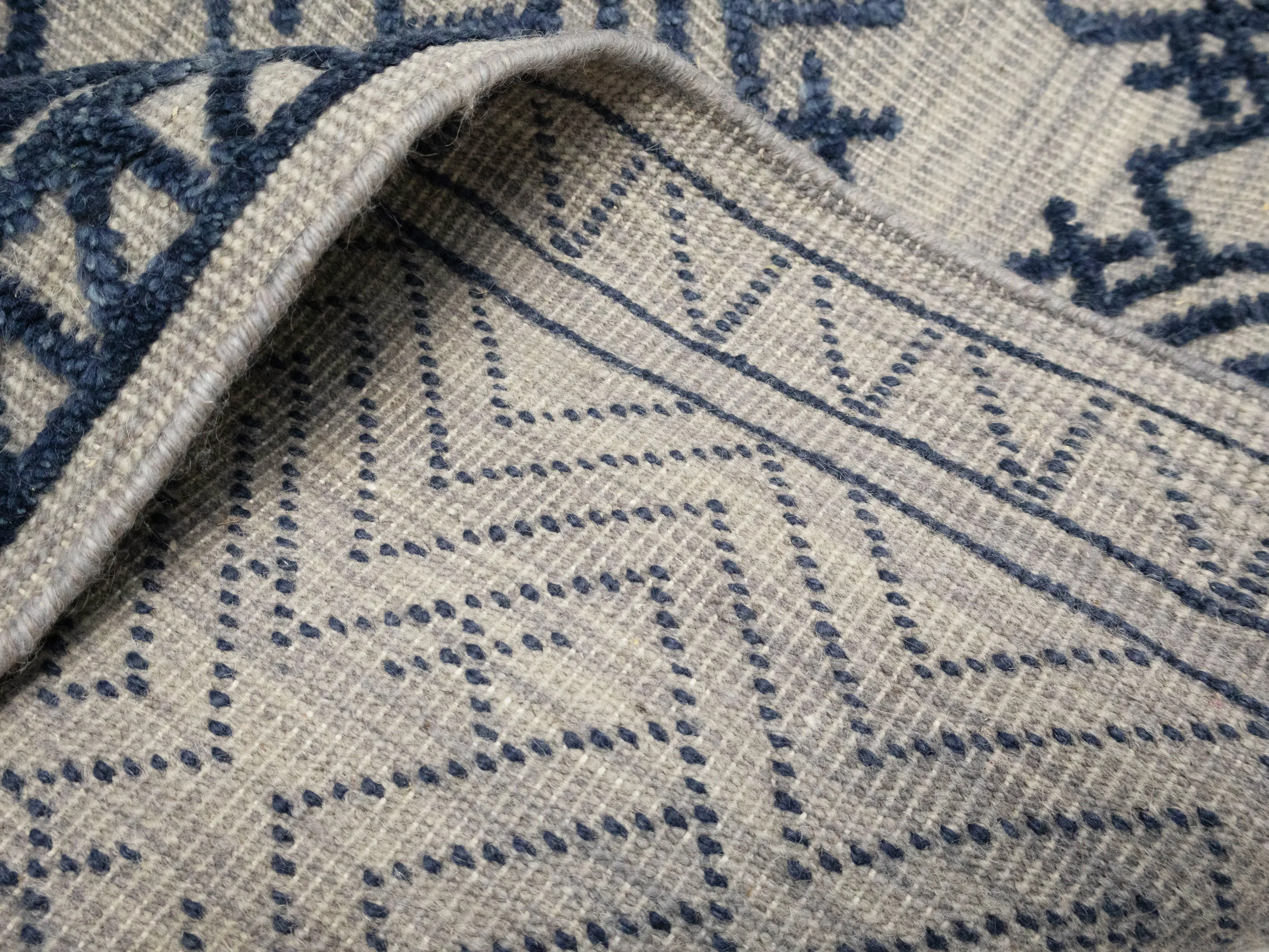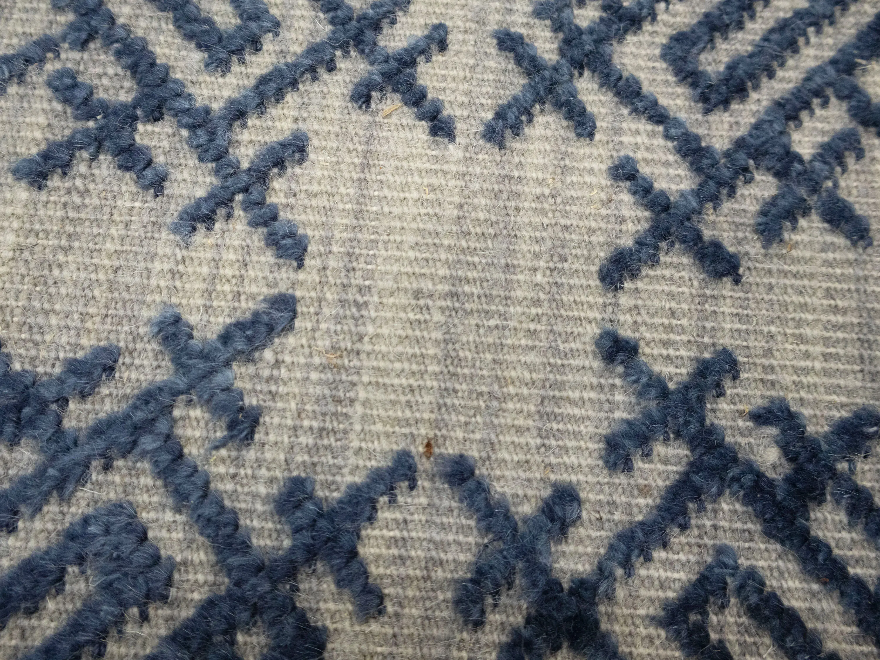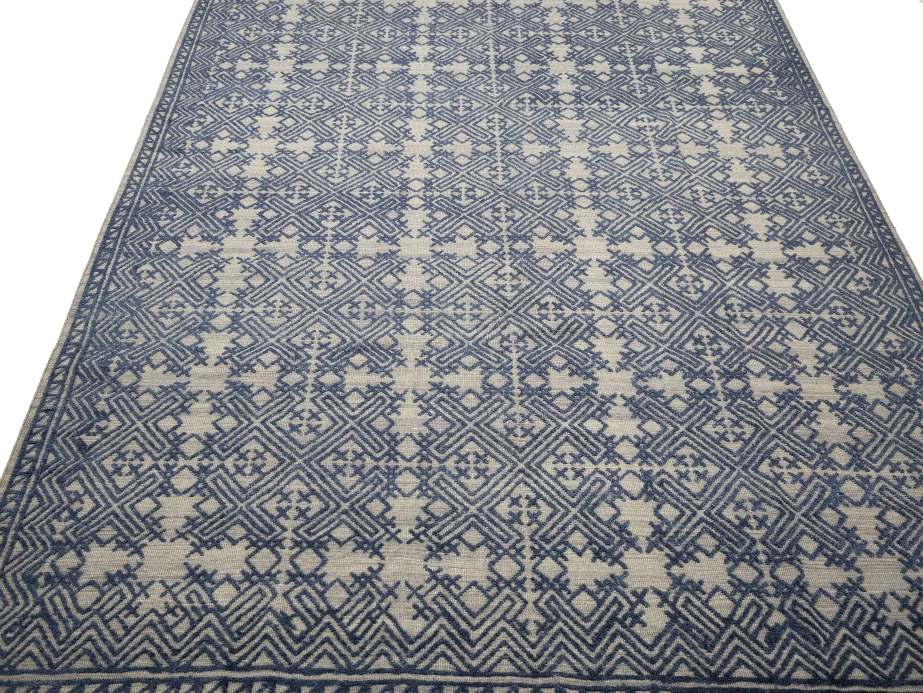 Blue & Cream Geometric 9X12 Modern Oriental Rug