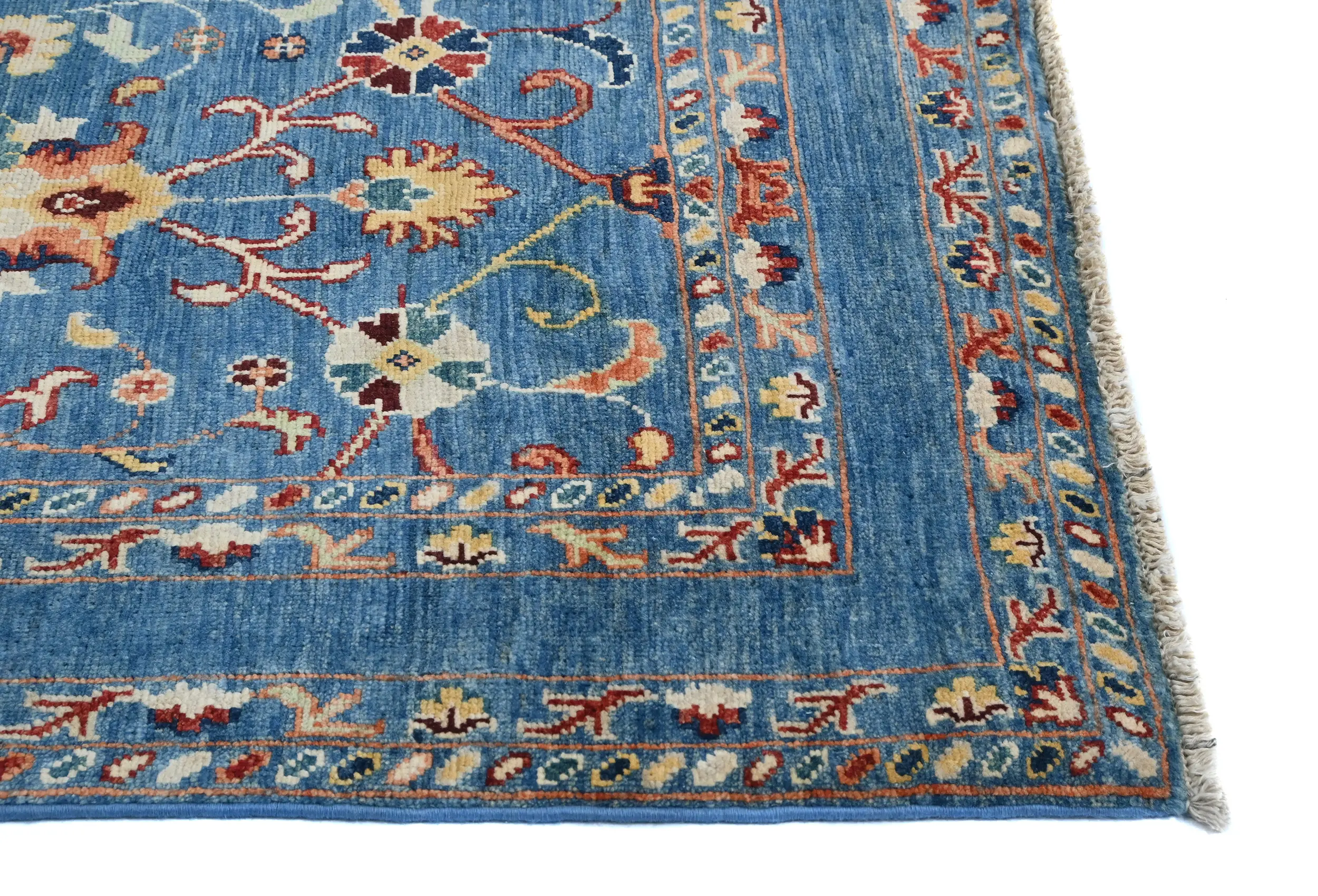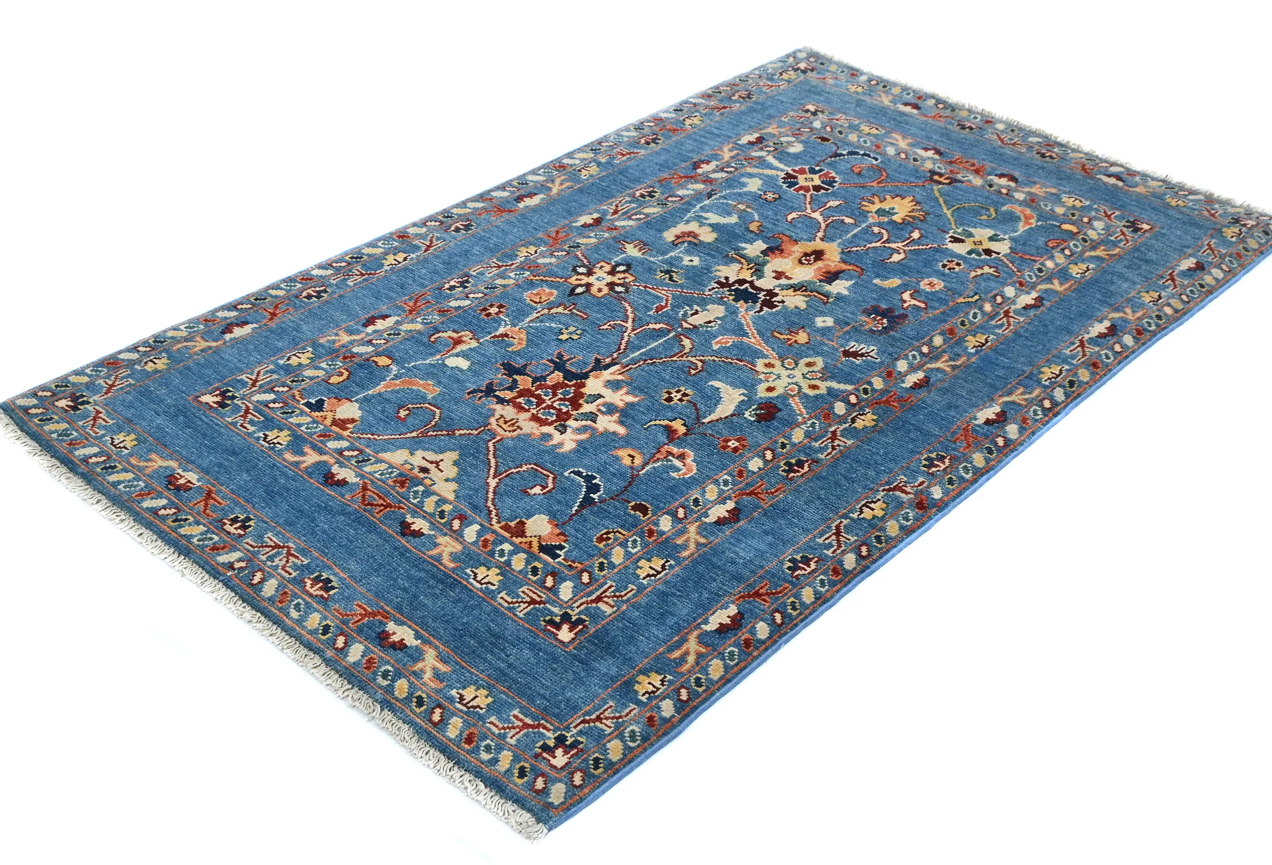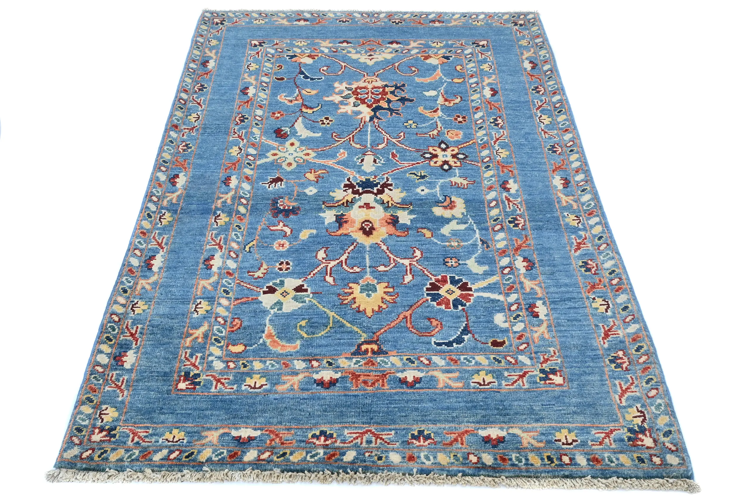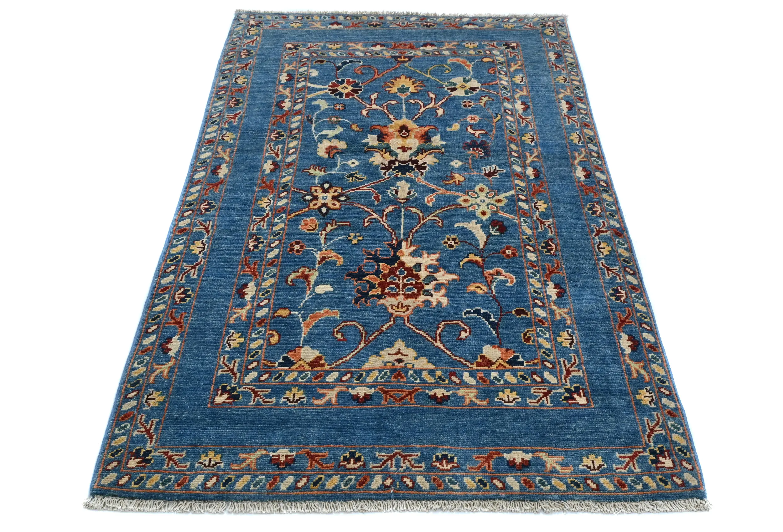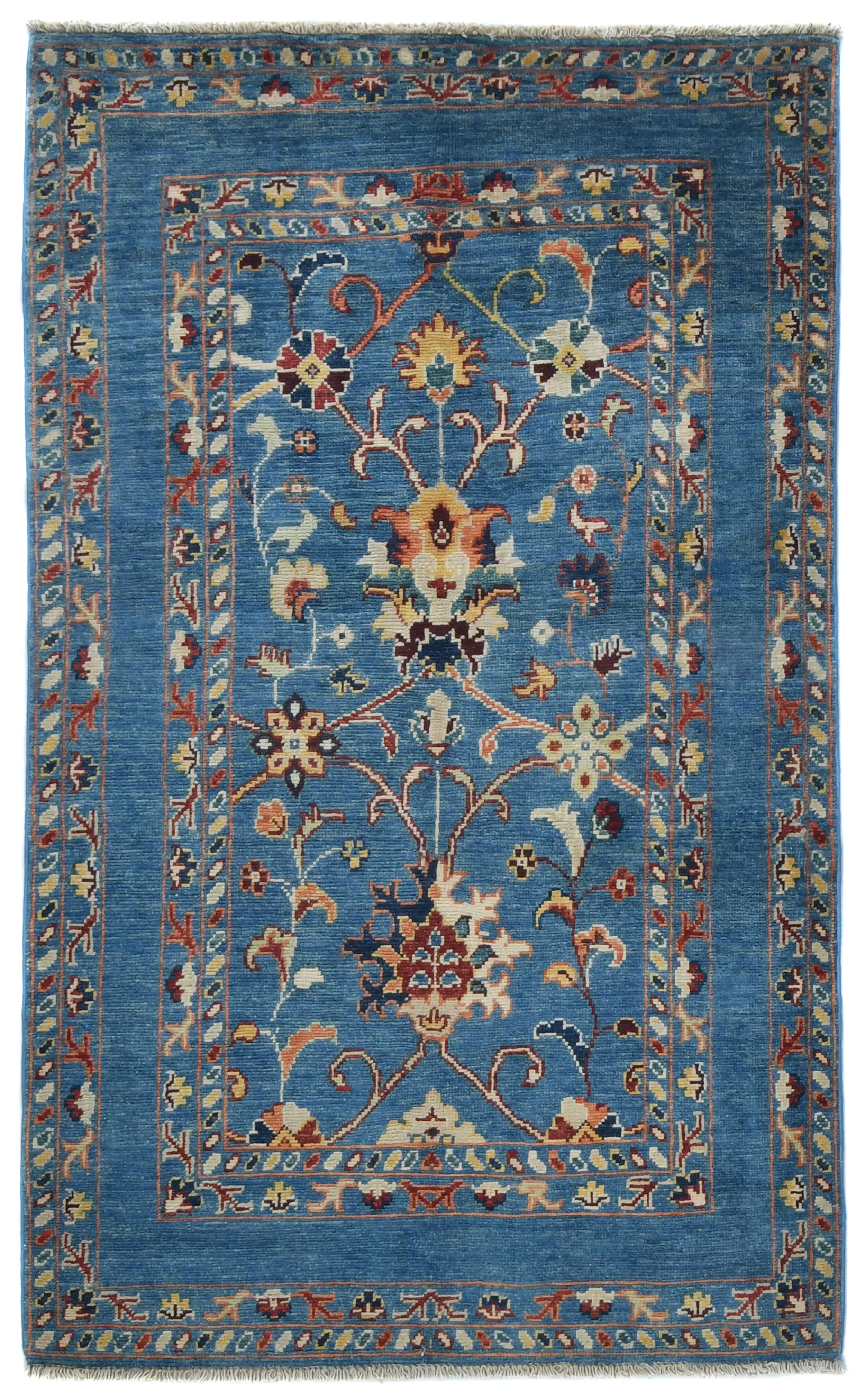 Blue Floral Modern 3X5 Kazak Oushak Pakistan Rug