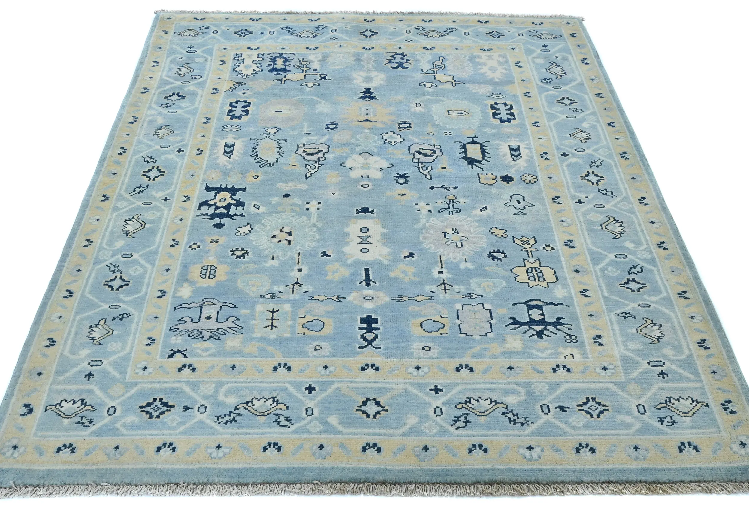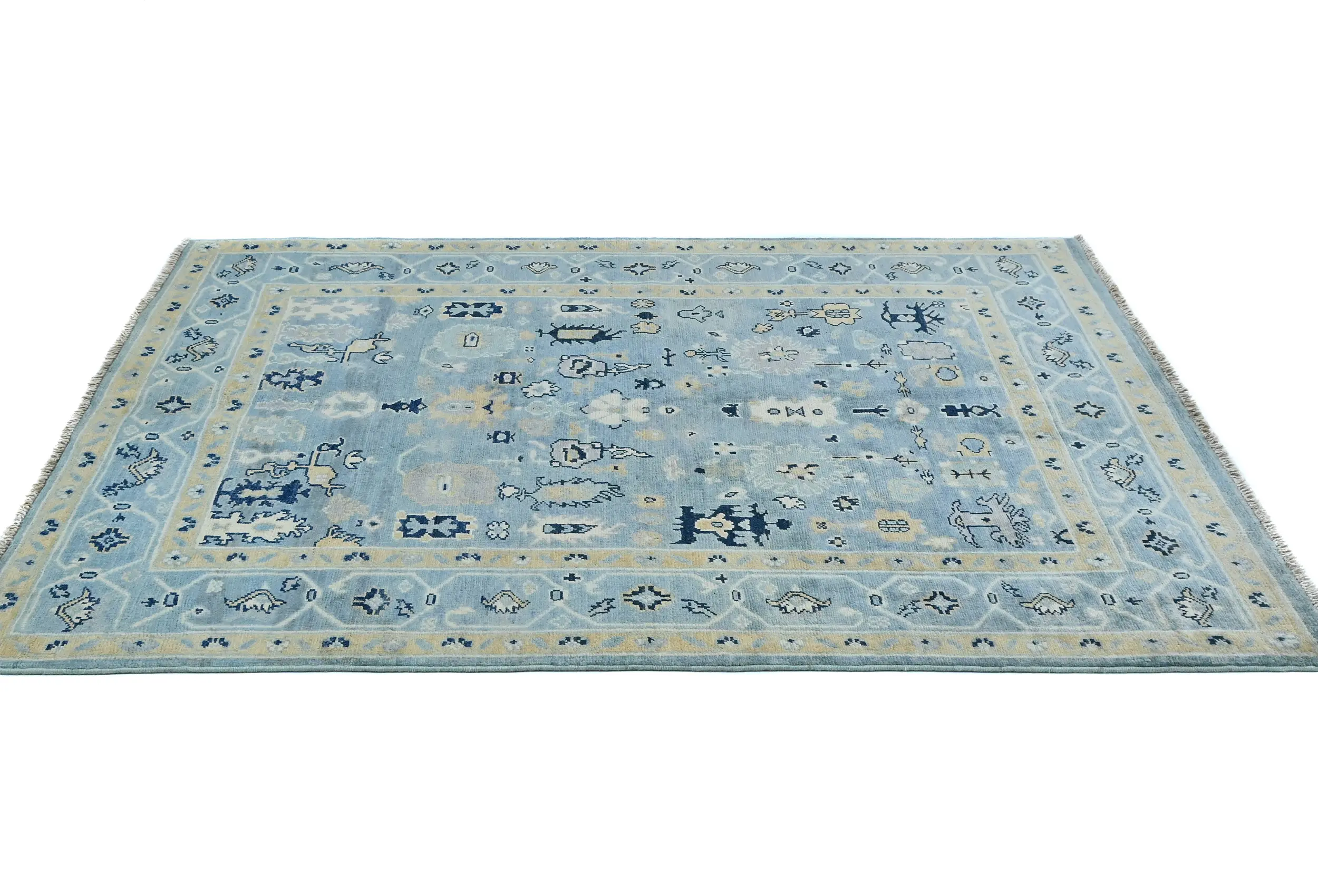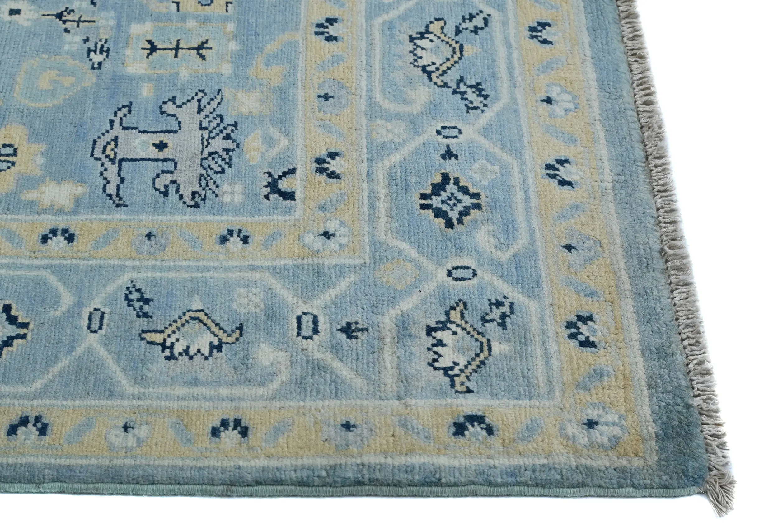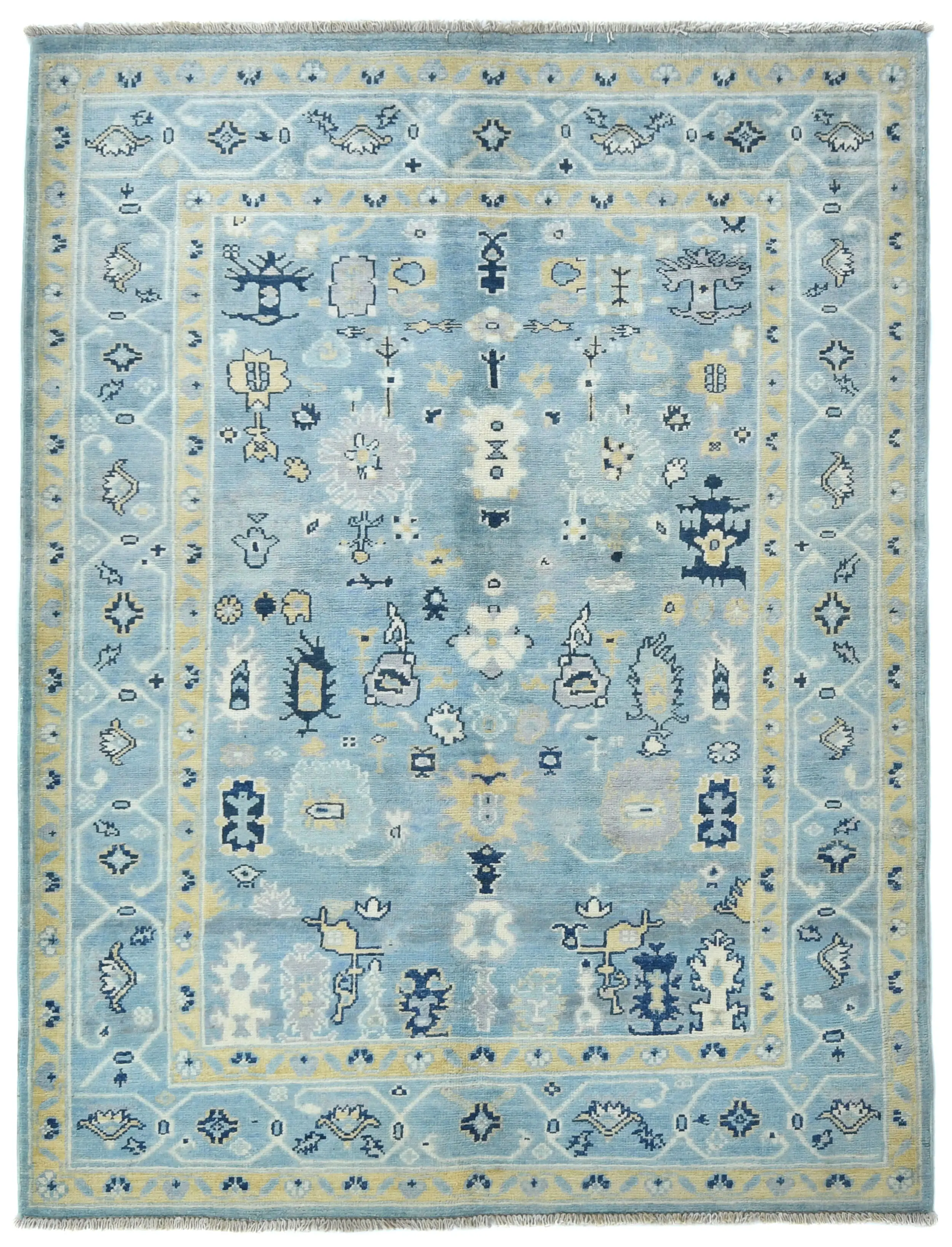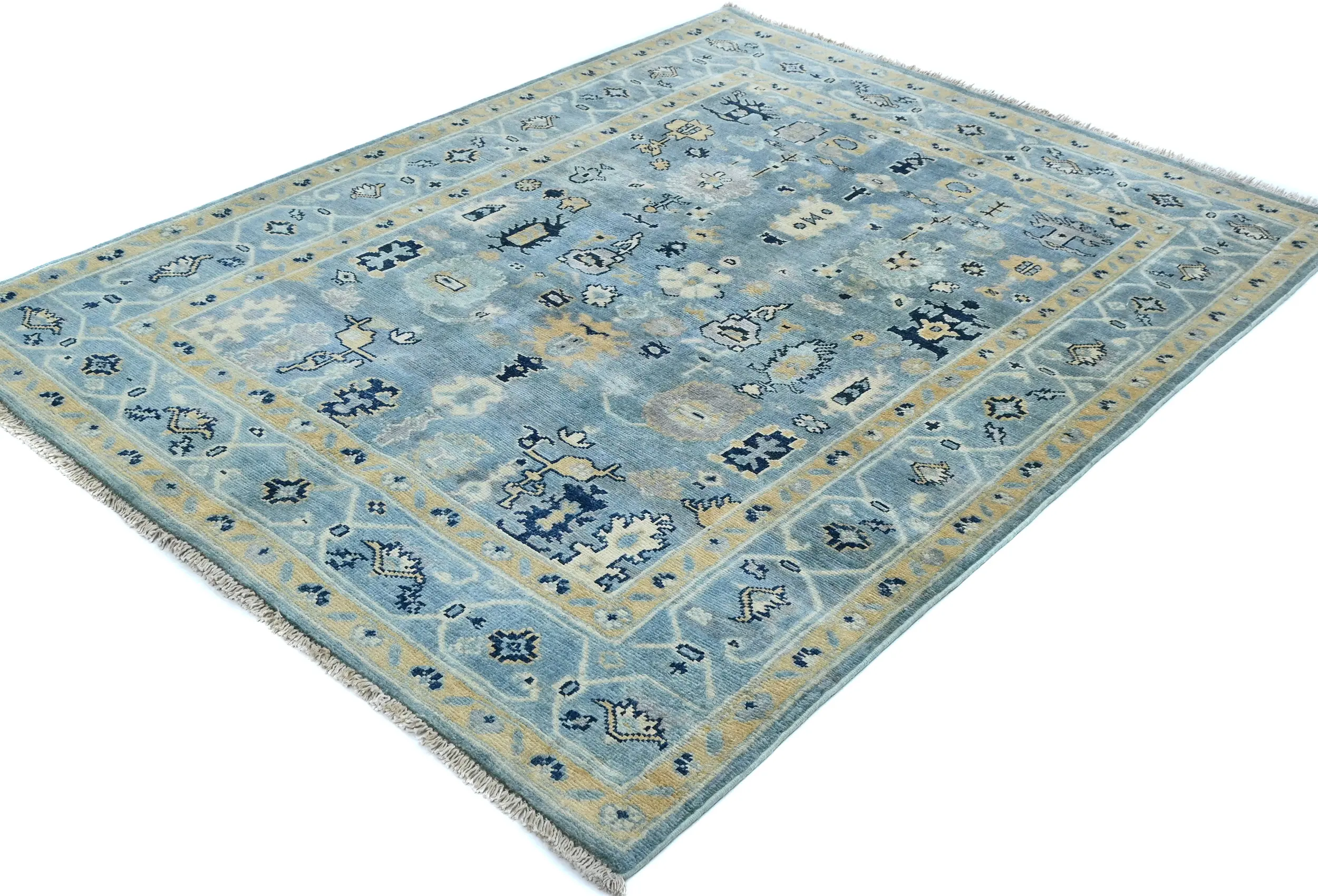 Blue Floral Modern 4X5 Kazak Oushak Pakistan Rug