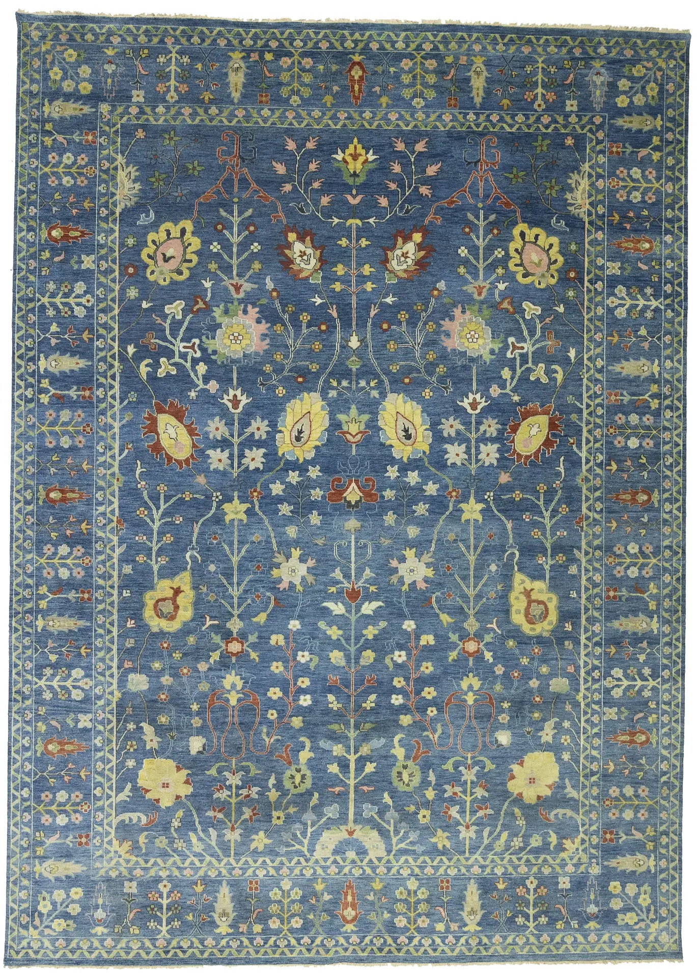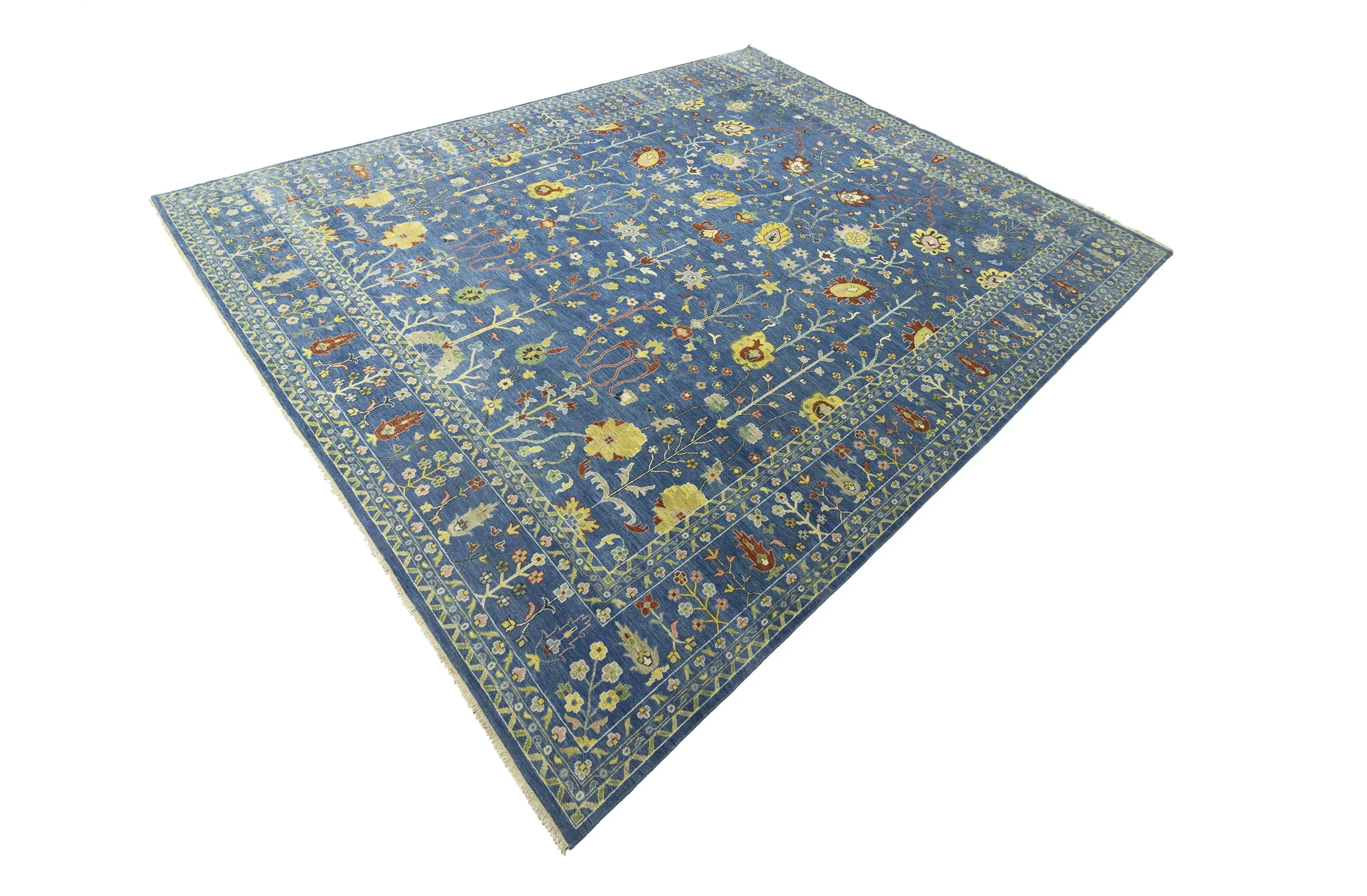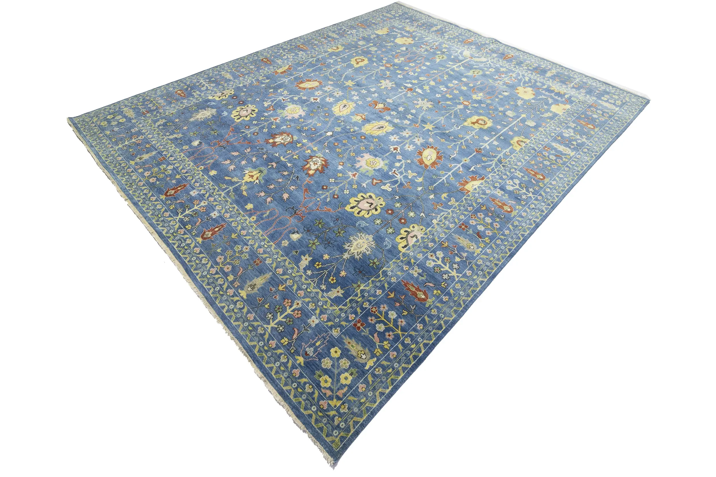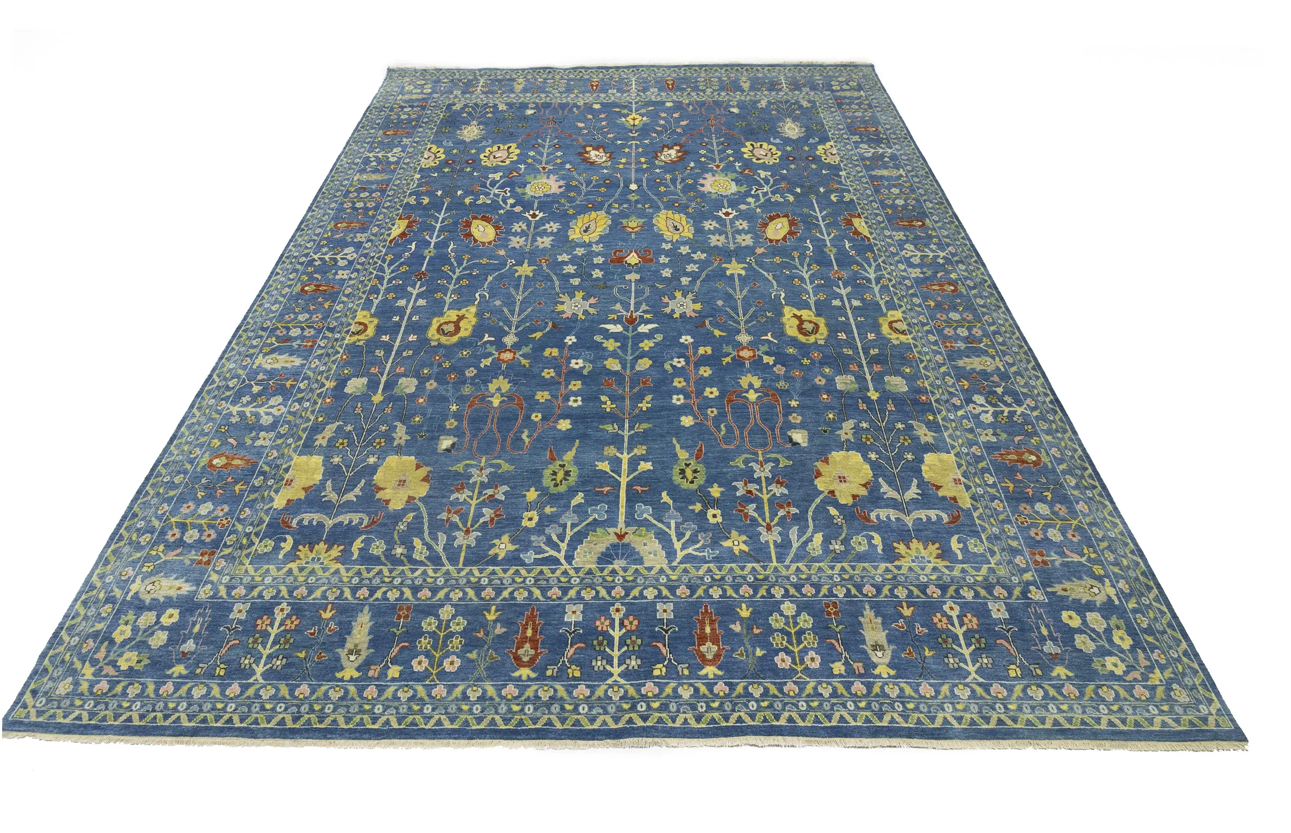 Blue Floral Traditional 10X14 Oushak Chobi Oriental Rug