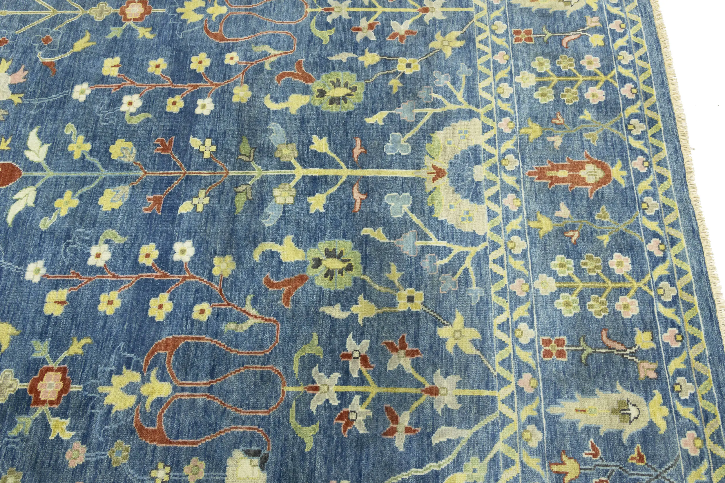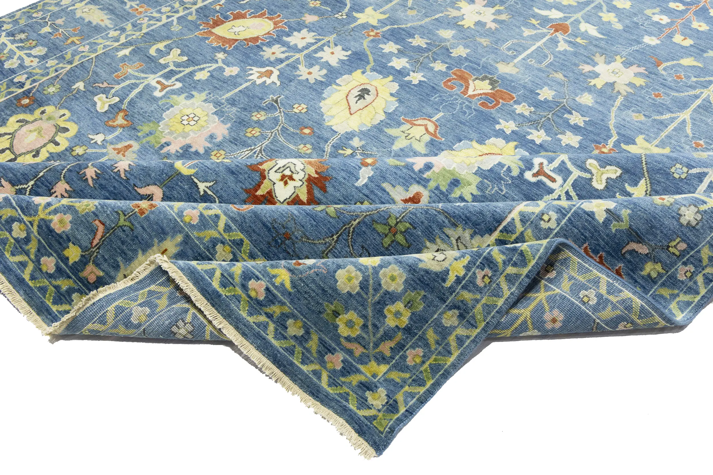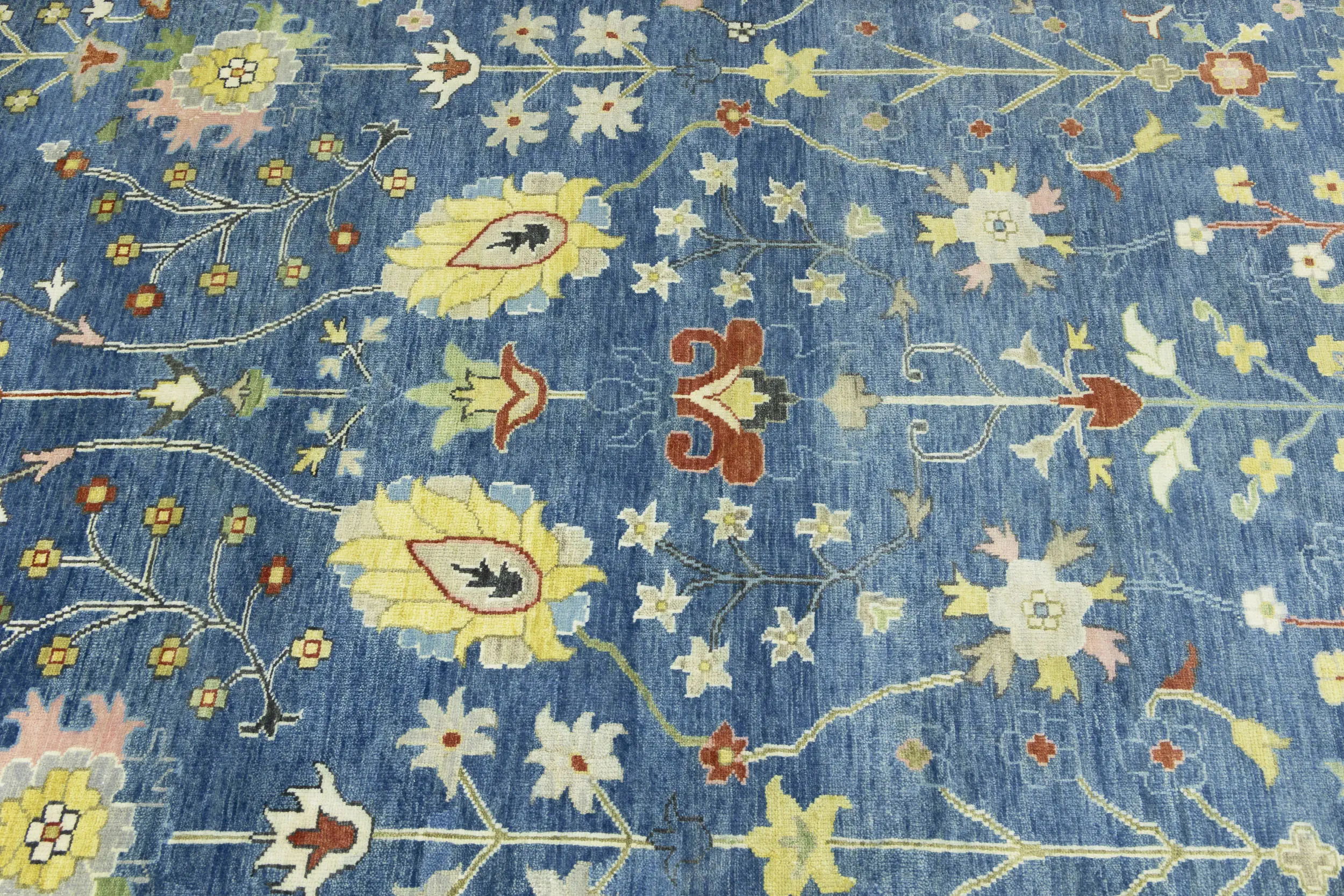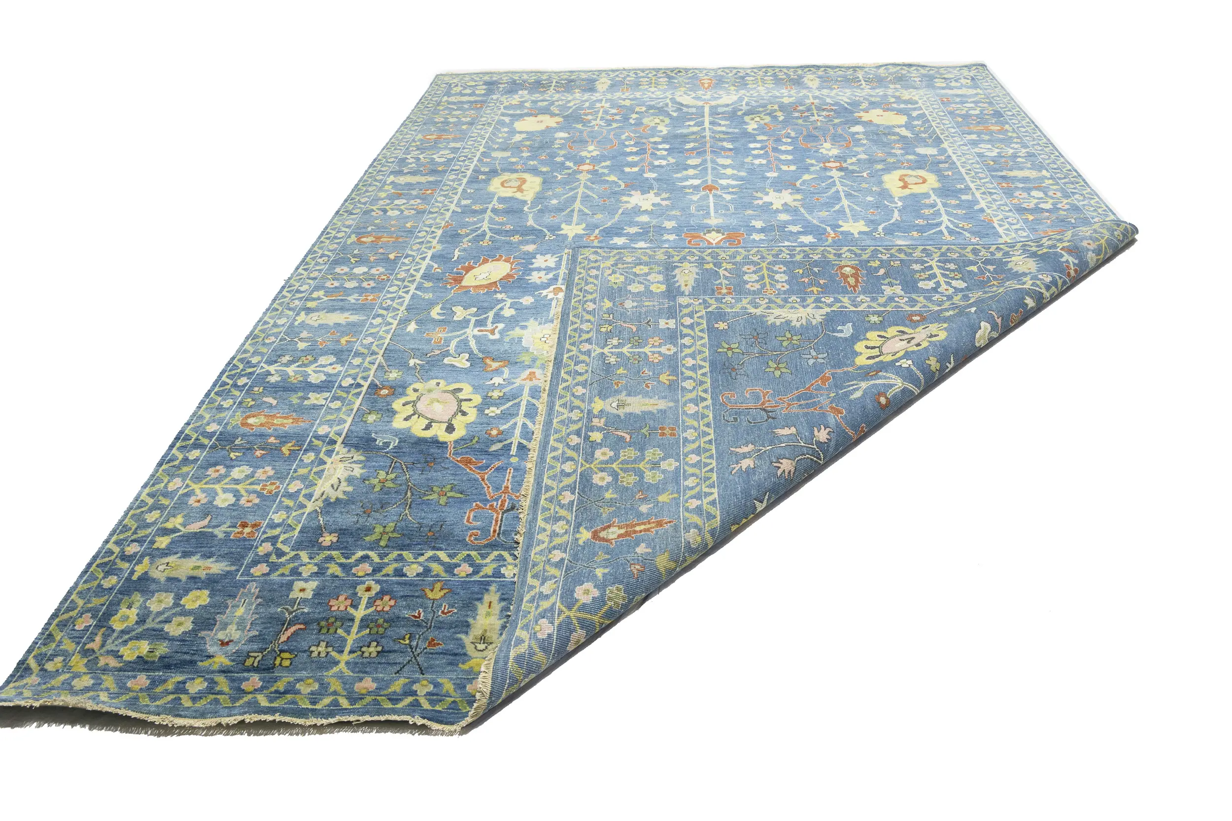 Blue Floral Traditional 10X14 Oushak Chobi Oriental Rug