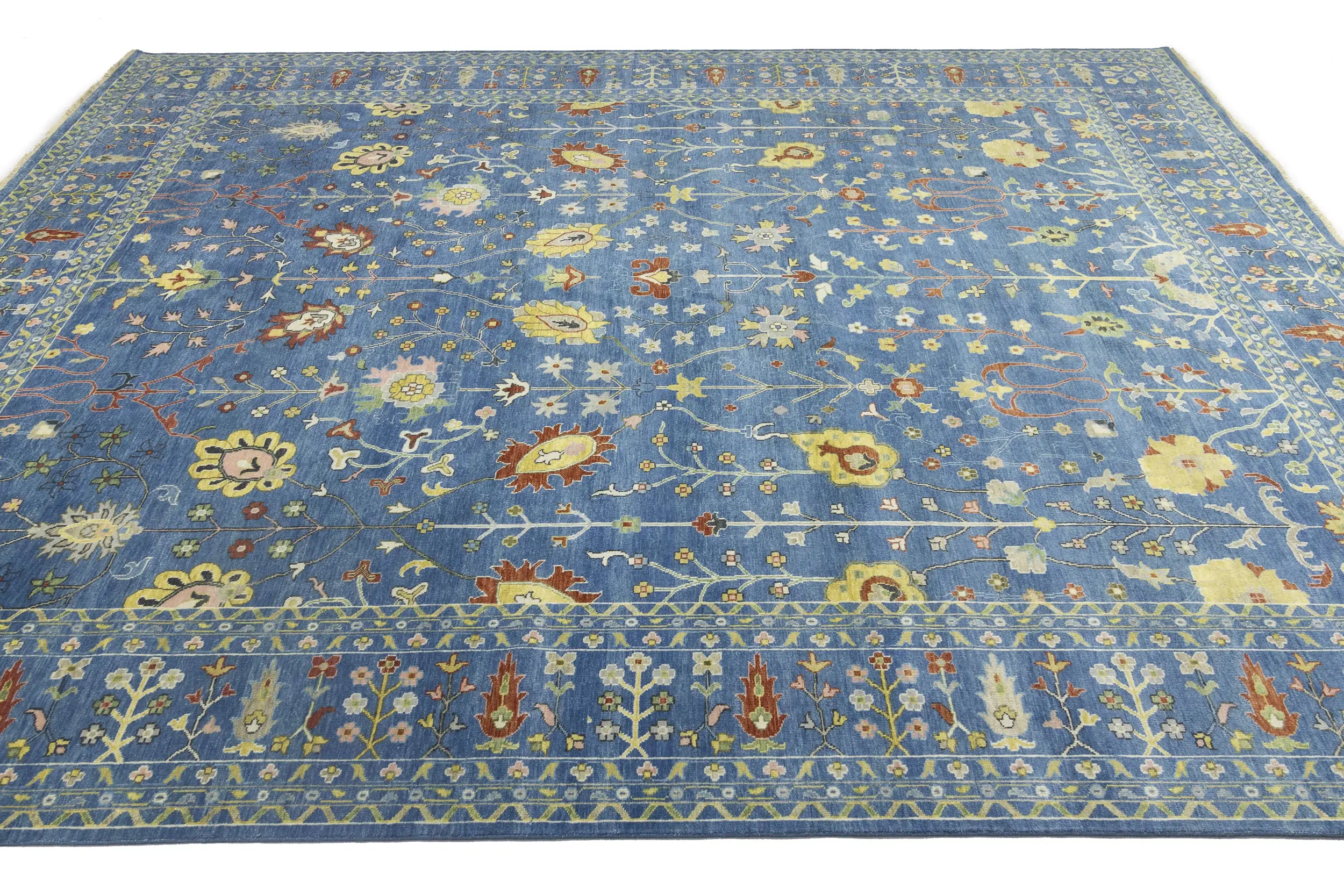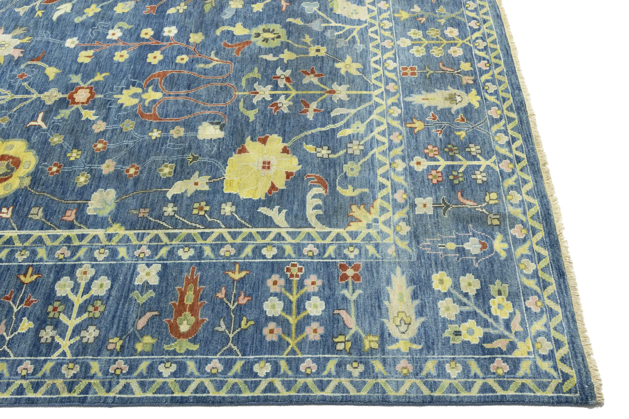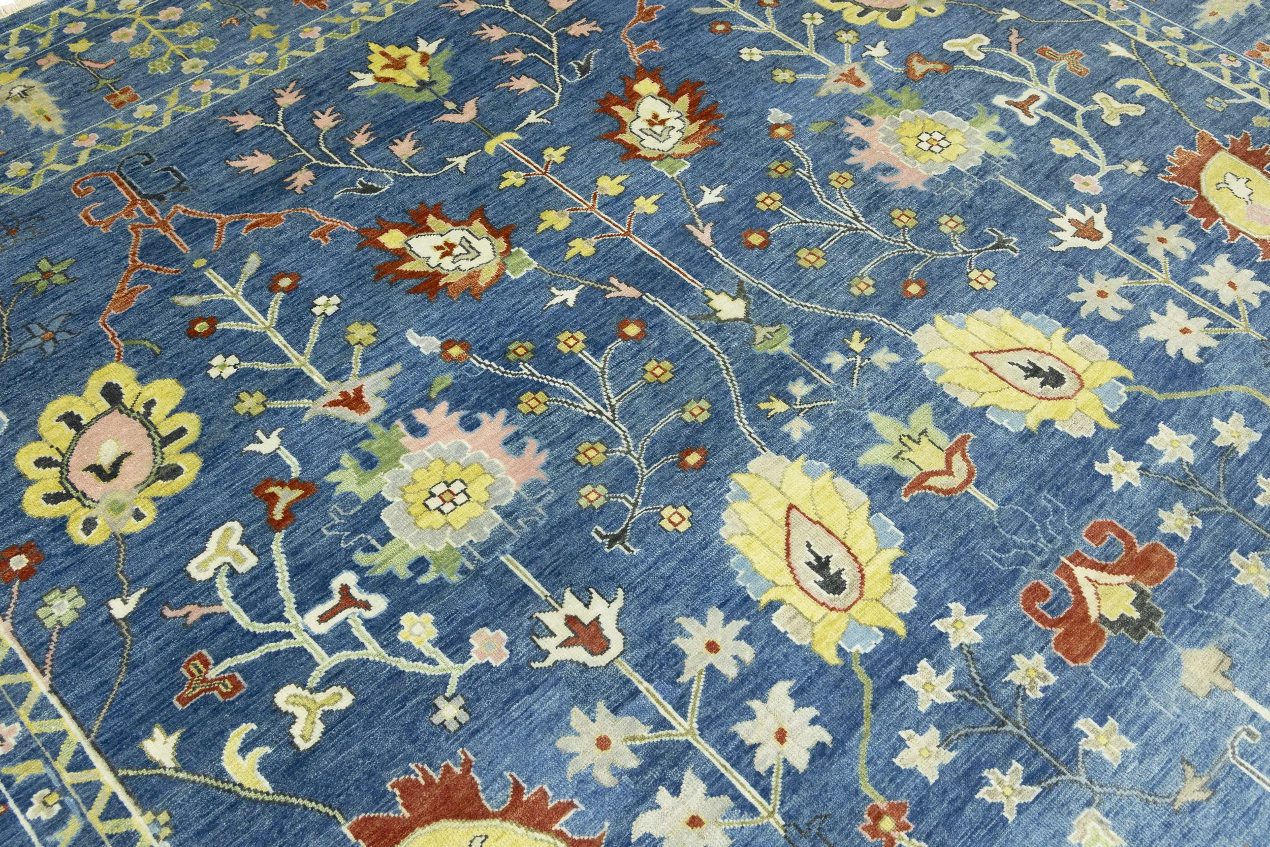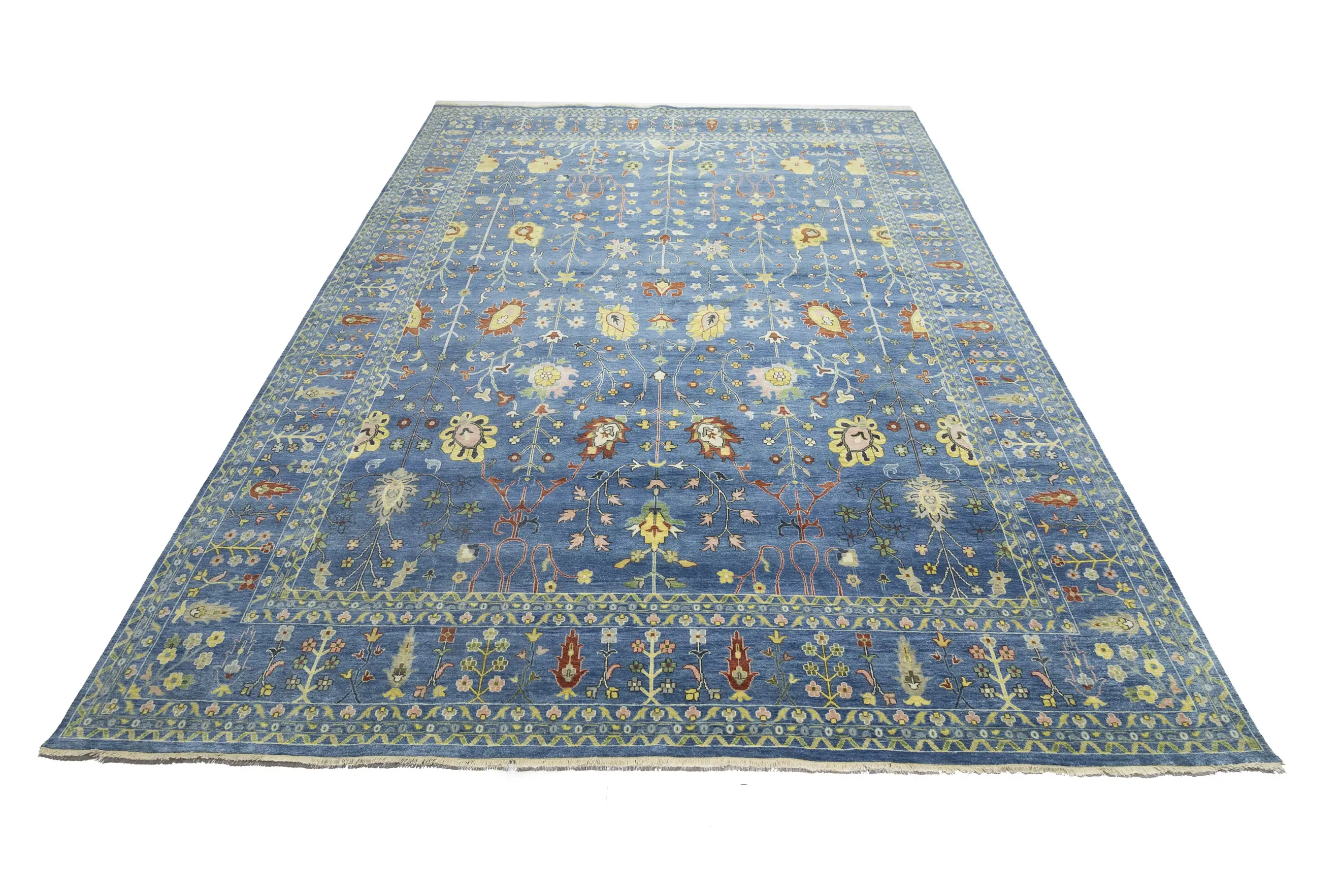 Blue Floral Traditional 10X14 Oushak Chobi Oriental Rug
