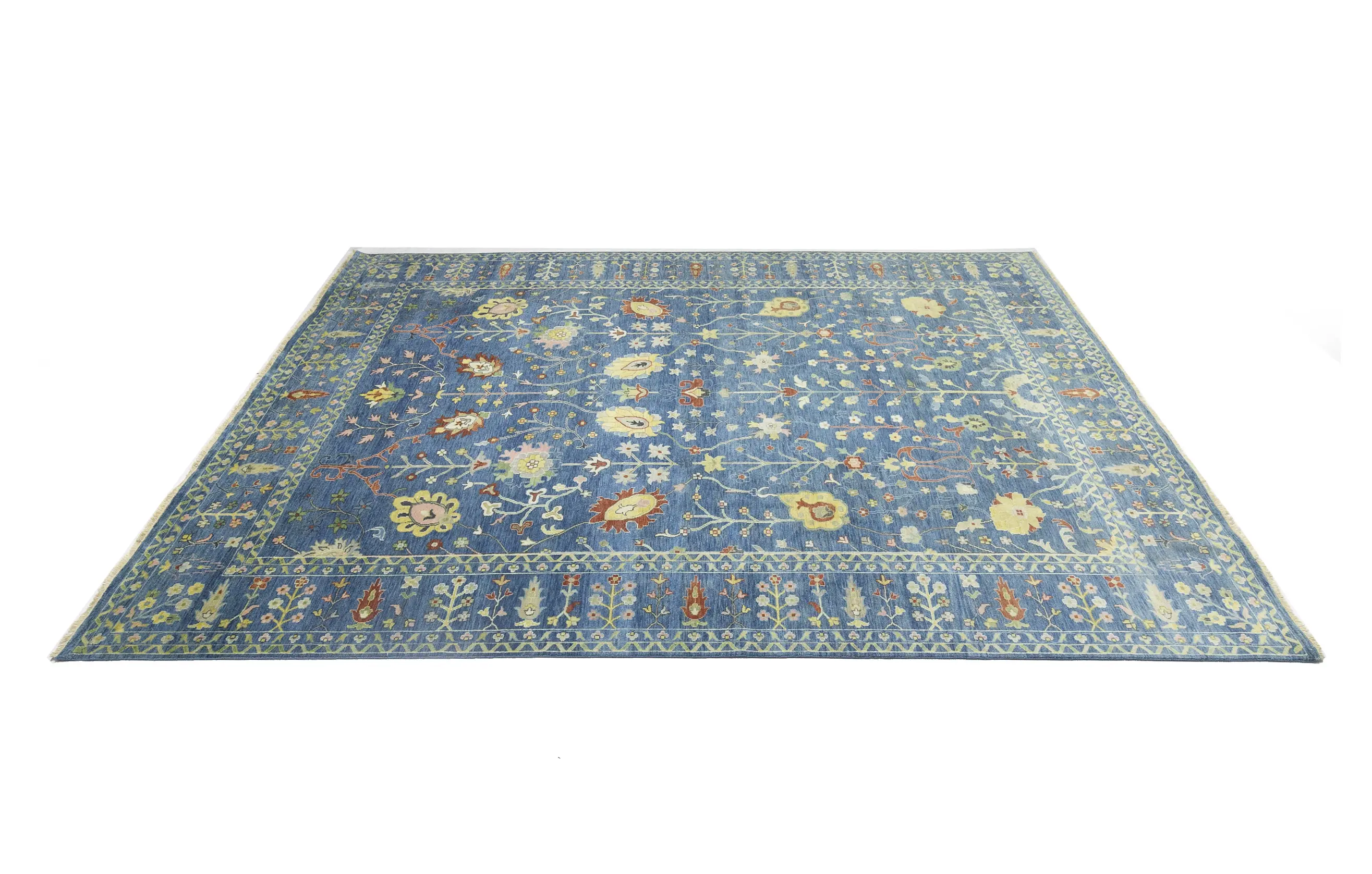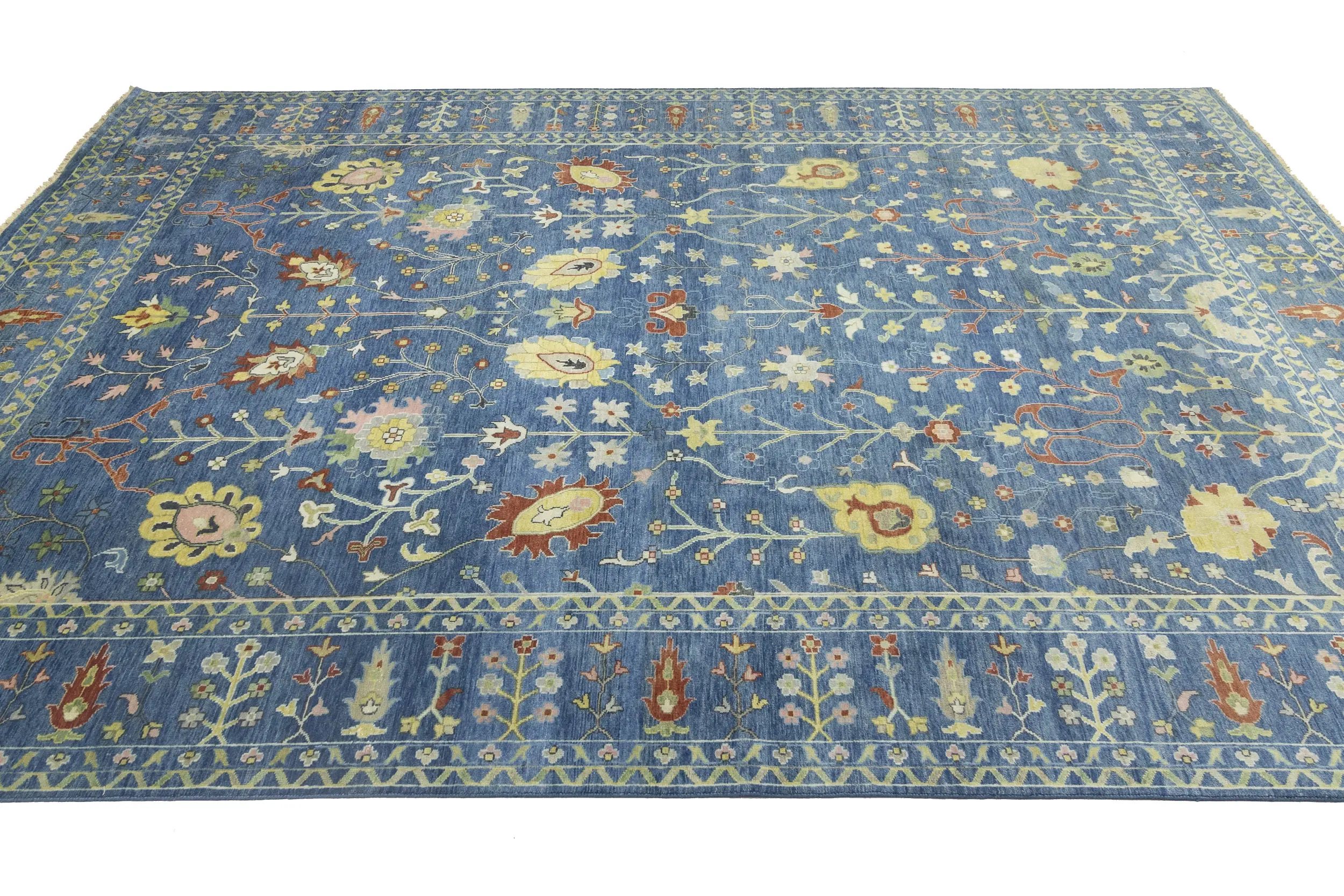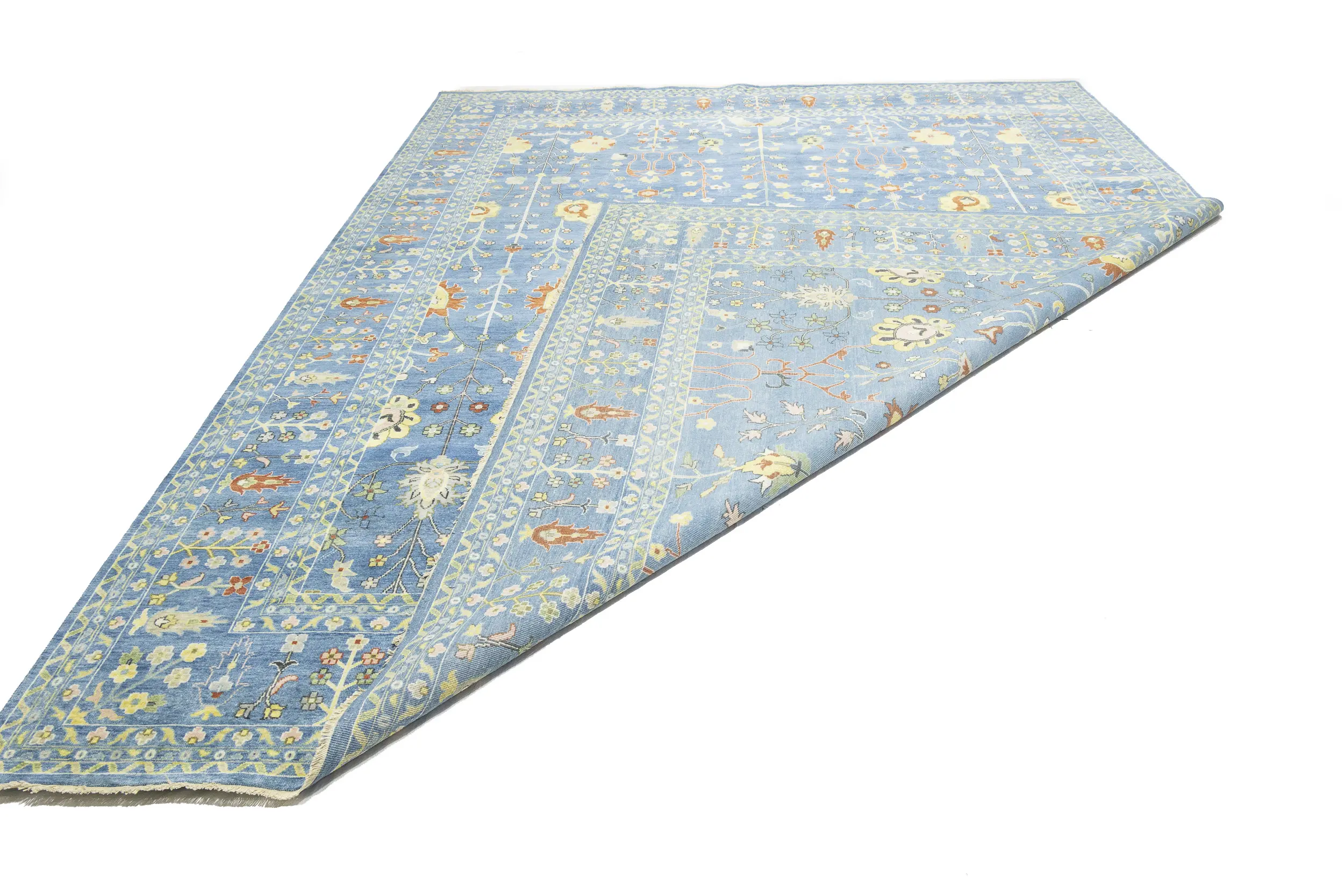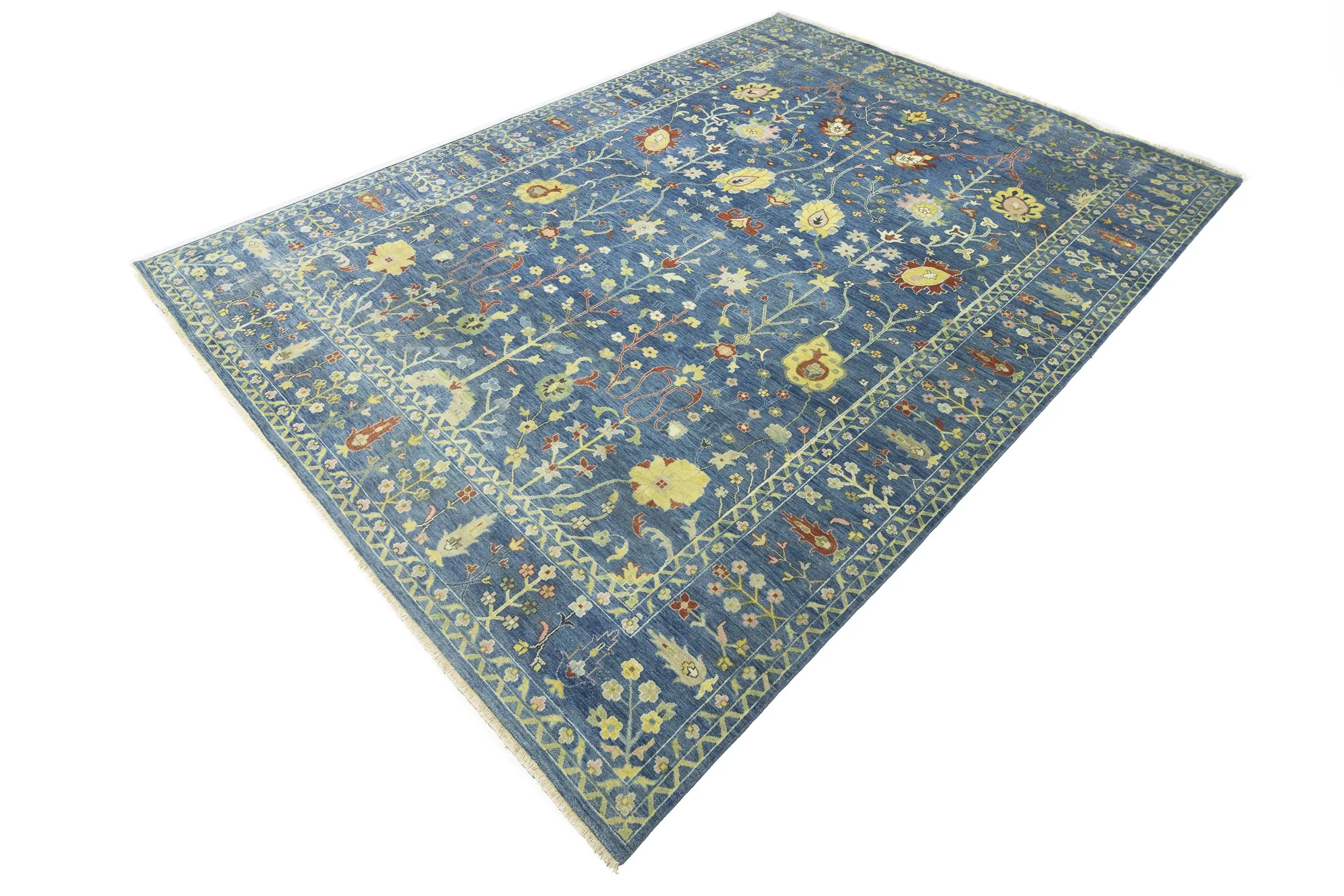 Blue Floral Traditional 12X15 Oushak Chobi Oriental Rug