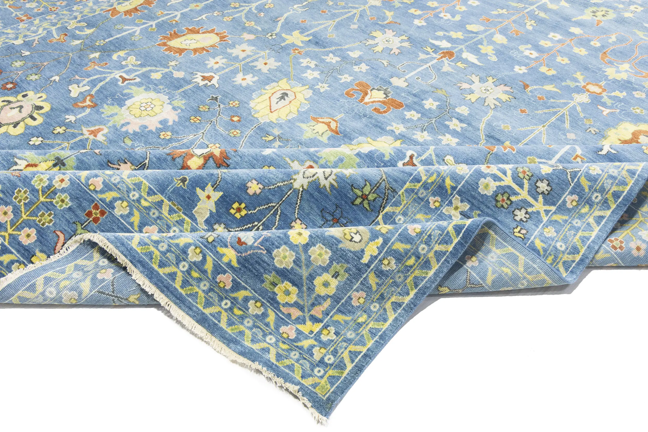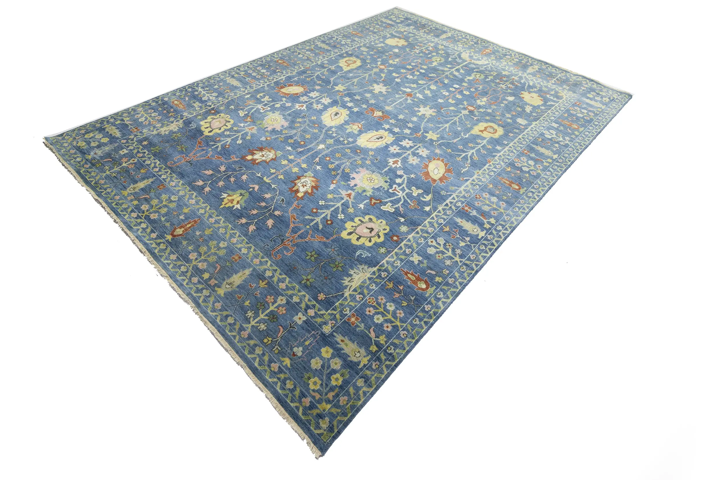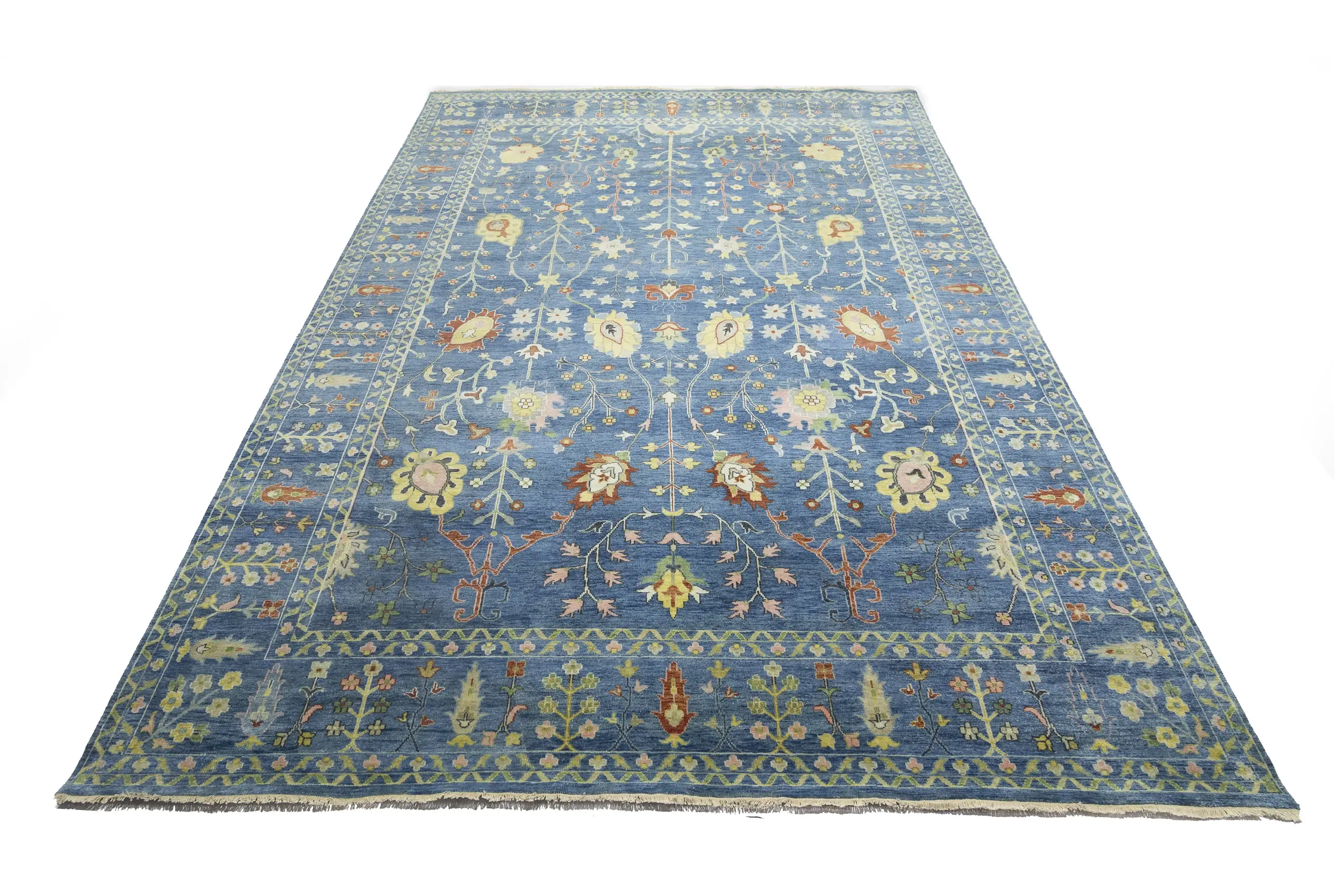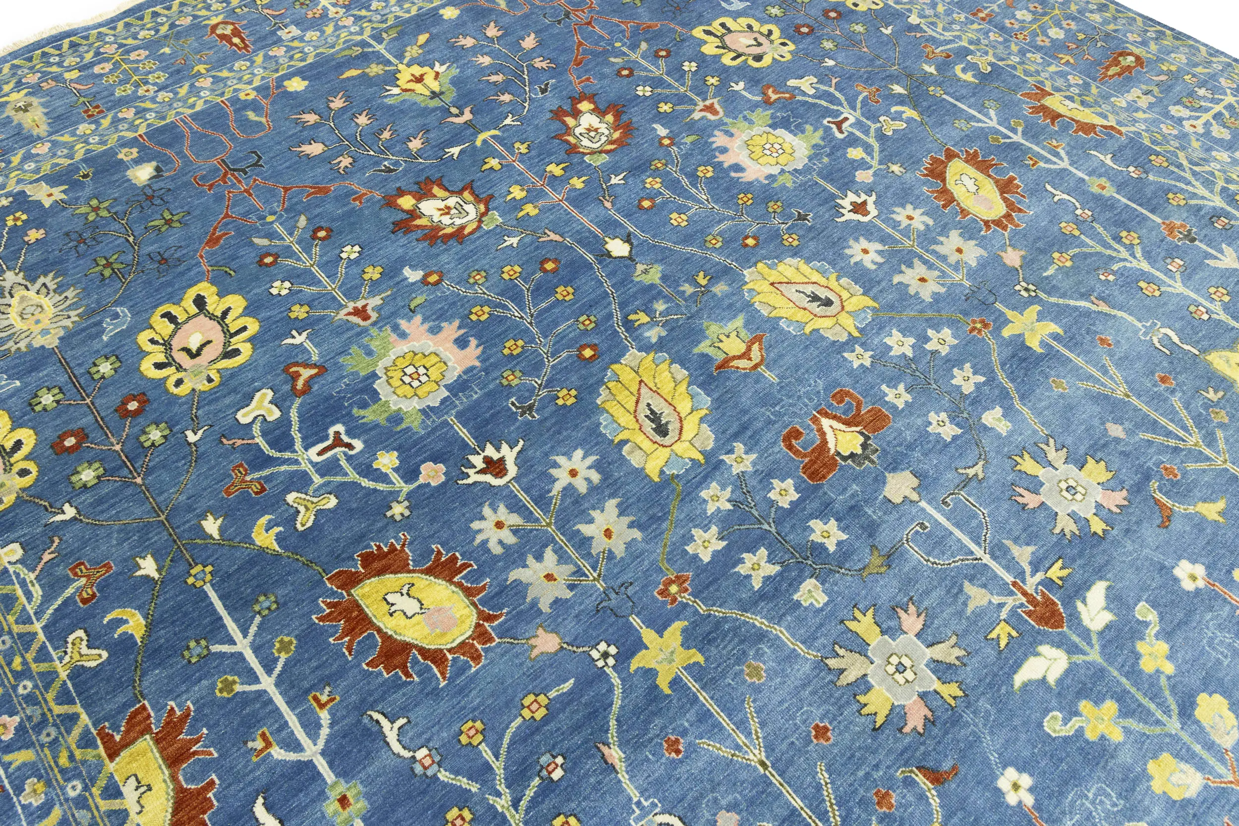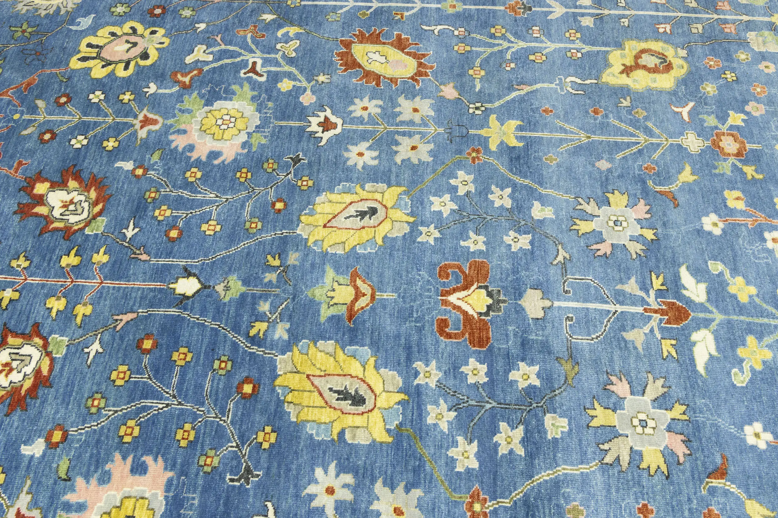 Blue Floral Traditional 12X15 Oushak Chobi Oriental Rug