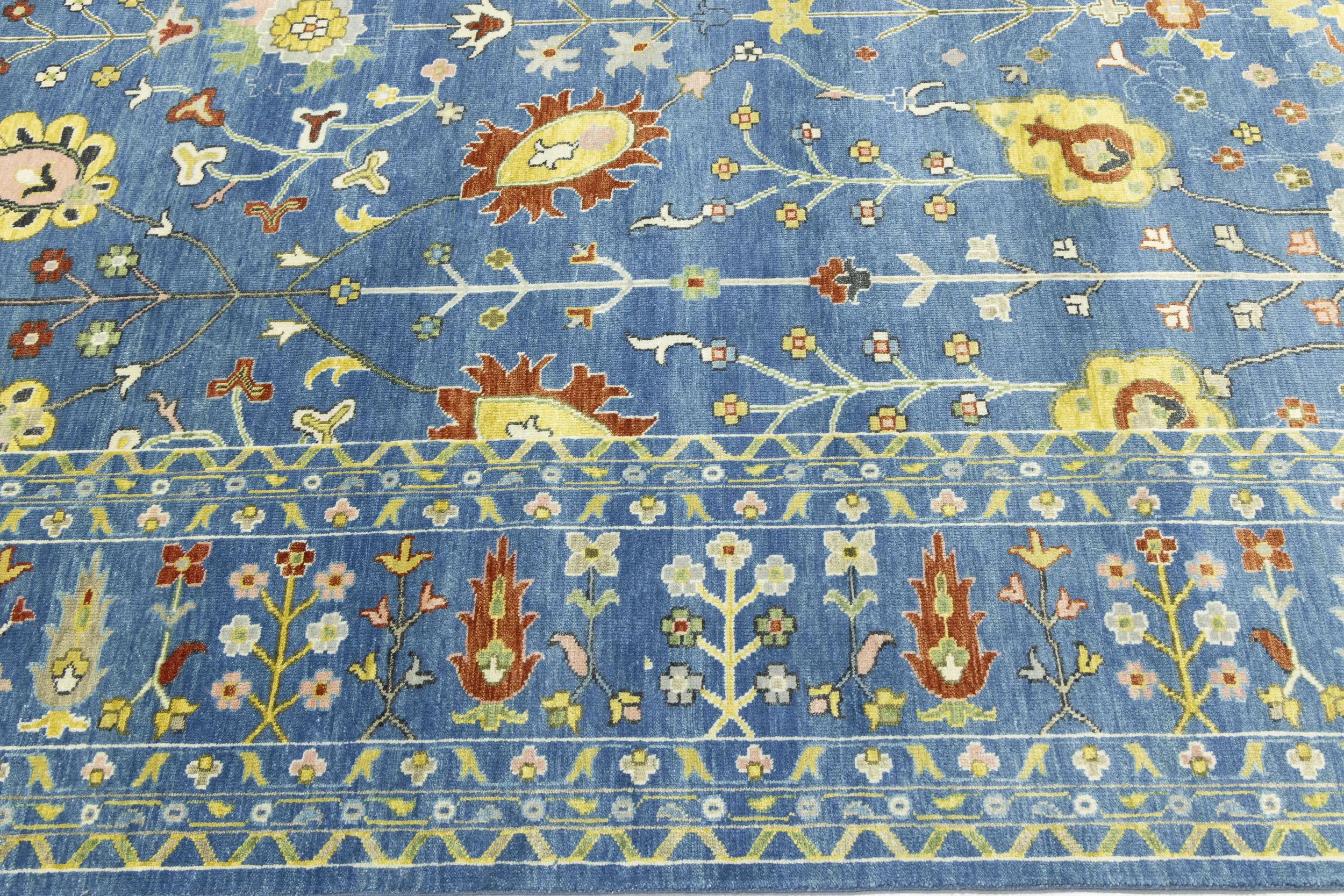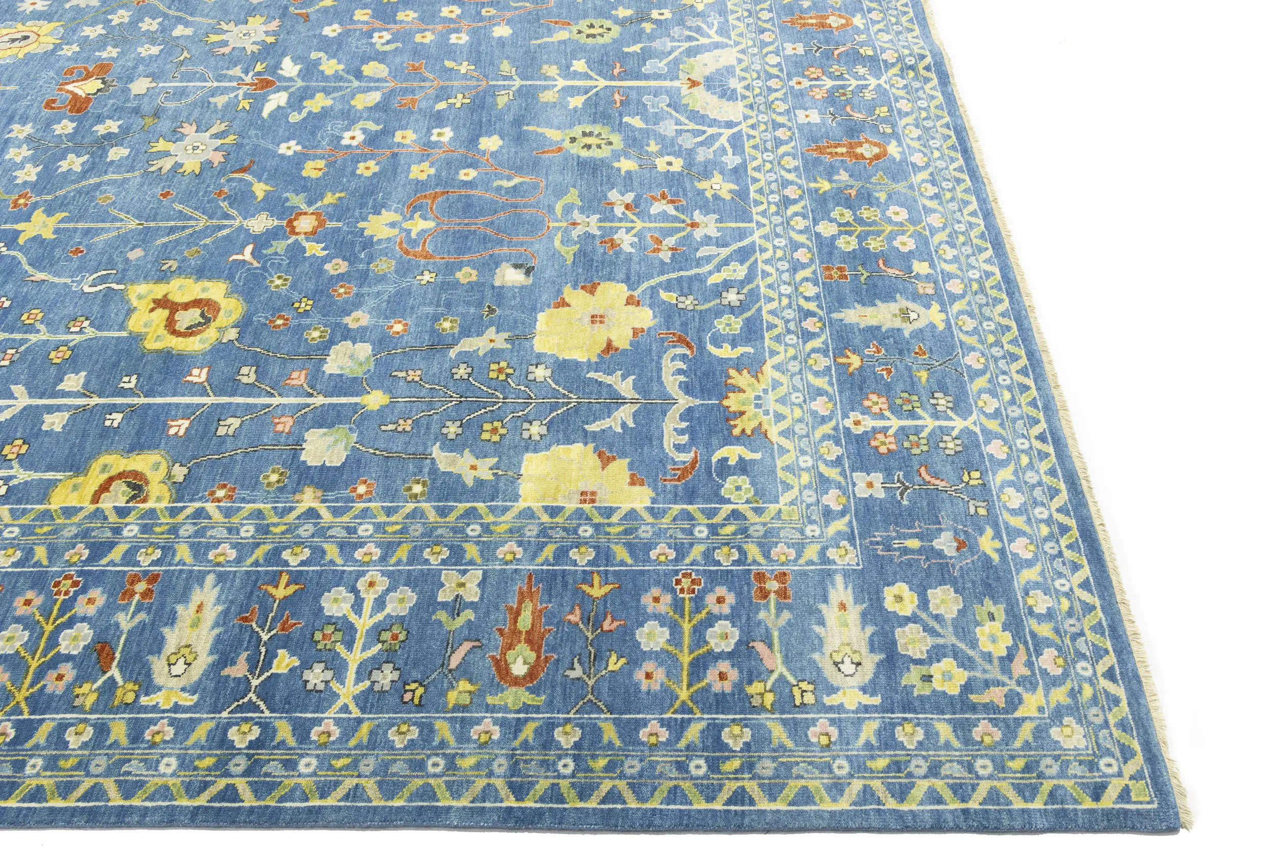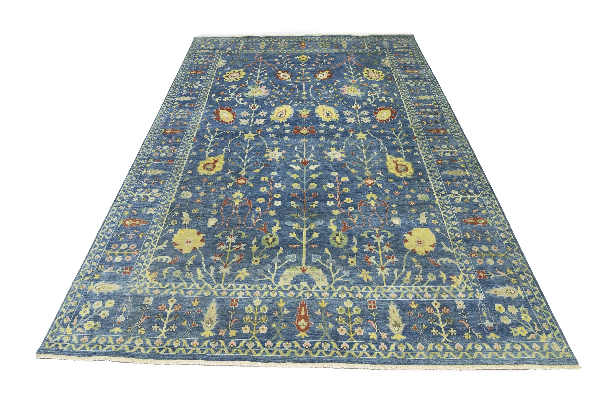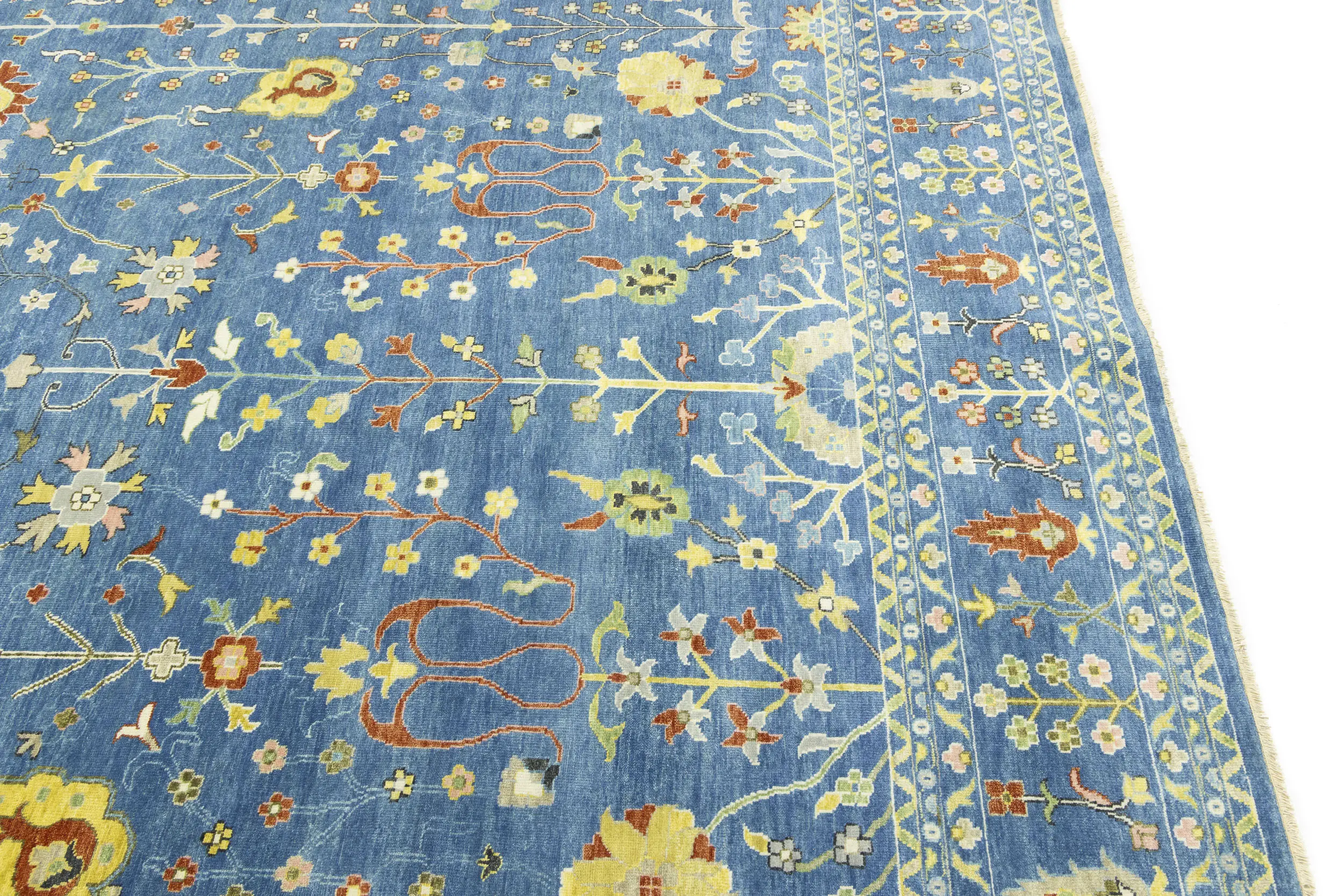 Blue Floral Traditional 12X15 Oushak Chobi Oriental Rug